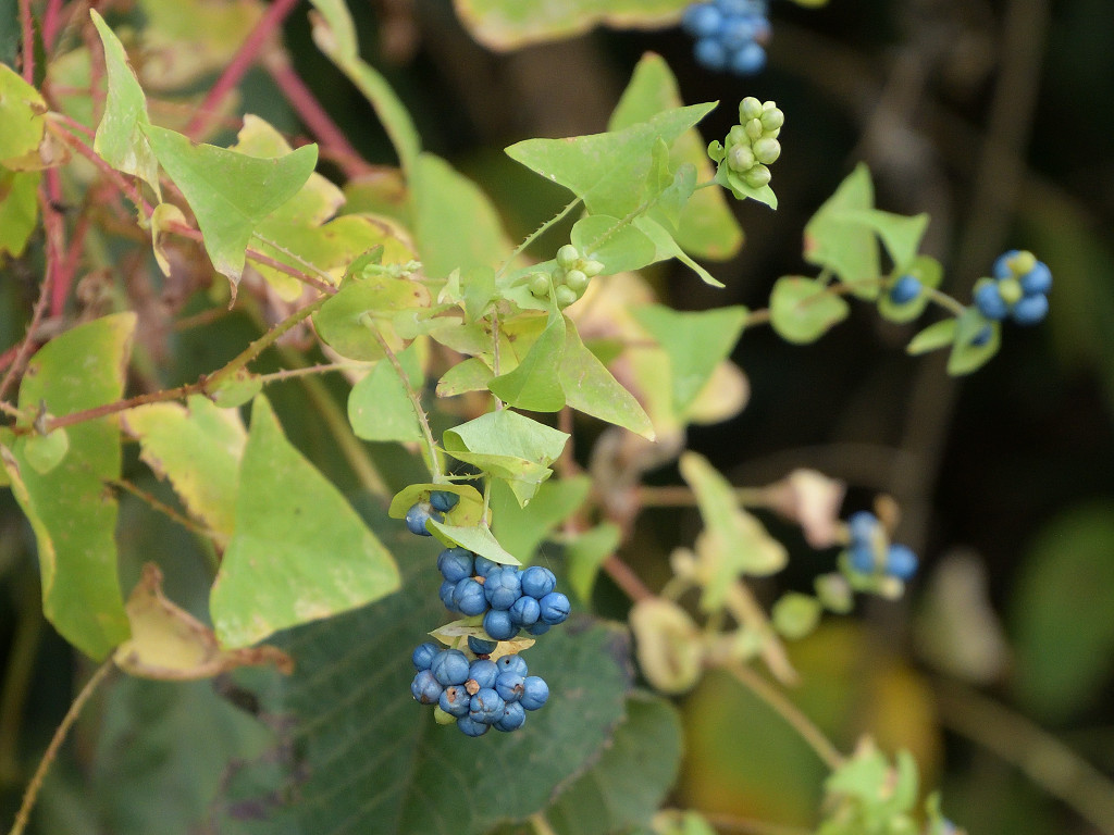茎には下向きの鋭い刺(逆刺)がある。葉は三角形 枝先の丸い葉のような苞の上に花が10〜20個の小さな花序をつける。花は淡緑色で小さい
