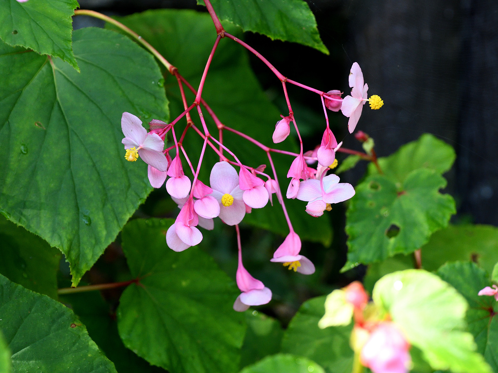 中国名「秋海棠」をそのまま音読み。バラ科の「海棠」の花色に似て「秋咲き」