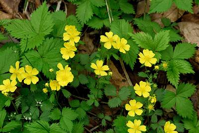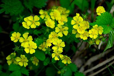 ツルキンバイは匐枝が長く,一面に生えひろがっている
