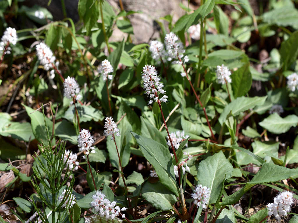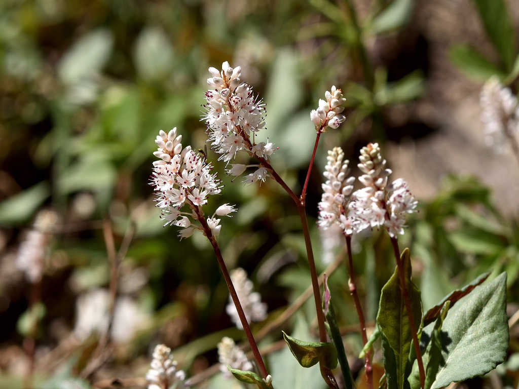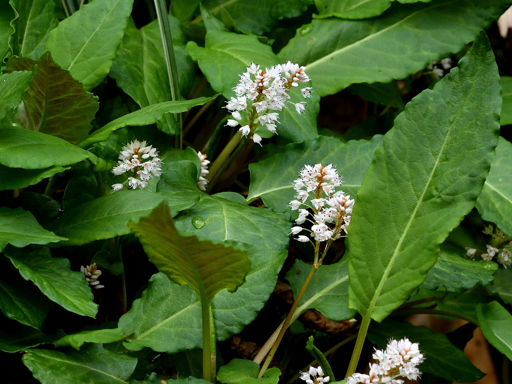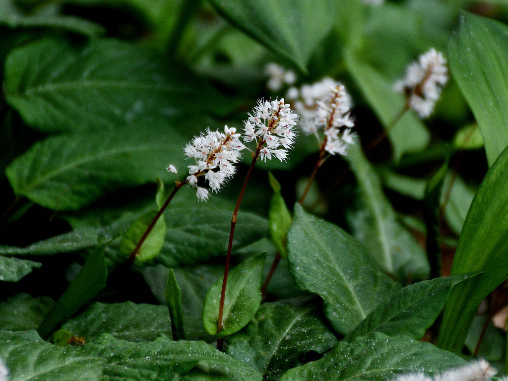 花は穂状花序で、花柄が長いのでややまばらにつくように見え、白色で5深裂する