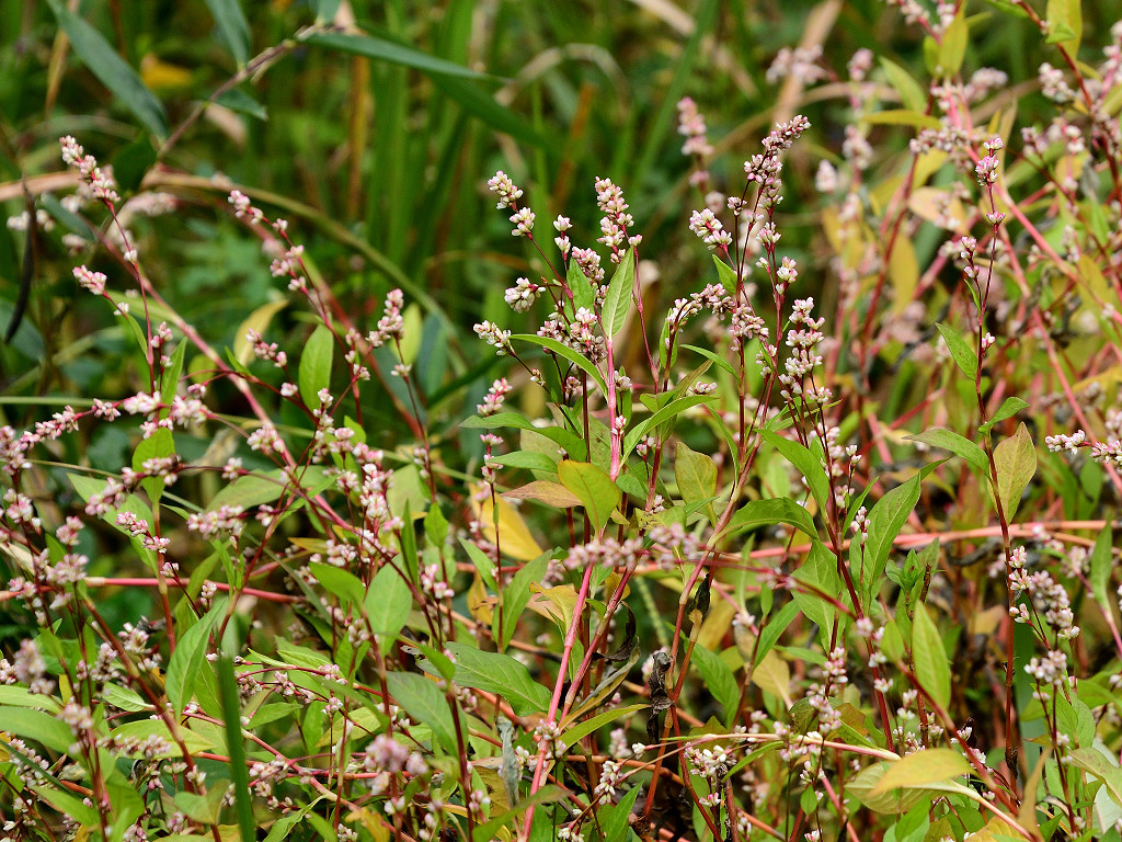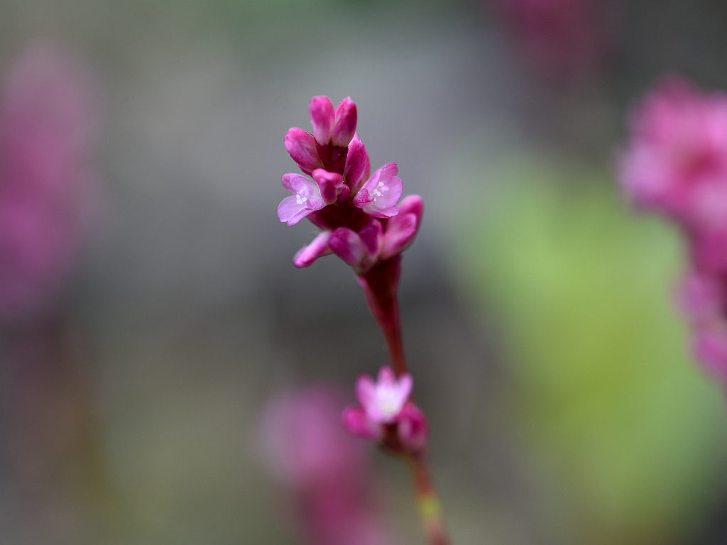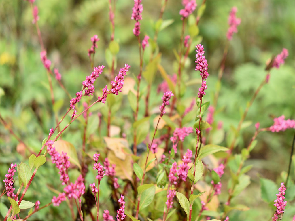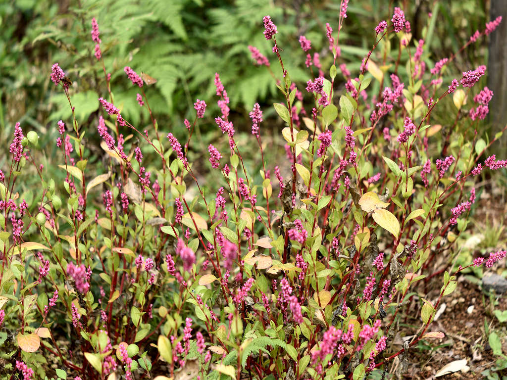 花はピンク色 秋に咲く。 茎は秋深くなると赤くなる