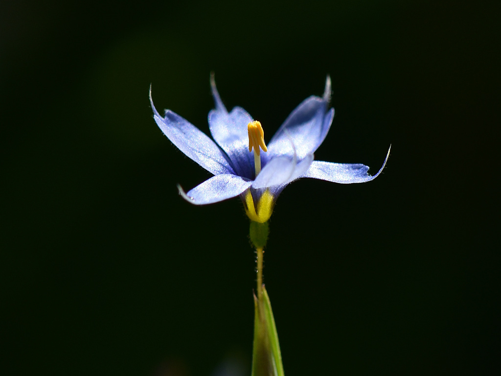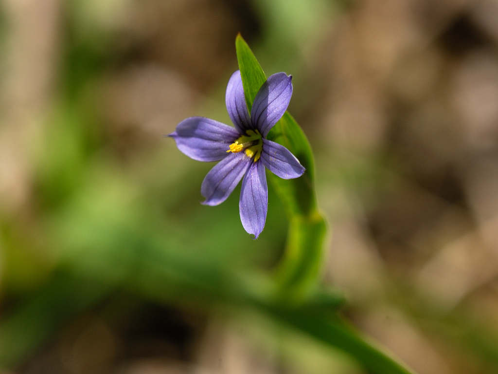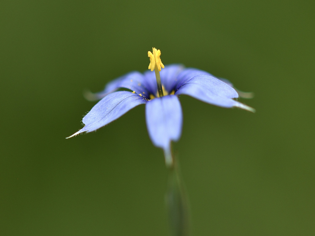 茎先に花径10−15mmの青紫色の花を付ける 花被片は6枚 葉は線形 草丈は20−30p程度
