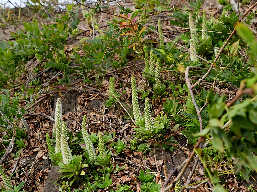 葉は多肉 花茎を伸ばして開花する
