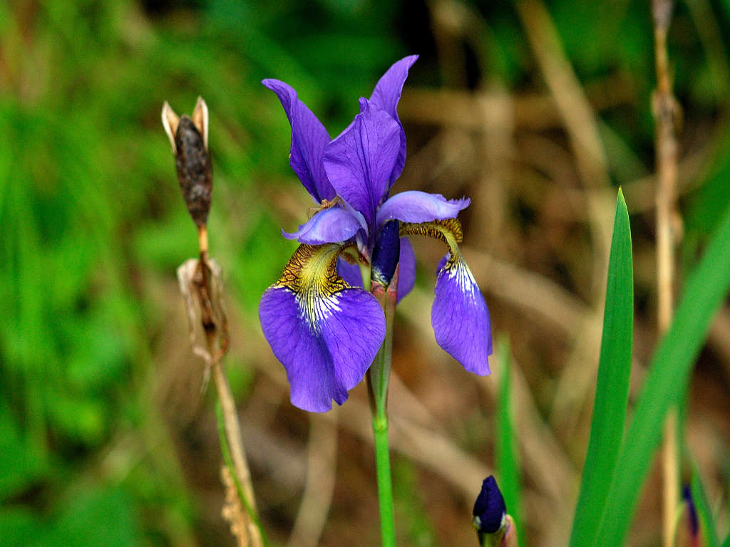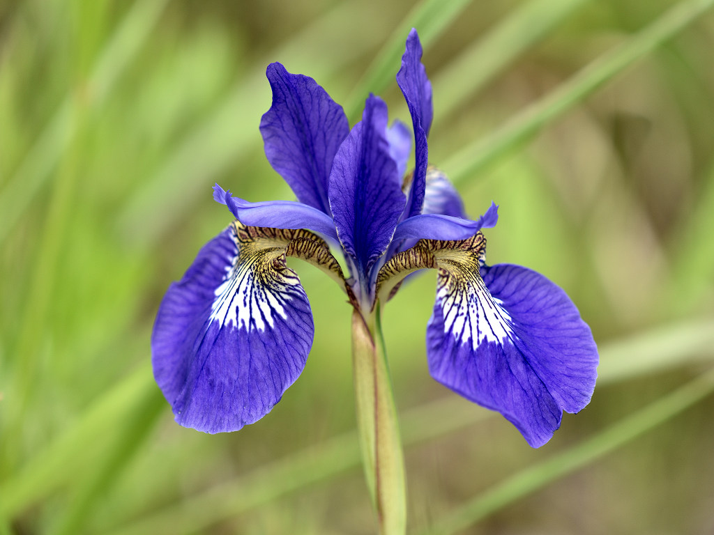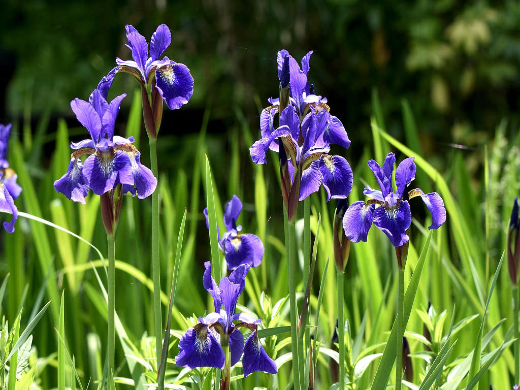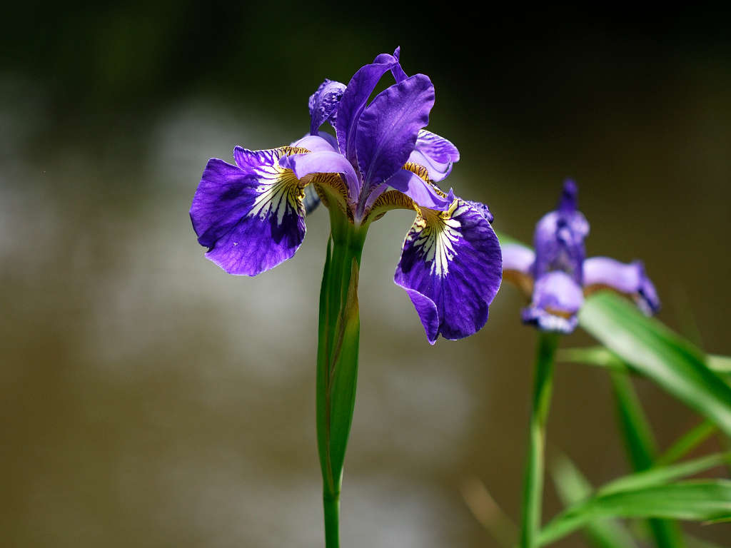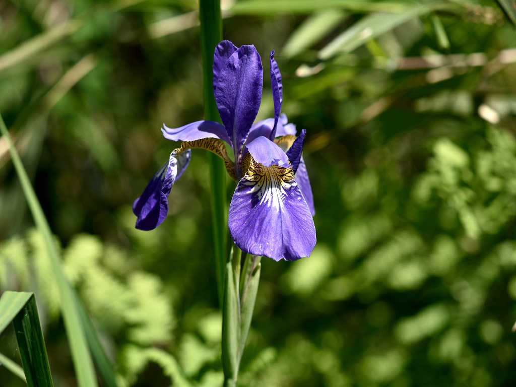 | 花の特徴 | 茎先に花径5〜8センチくらいの青紫色の花を1〜3輪くらいつける。内花被片と外花被片が3枚ずつある。外側に3枚の大きな花びら(外花被片)が垂れ下がる 葉は剣状で直立 「カキツバタ」は花弁の元に白い目型の模様がある 「アヤメ」は網目 「ハナショウブ」は黄色の模様で違いがわかる |