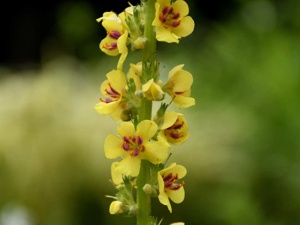 長い花径を延ばして総状に咲き花色は黄色、薄ピンクなど色々ある