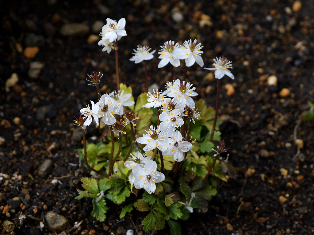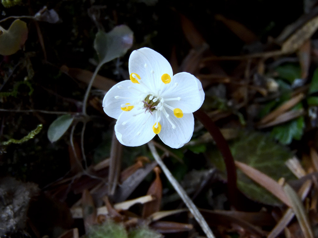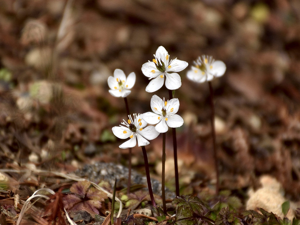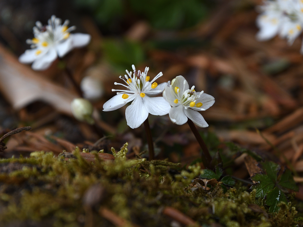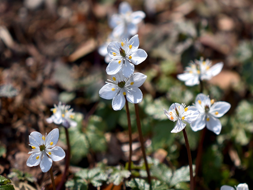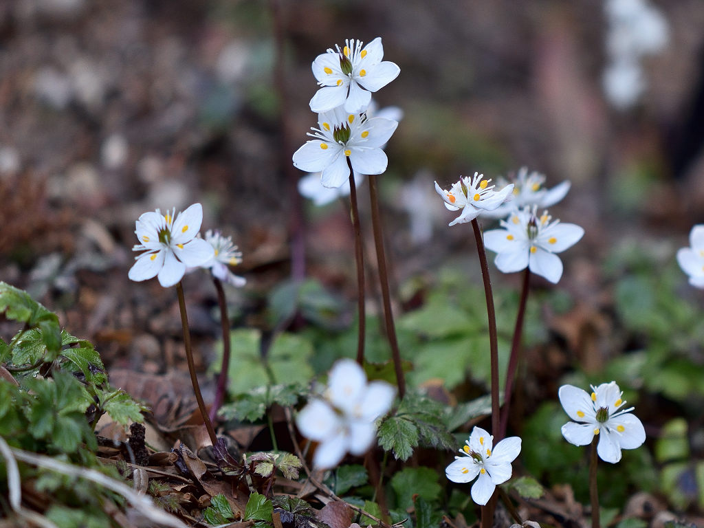 花びらは白 梅に似た花が咲く 「オウレン」の仲間なのでバイカオウレン