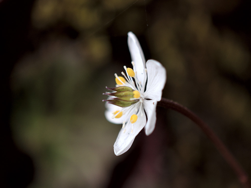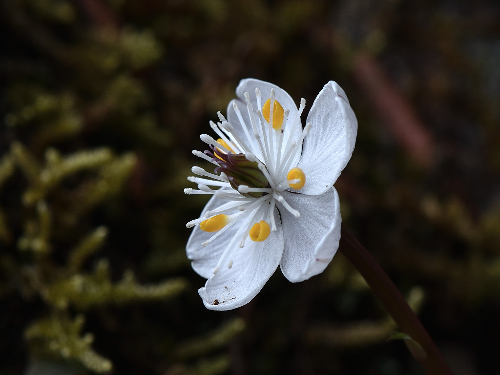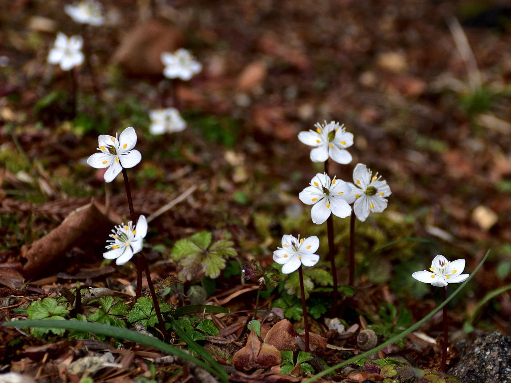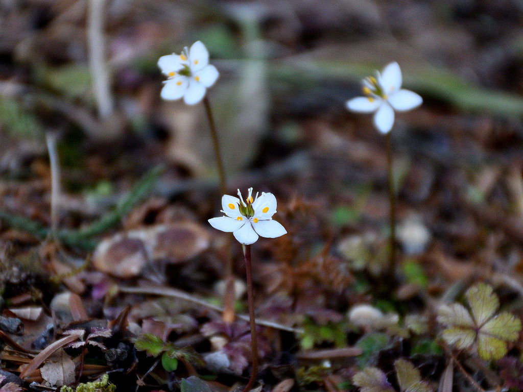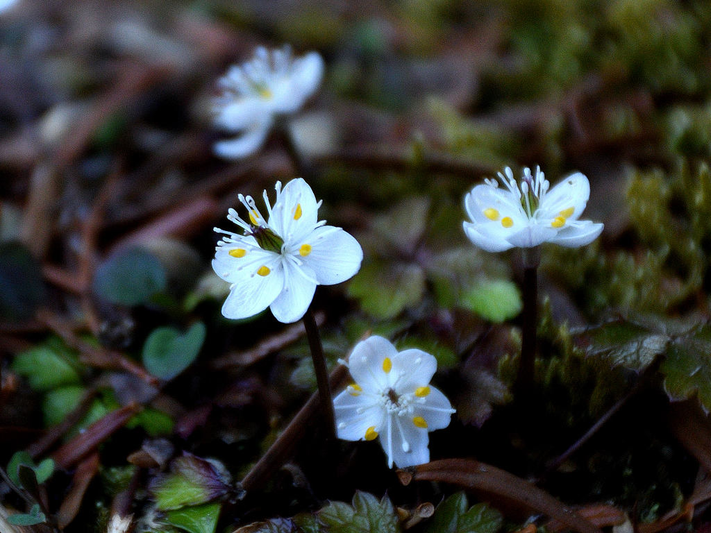 花びらは白 梅に似た花が咲く 「オウレン」の仲間なのでバイカオウレン