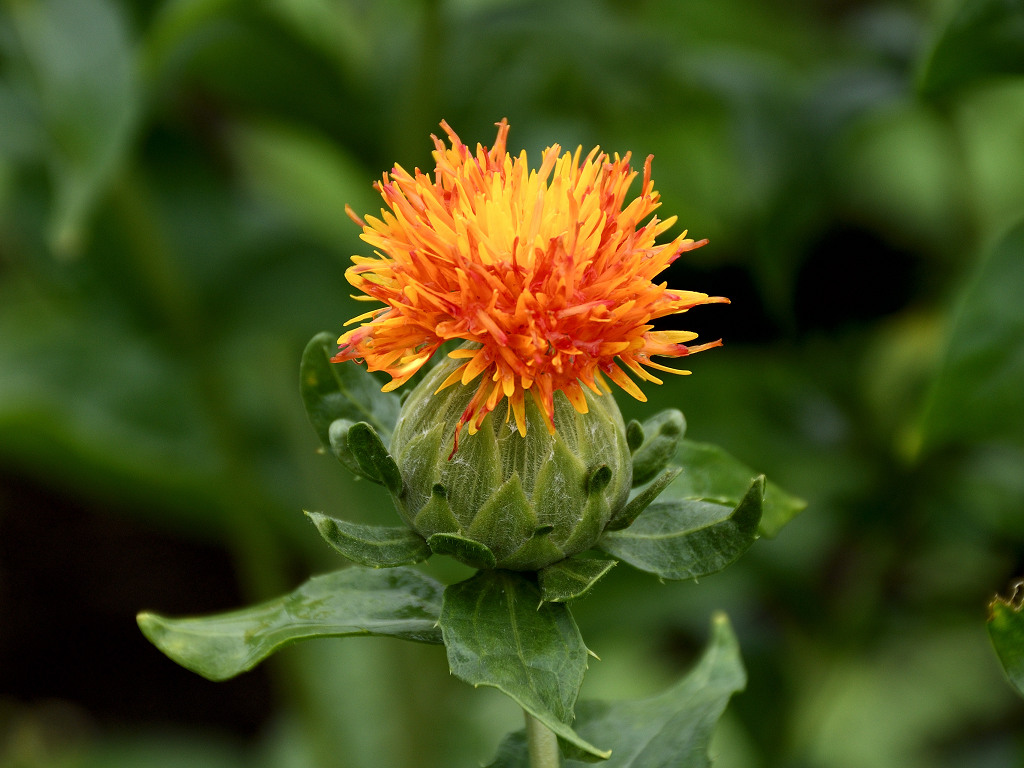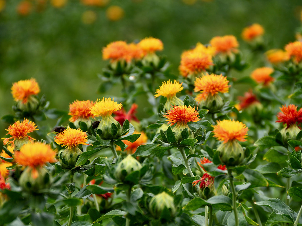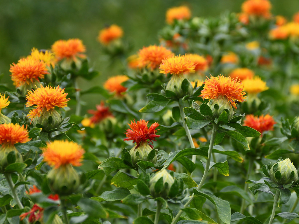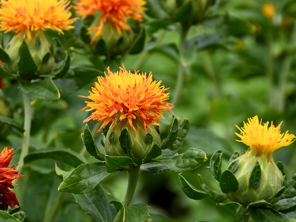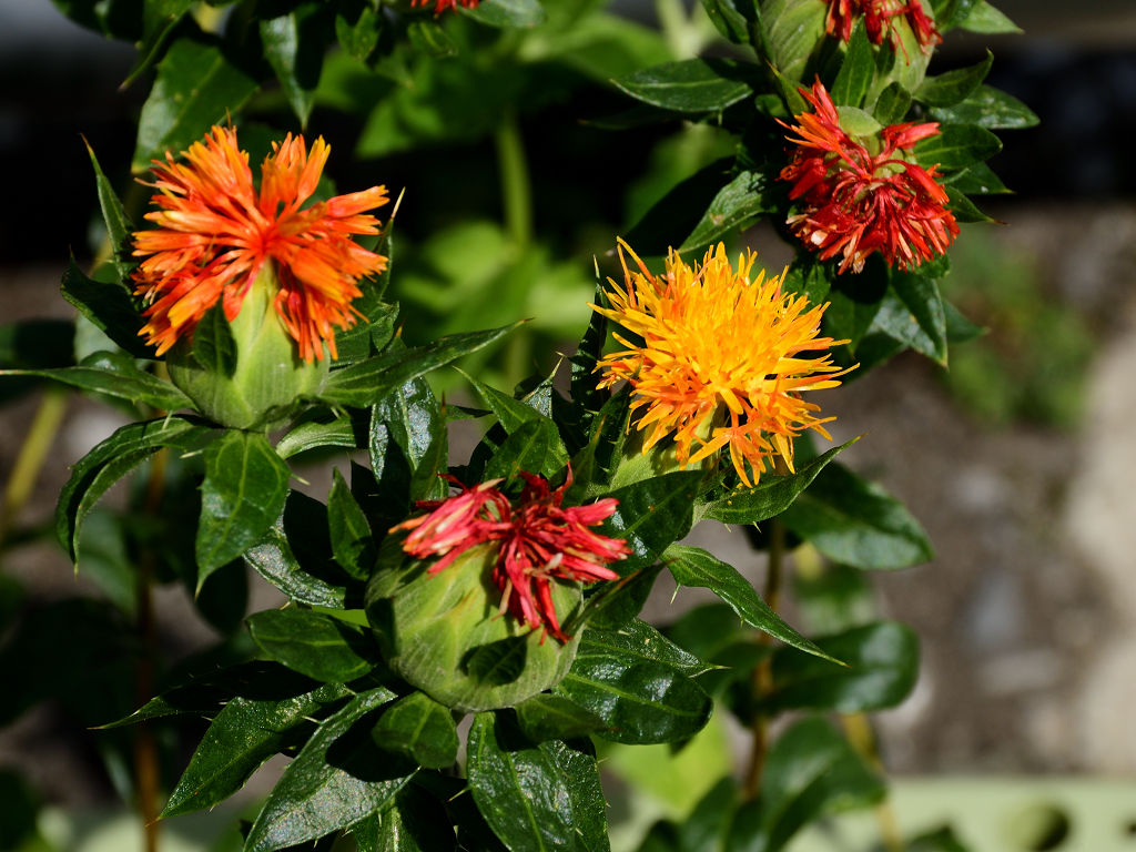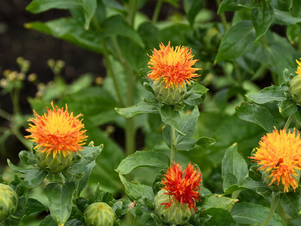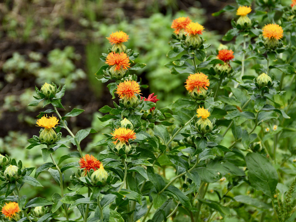 名前は花の色からでなく、花びらから赤色の染料や口紅のもとになる色素がとれることから「ベニバナ」