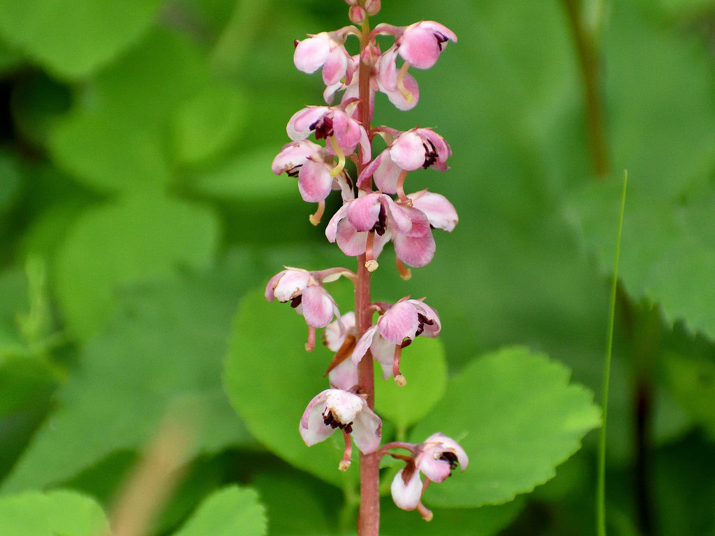 花茎の先に総状花序をつくり、7-15個の桃色の花をらせん状に下向きにつける。