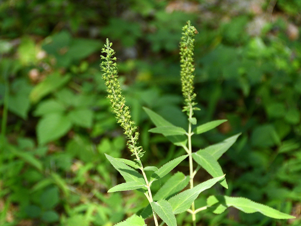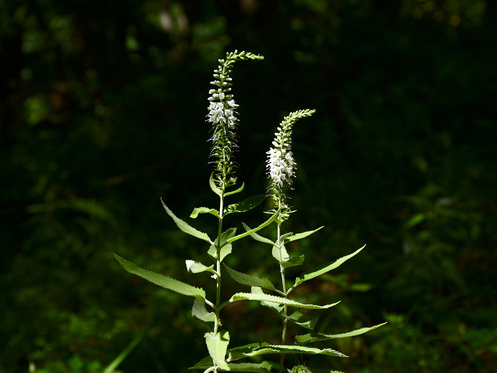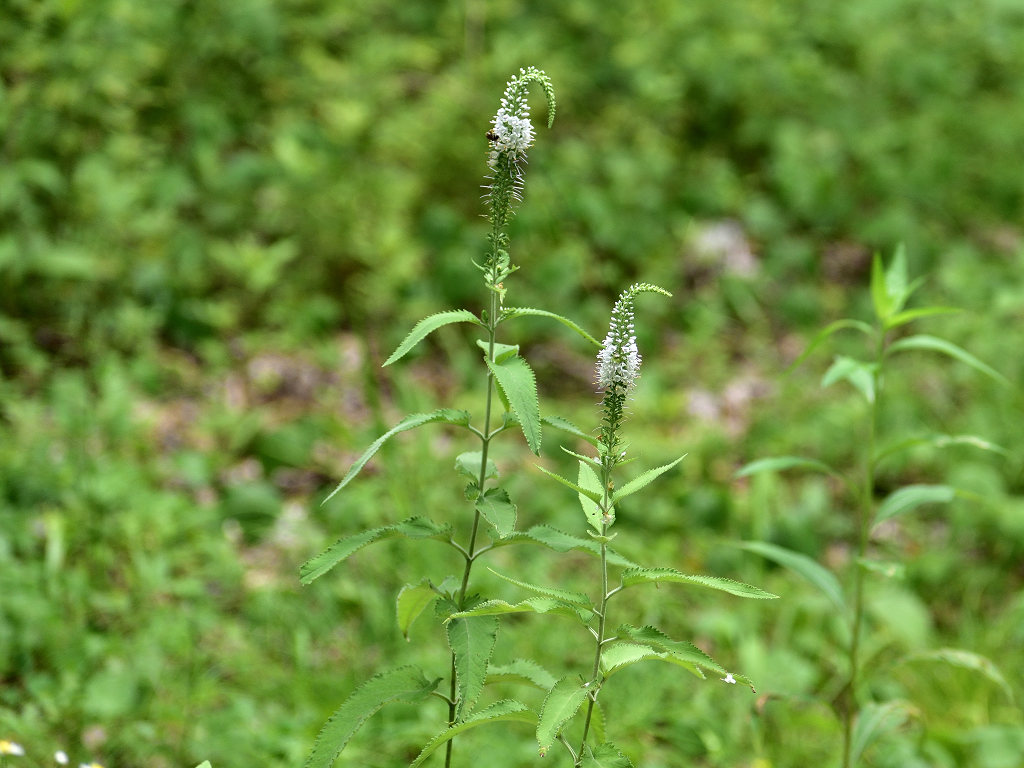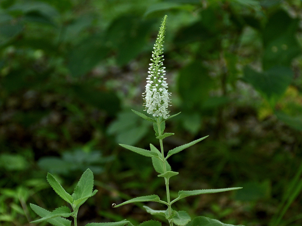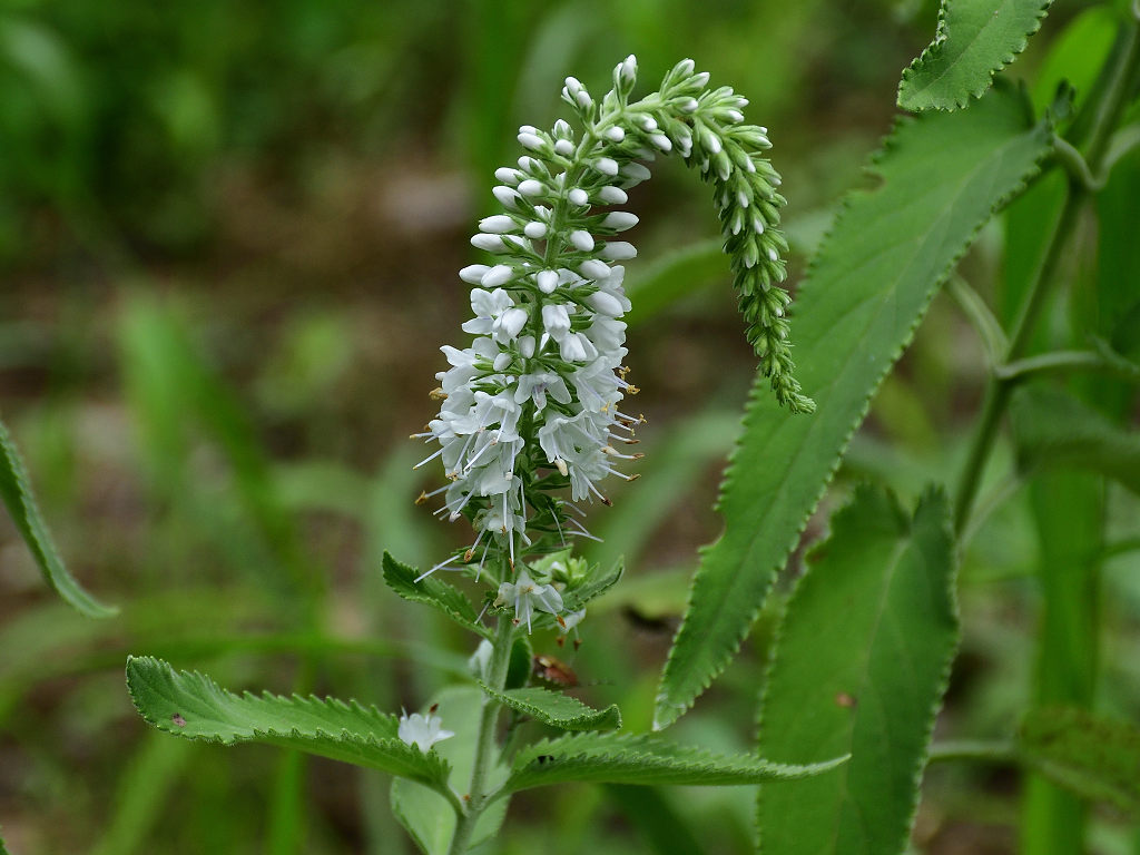 茎は直立し上部で枝分かれする 葉の両面に白い軟毛が生える 葉は対生し鋭い鋸歯がある 花はトラノオと同じ