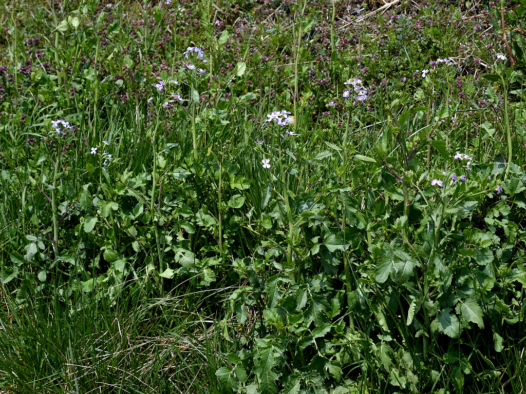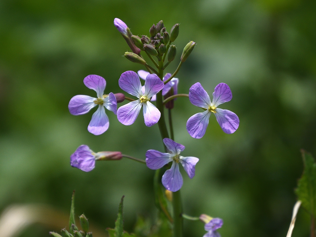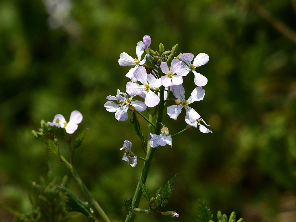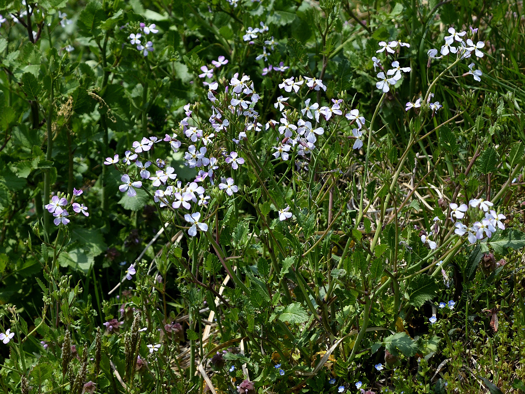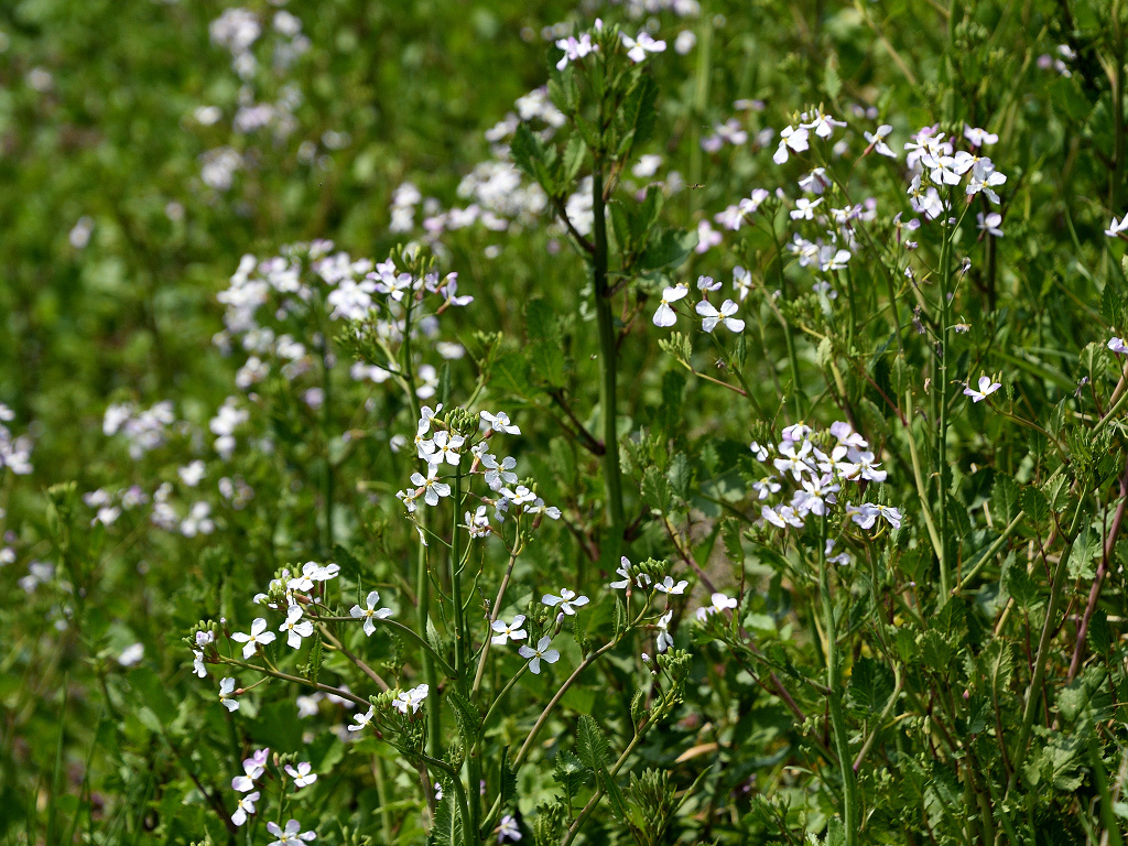 白または淡い紫色をした十字形の4弁花をたくさんつける 春の七草の一つ清白(スズシロ)は大根(ダイコン)のこと