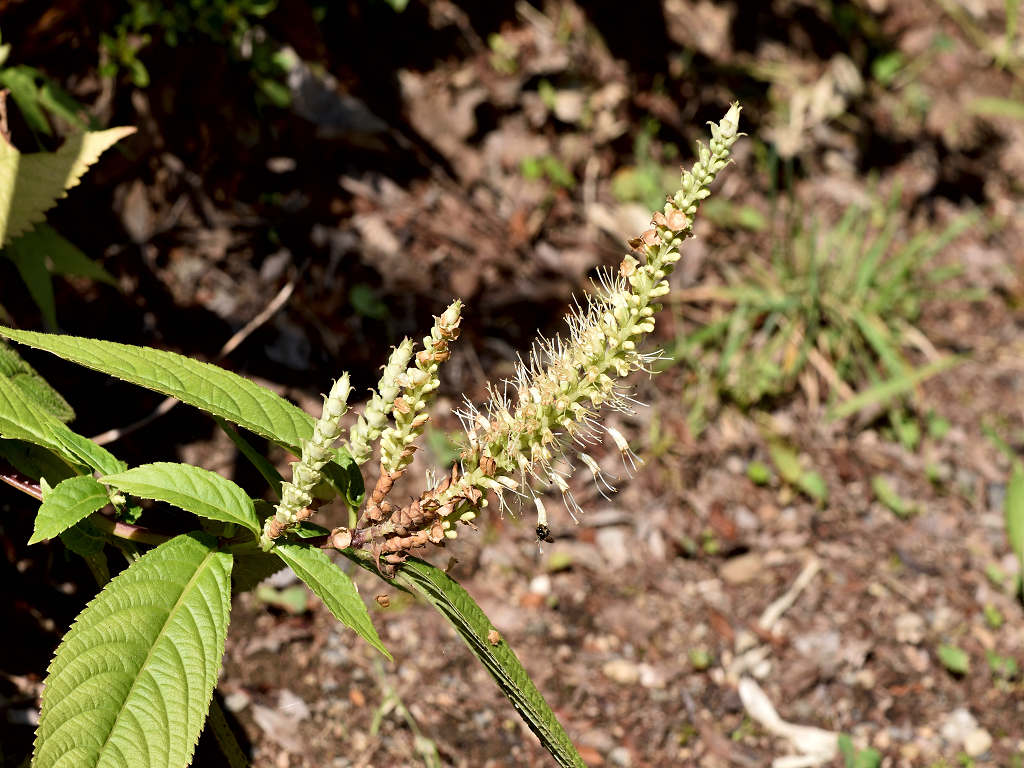 花序の直下の葉の裏の葉脈の主脈(中肋(ちゅうろく))や花穂に、フジテンニンソウは開出毛があるが、テンニンソウには無いことで識別