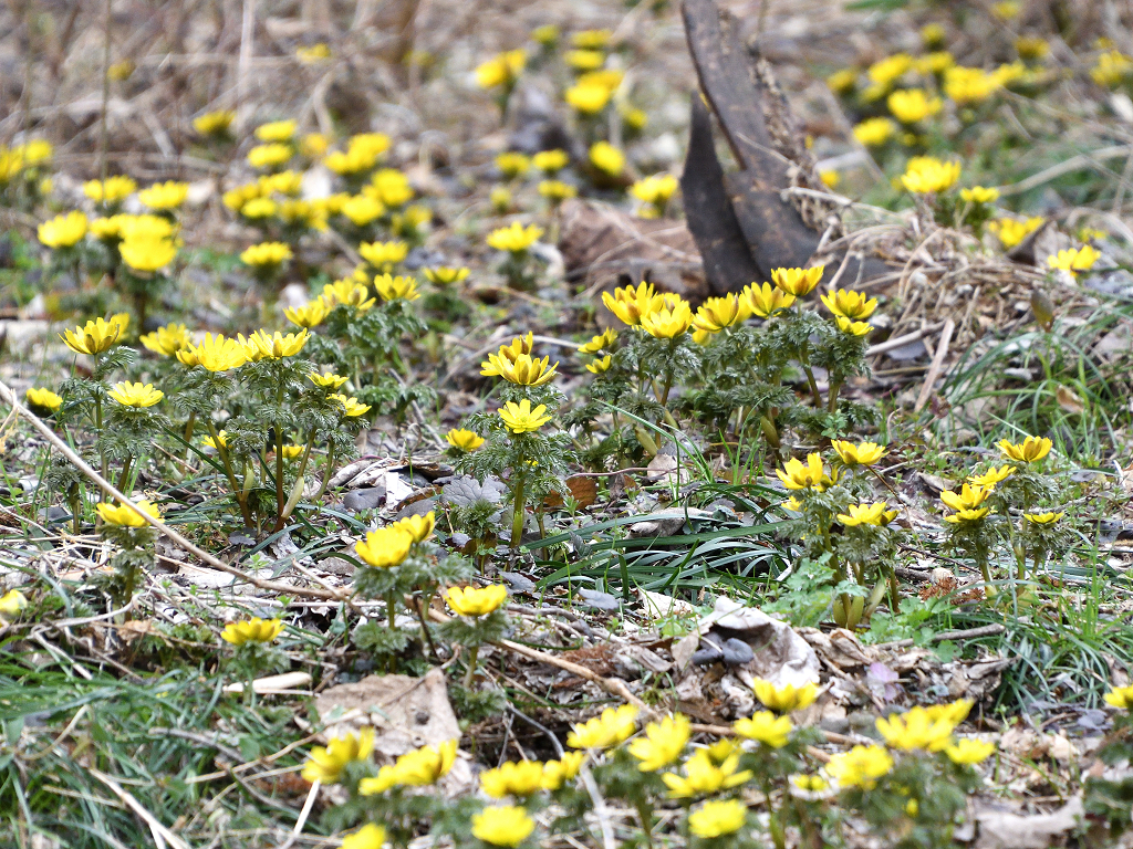 早春にキクに似た花を咲かす