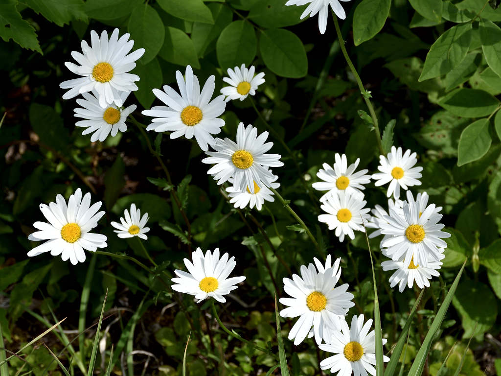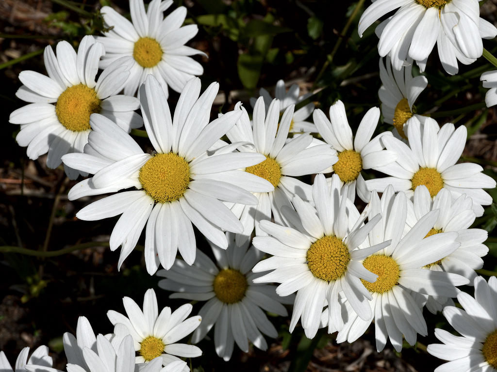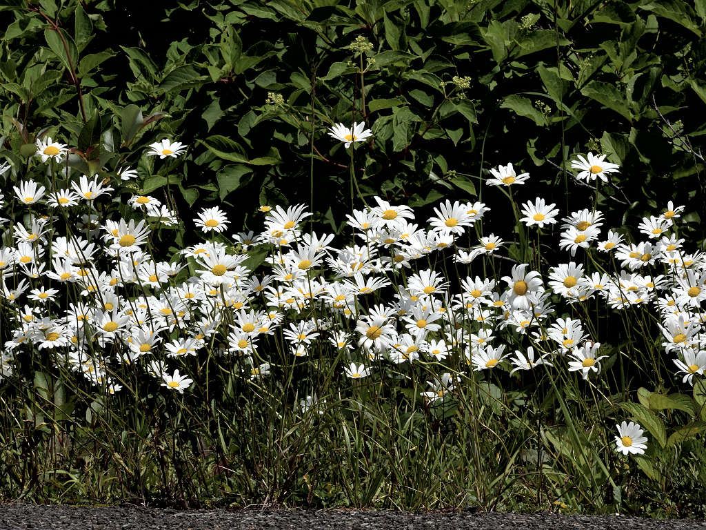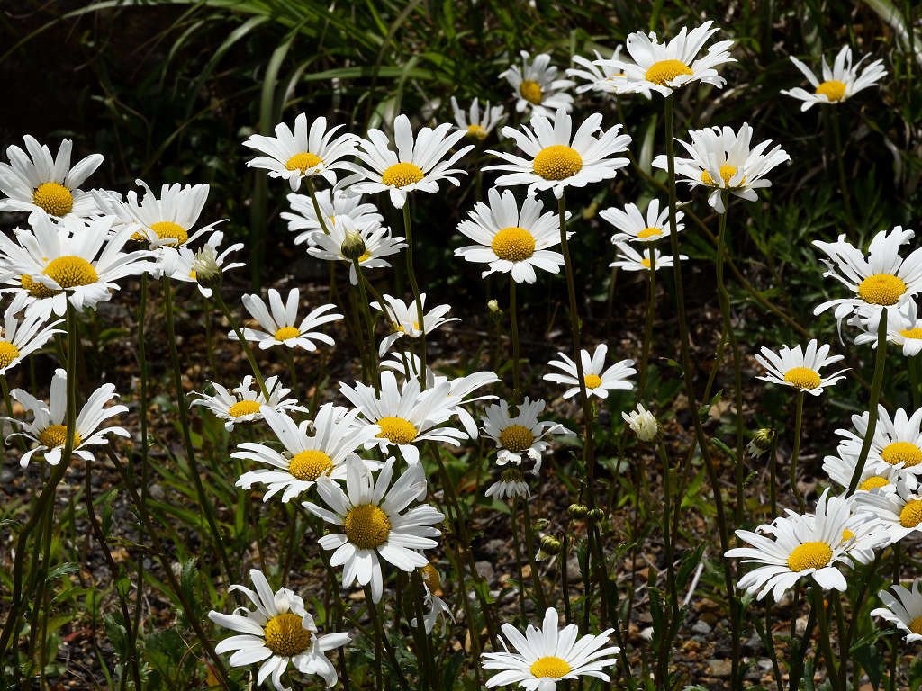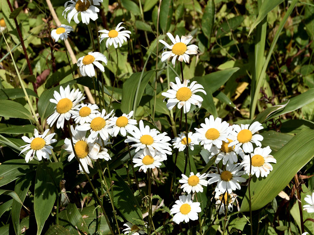 | 花の特徴 | 頭花の花径は5センチくらいで白い色、マーガレットとよく似ている。違いは花の中心の管状花が少し盛り上がっていること、葉がヘラ状で大きな鋸葉、マーガレットは羽状に深く切れ込んでいる |