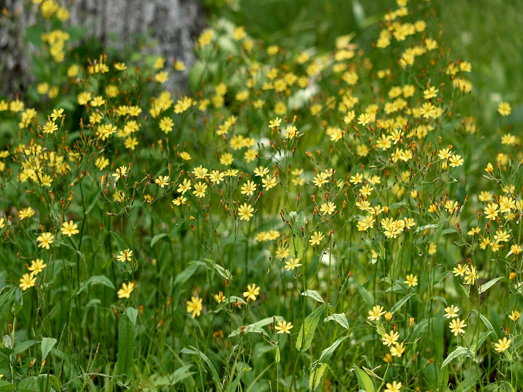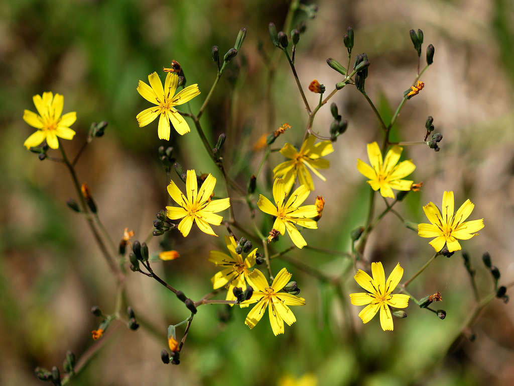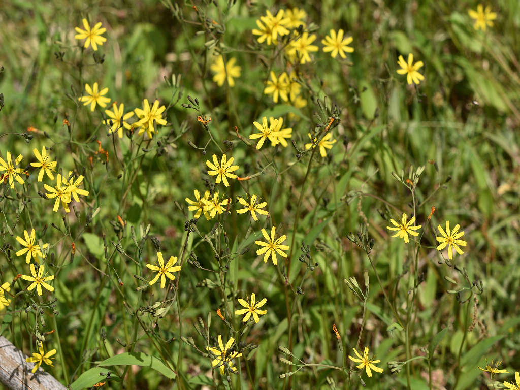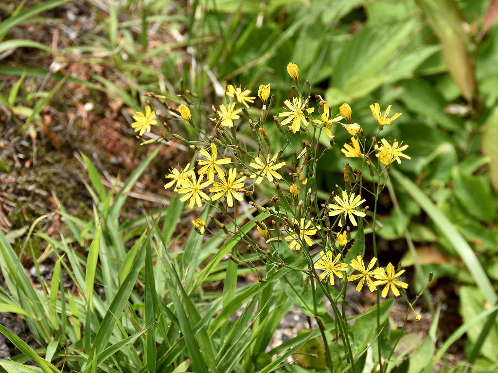 舌状花が 7枚以上 (ニガナは5-6枚) ニガナより花びらが多いのと葉に柄が無く 茎を包むように付く