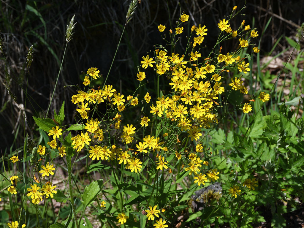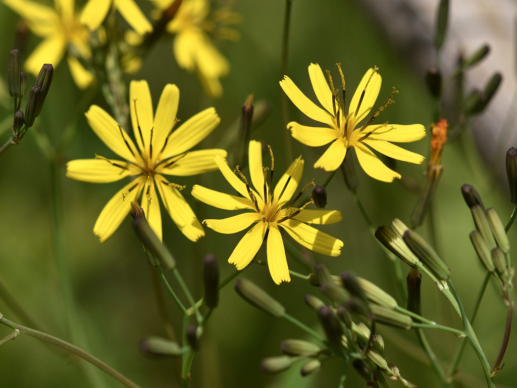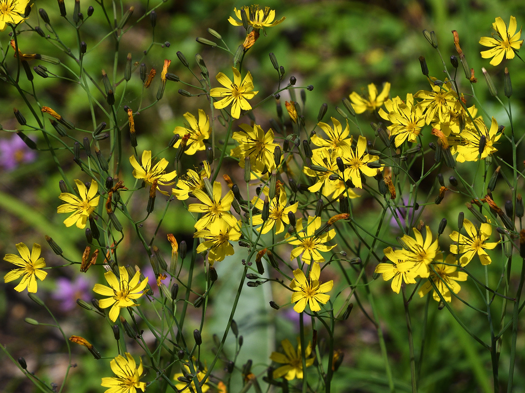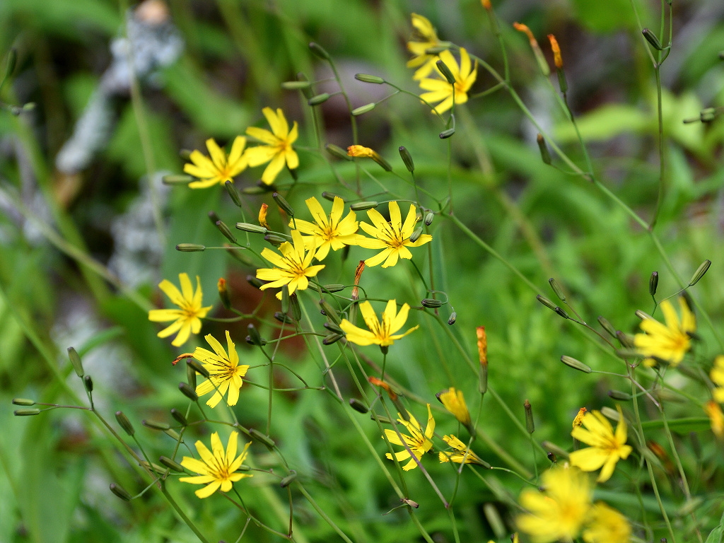 舌状花が 7枚以上 (ニガナは5-6枚) ニガナより花びらが多いのと葉に柄が無く 茎を包むように付く