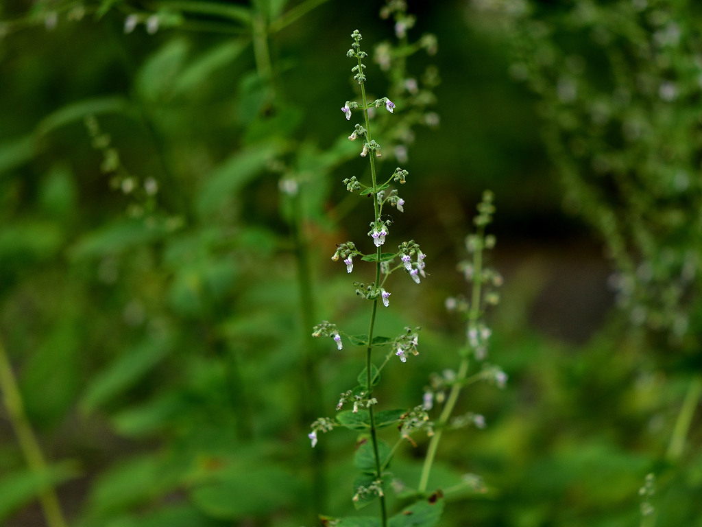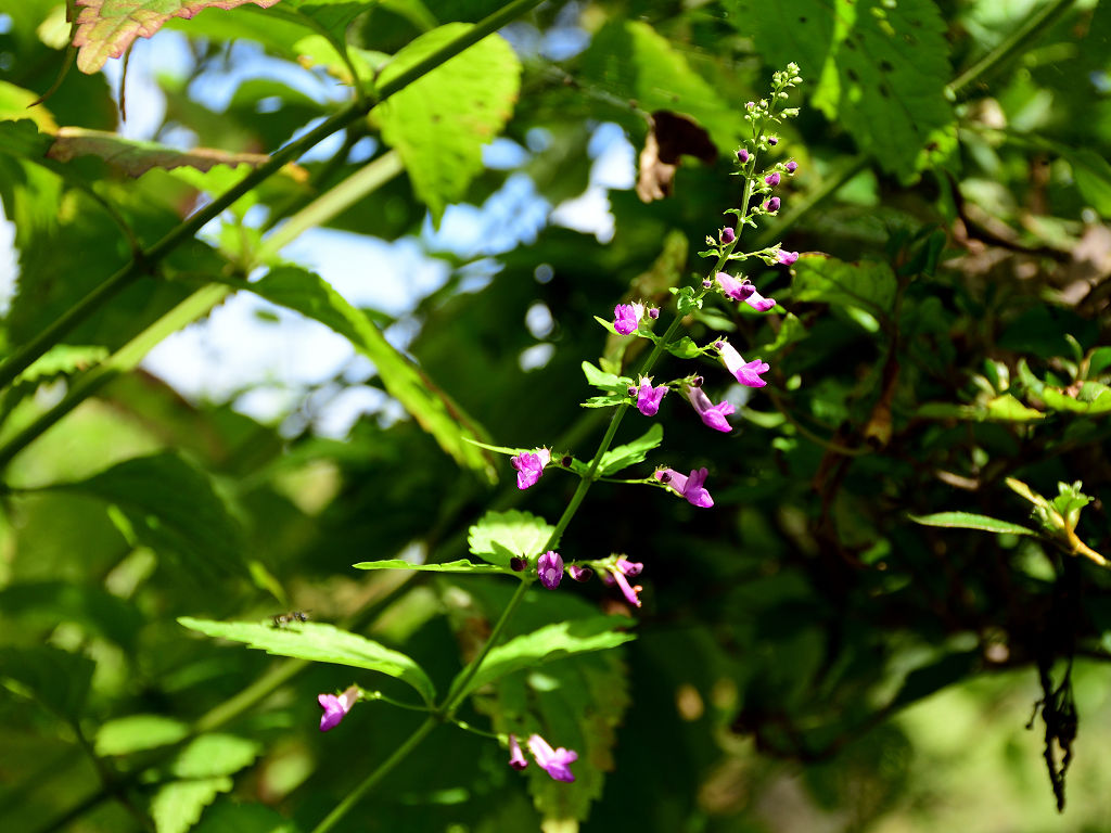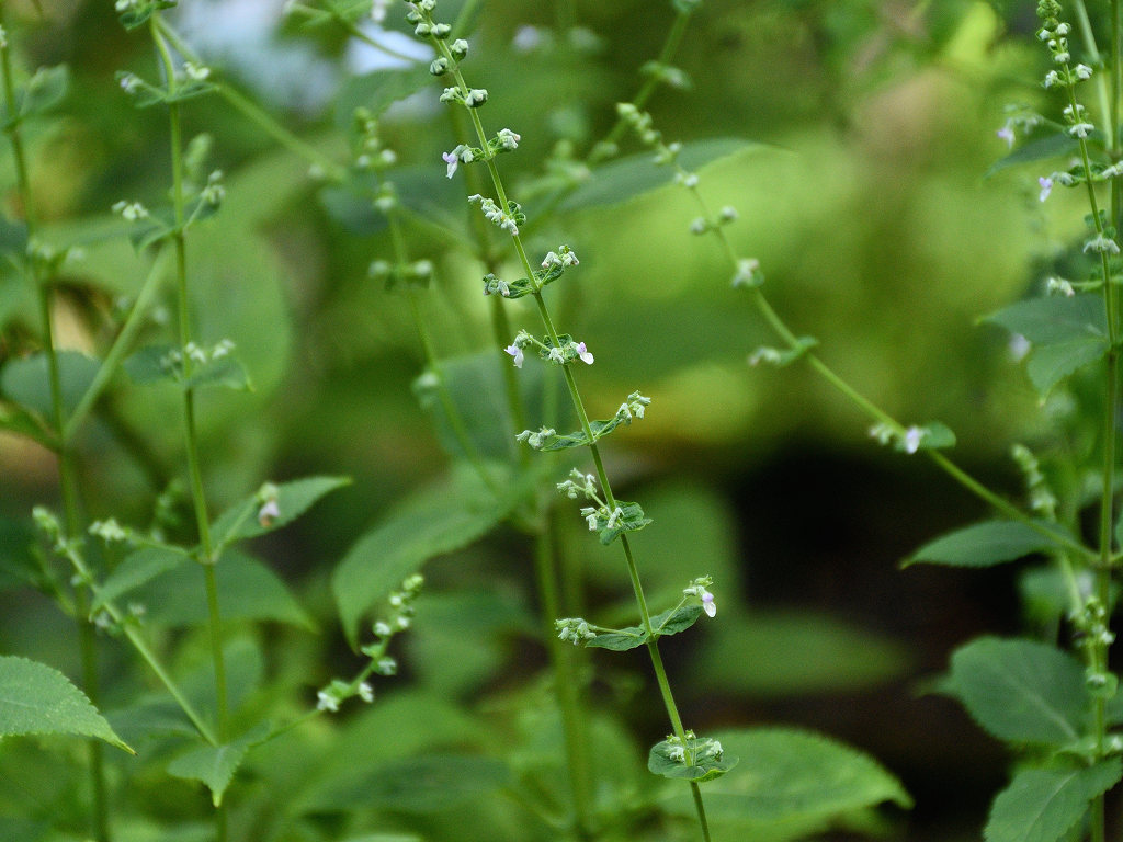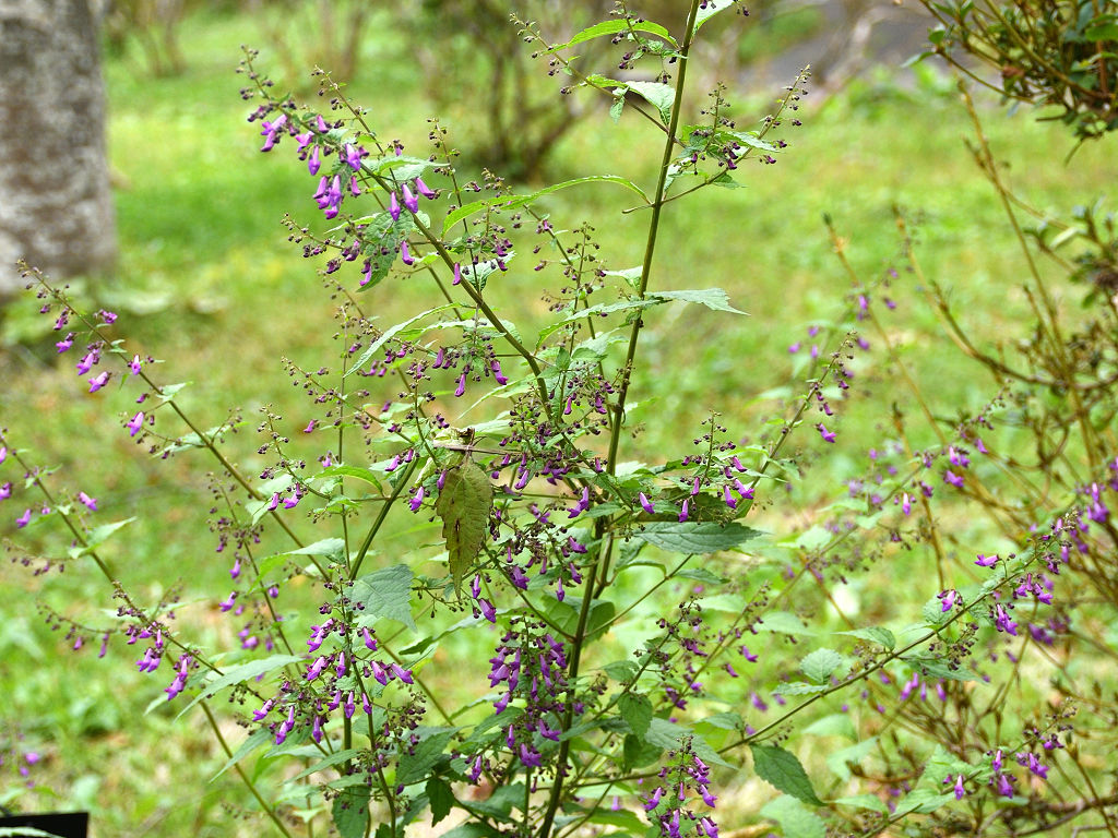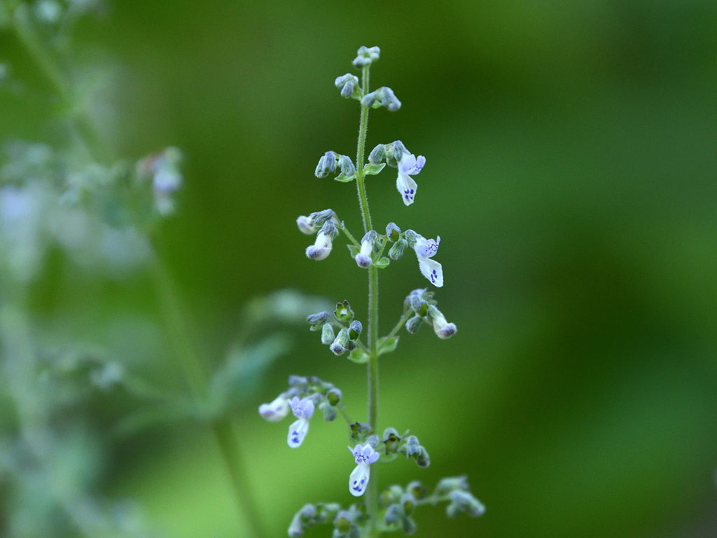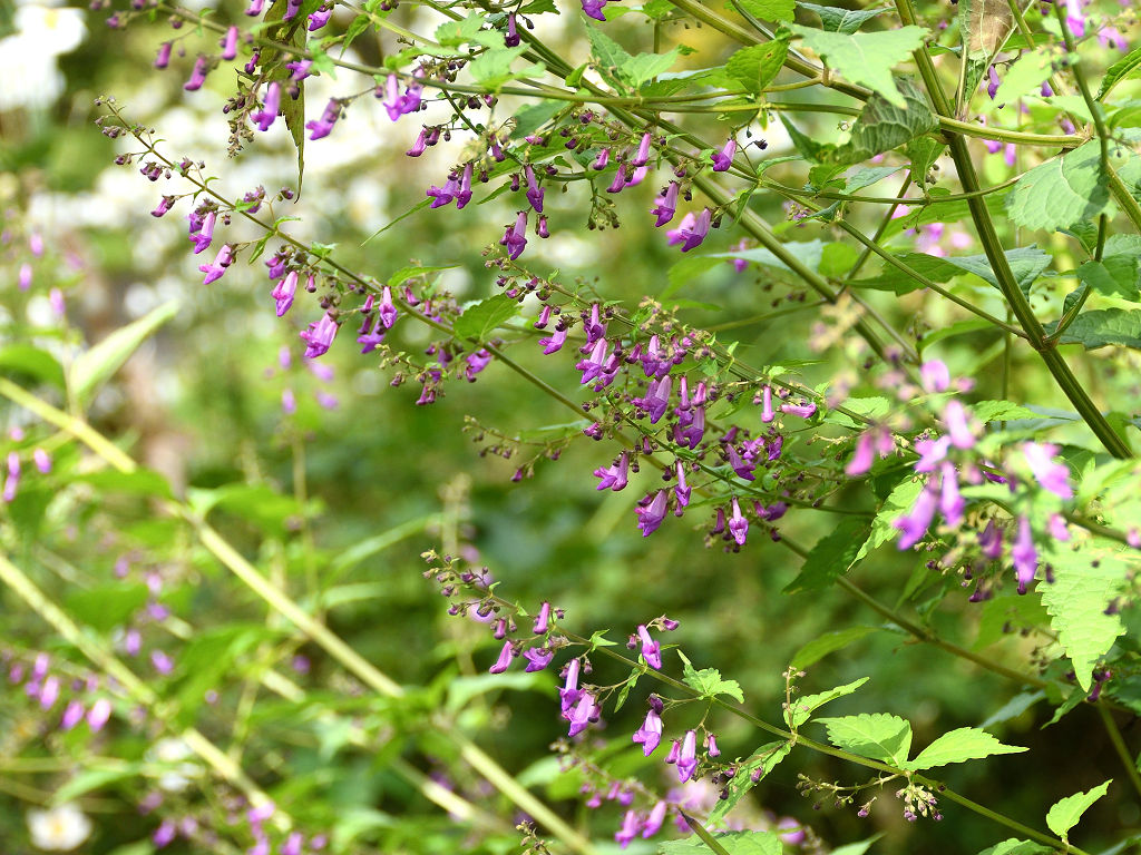 茎の上部に葉腋から集散花序を出し、それらが集まって円錐状の花序になり、多数の花を付ける