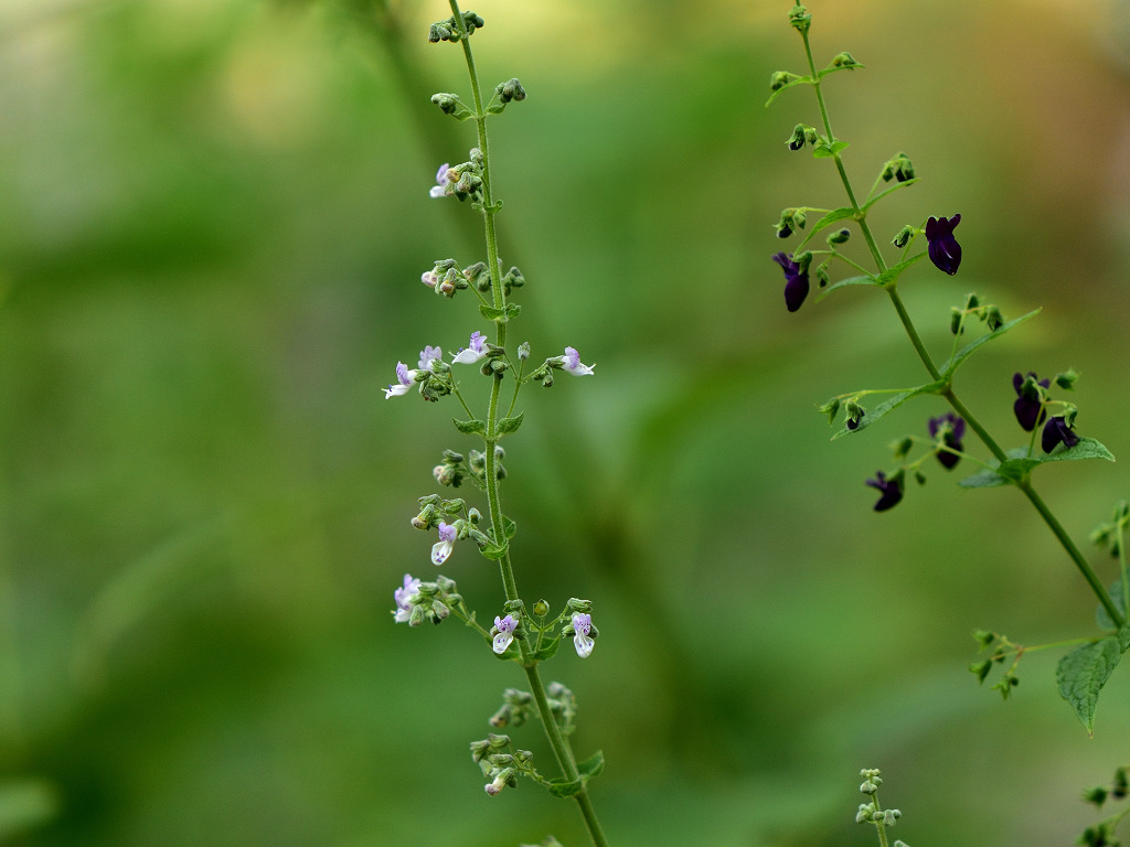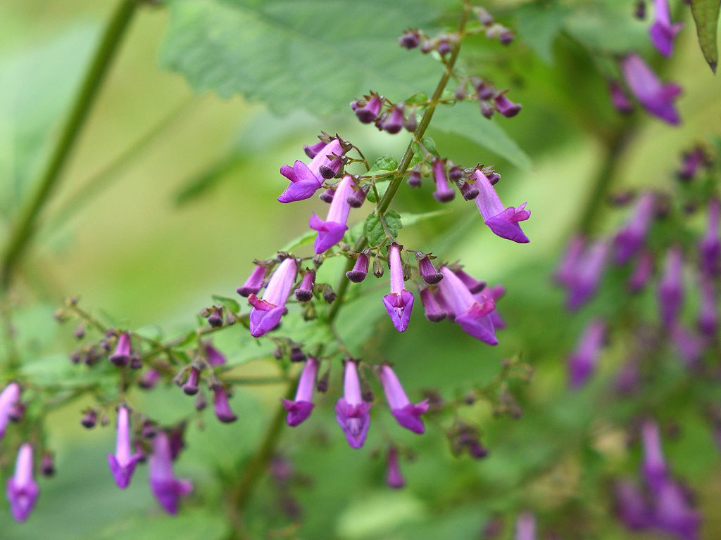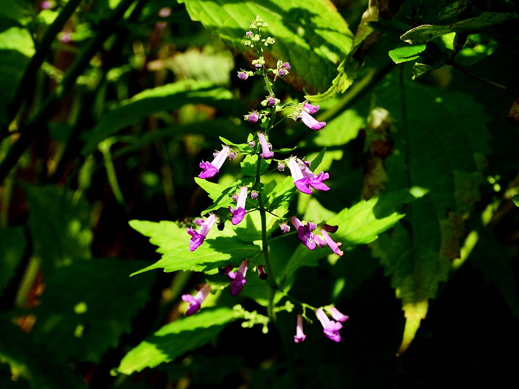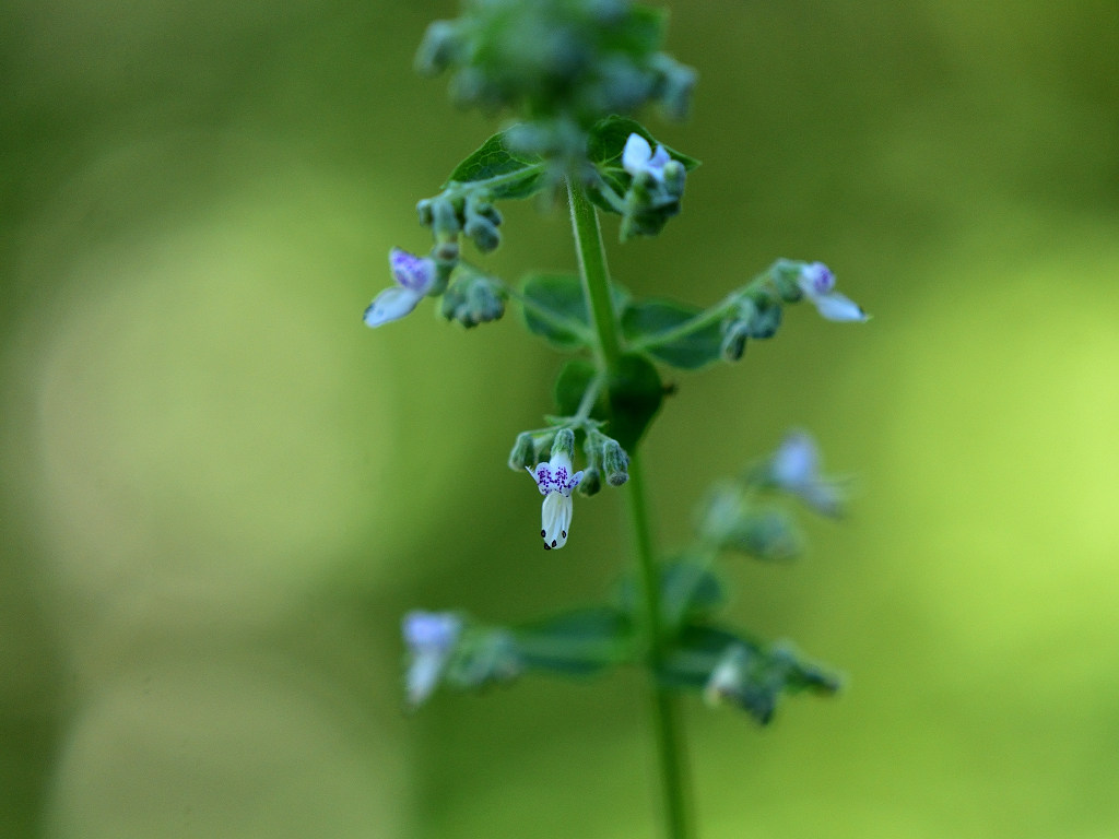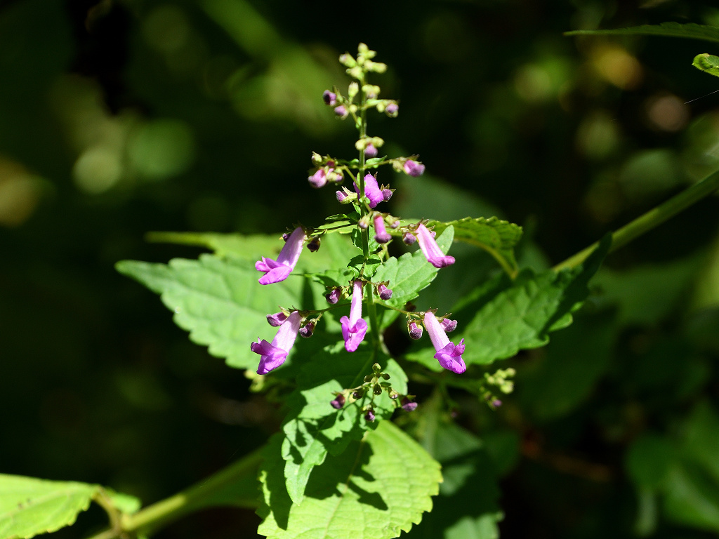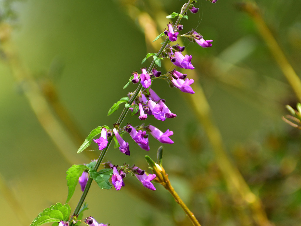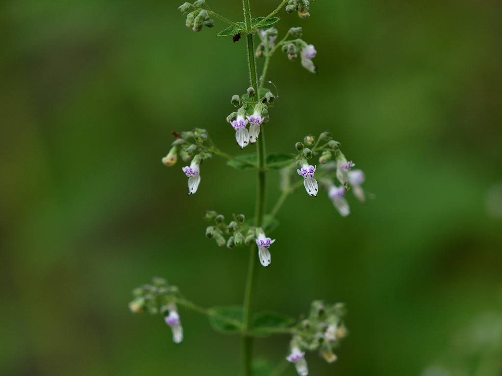 茎の上部に葉腋から集散花序を出し、それらが集まって円錐状の花序になり、多数の花を付ける