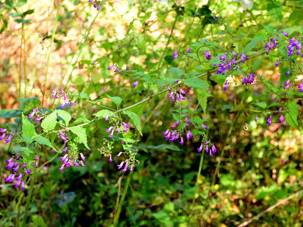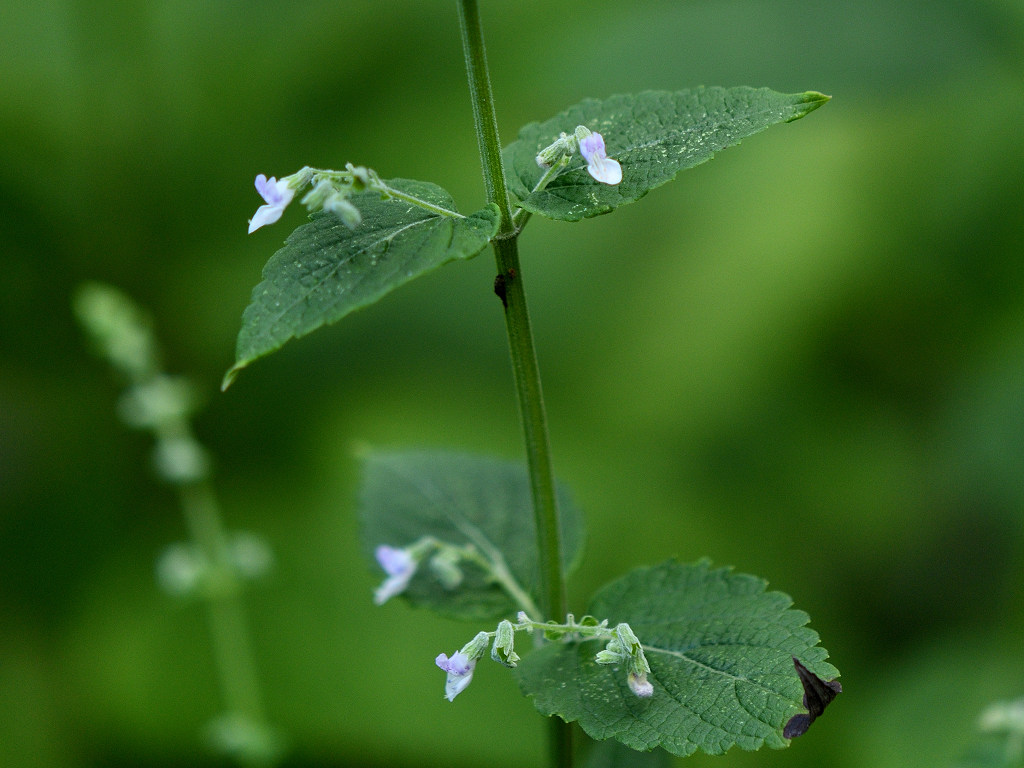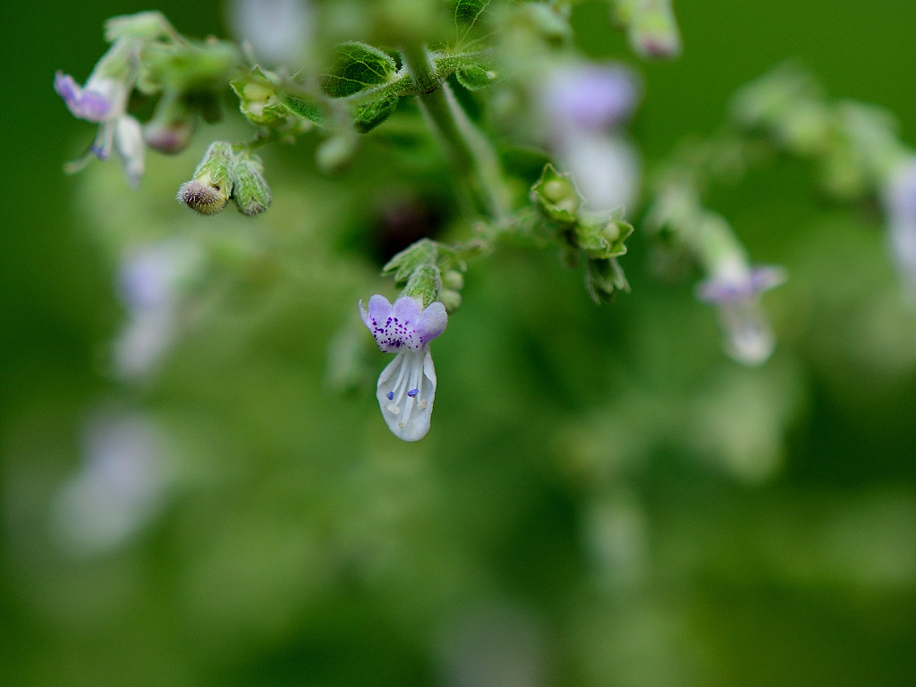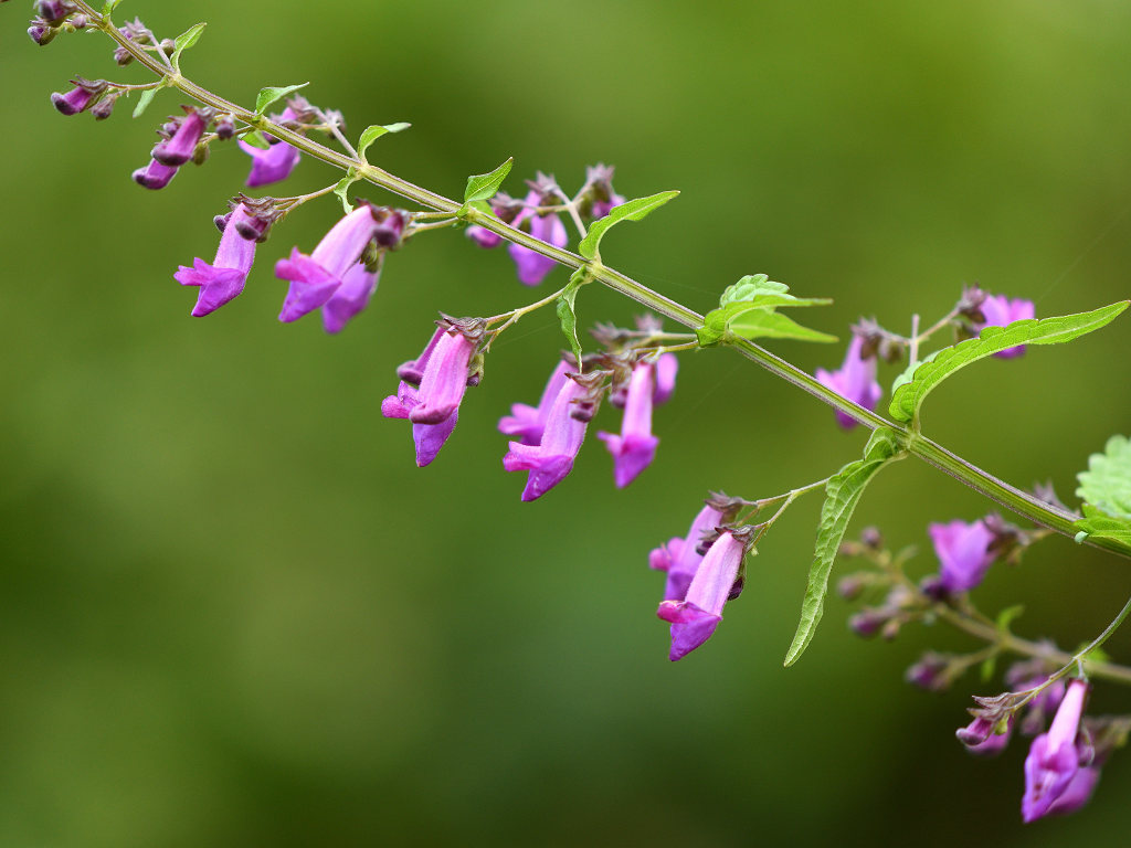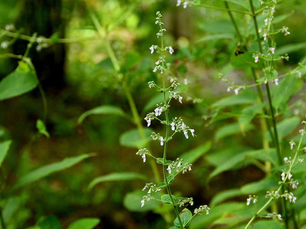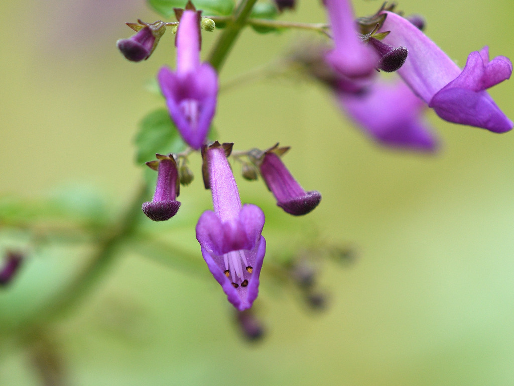 茎の上部に葉腋から集散花序を出し、それらが集まって円錐状の花序になり、多数の花を付ける