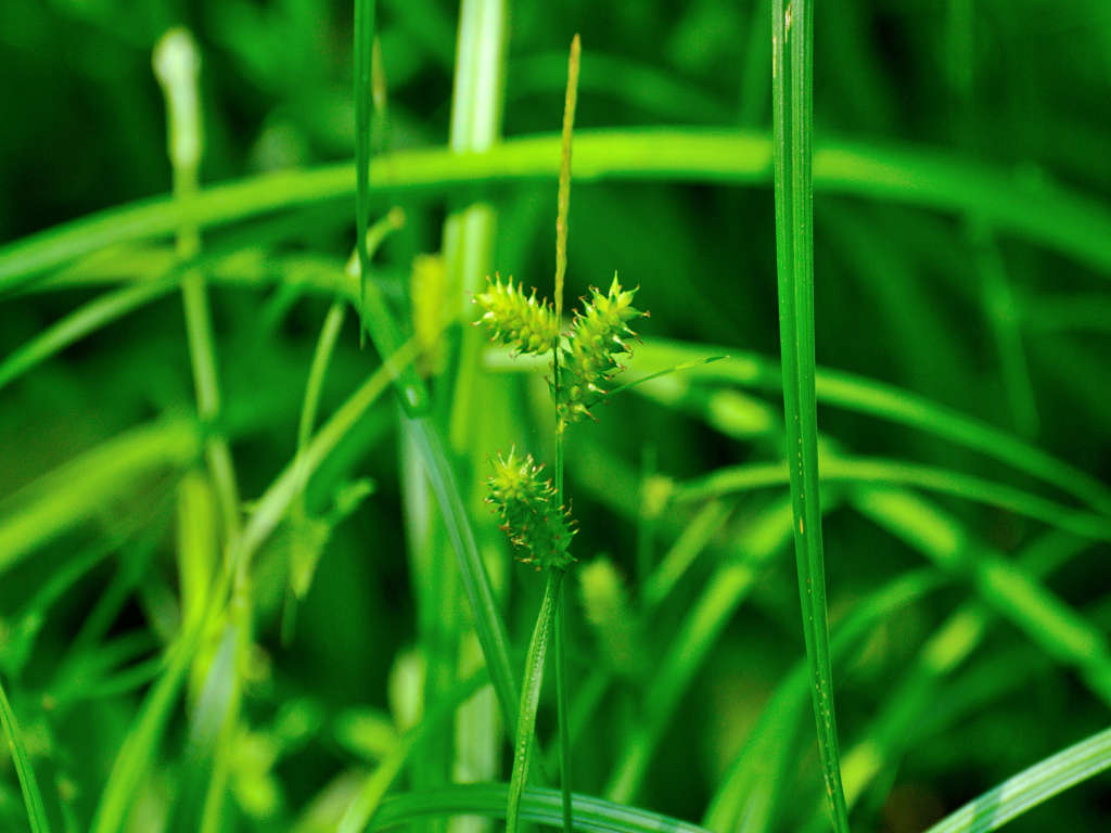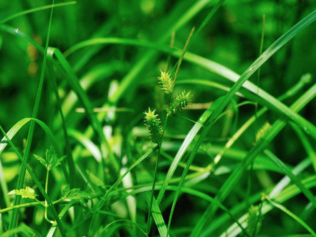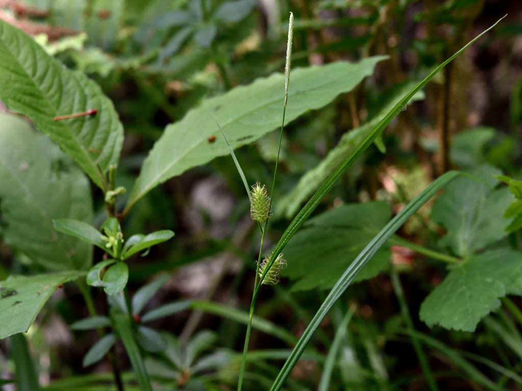 葉は幅4〜8oと広く、柔らかく、脈が目立つ。茎頂に、小穂を3〜6個、固まってつける 果実は長さ約1.8oの倒卵形、頂部に短い曲がった嘴がある