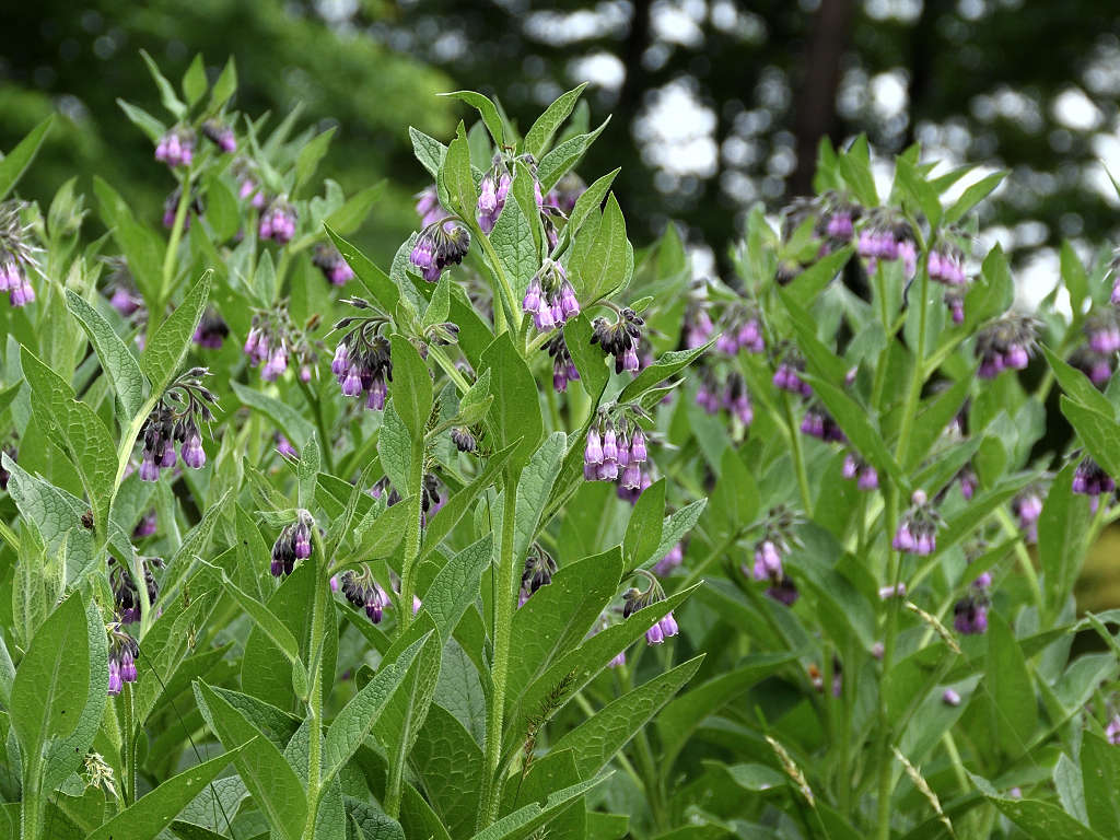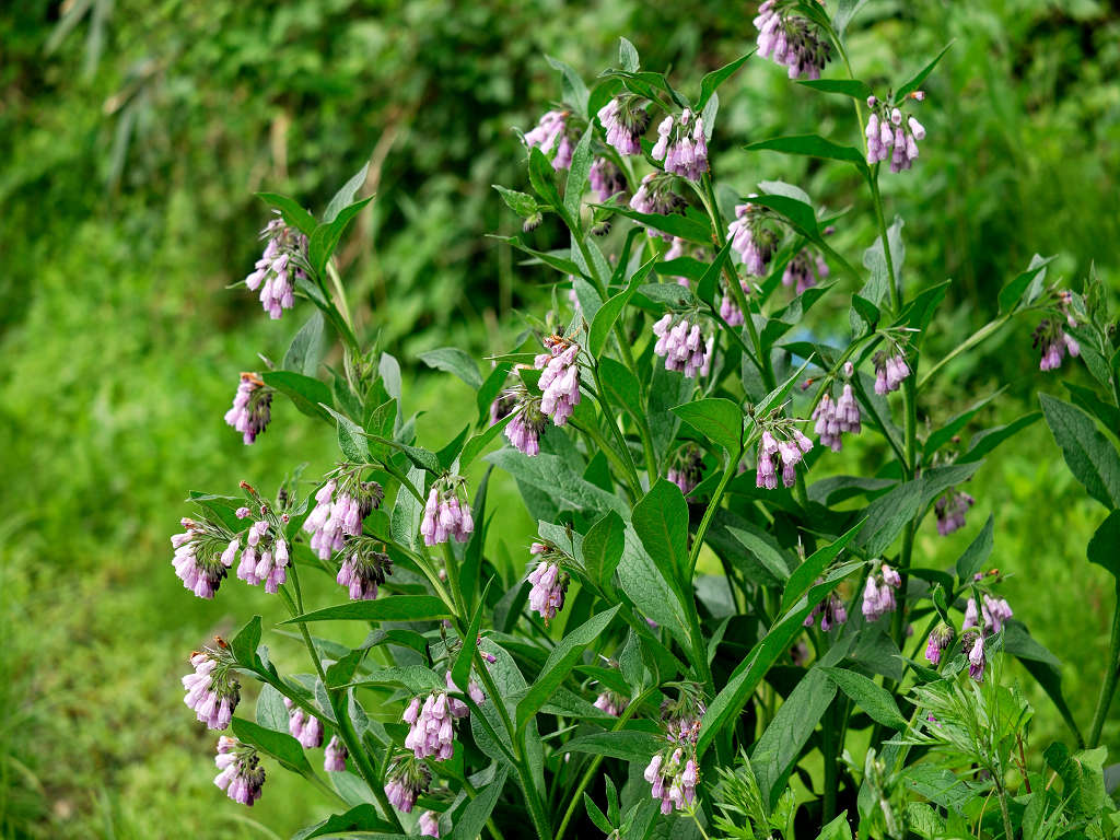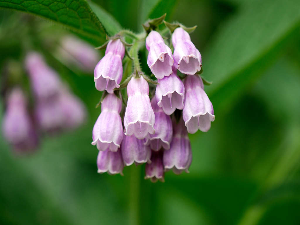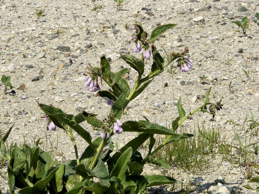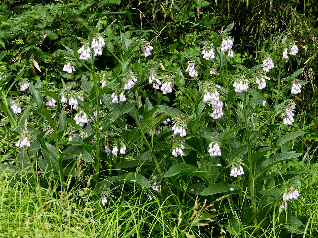茎先が枝分かれをし、その先に淡い紅色をした釣鐘状の小さな花を垂れてつける 葉は長い楕円形で、互い違いに生える(互生) 上部の葉はつけ根の部分に翼がつく