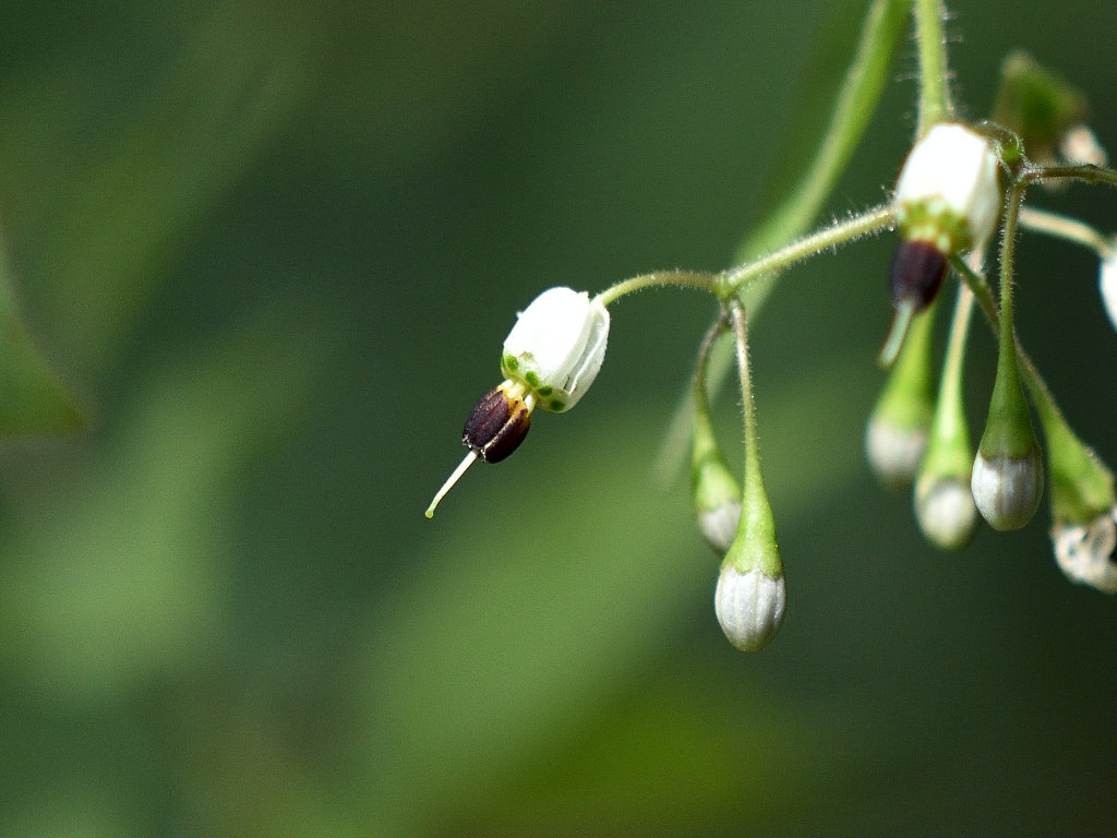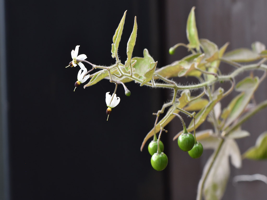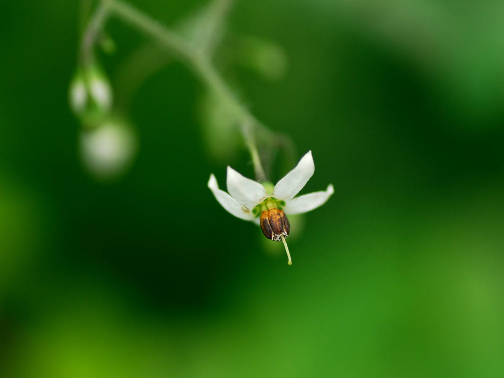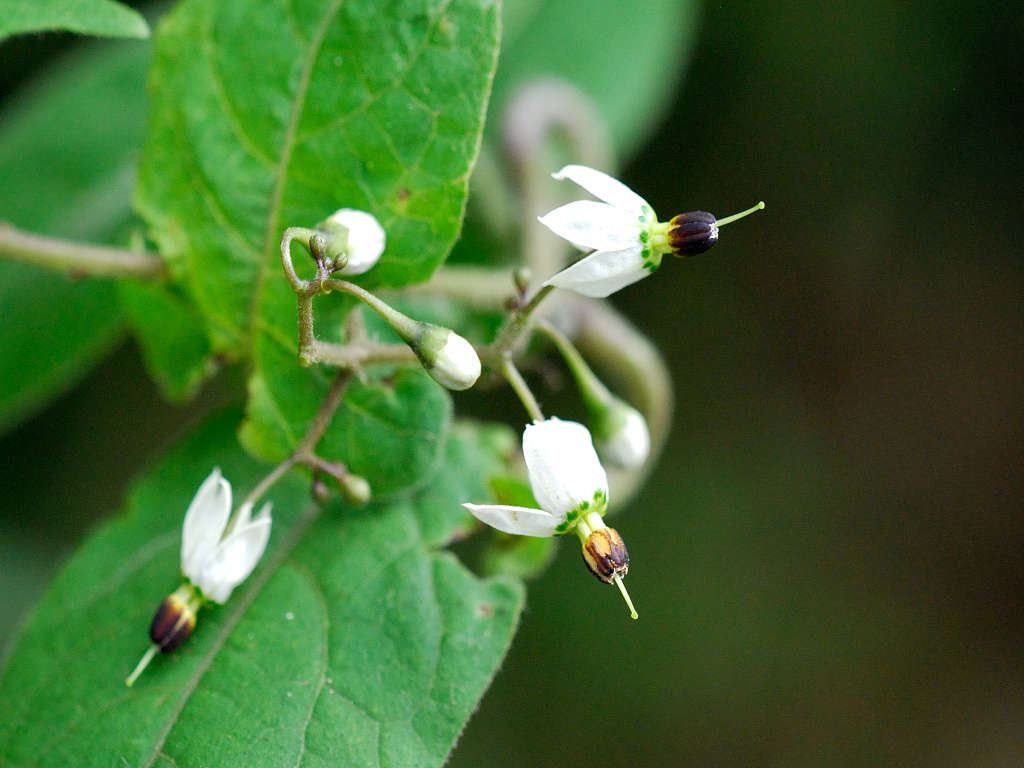 茎は蔓状 枝の先で花柄を分岐して花を咲かす 白い花は深く5裂 強く反転する