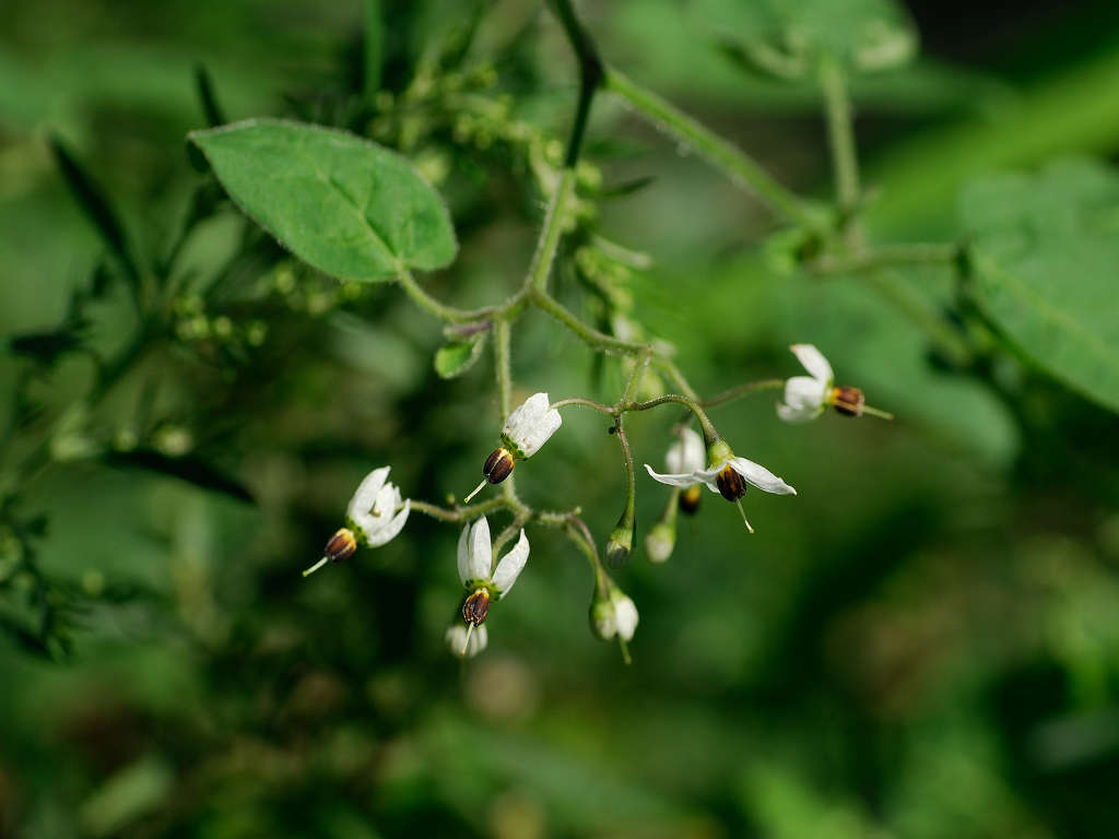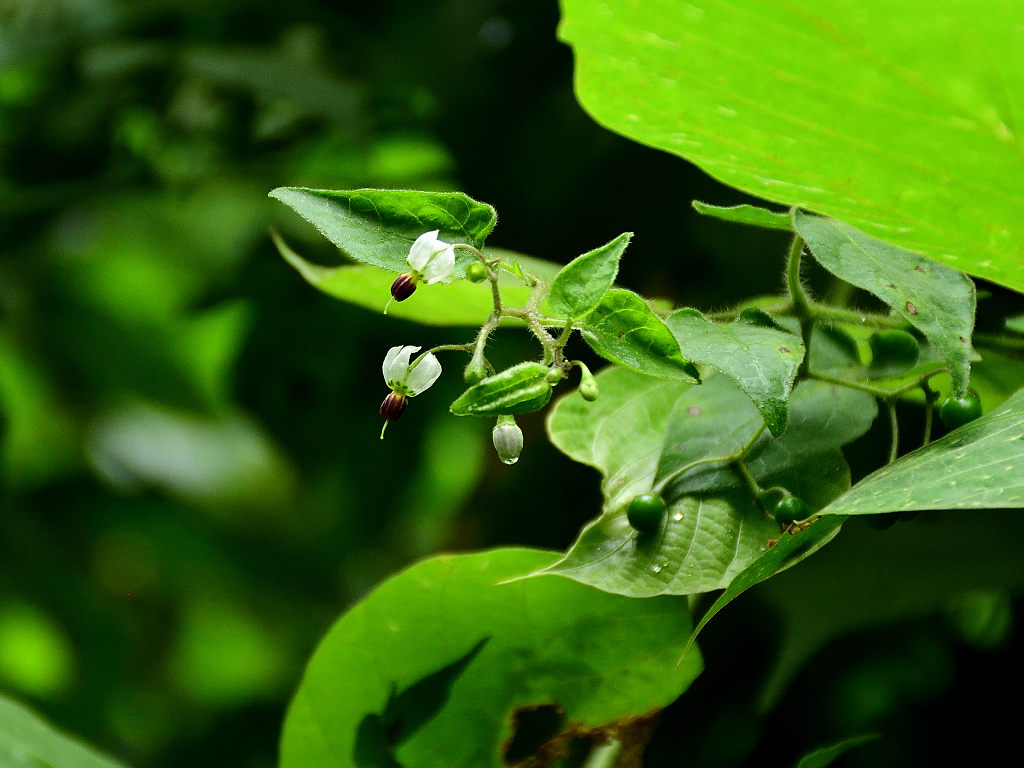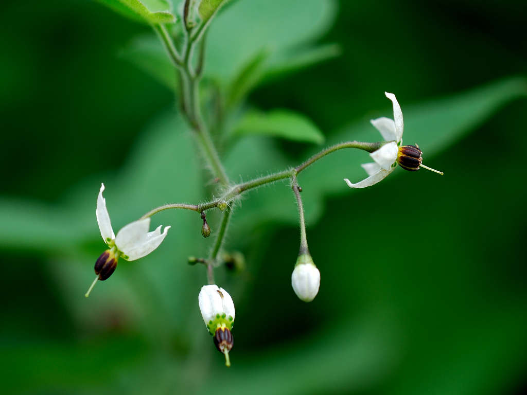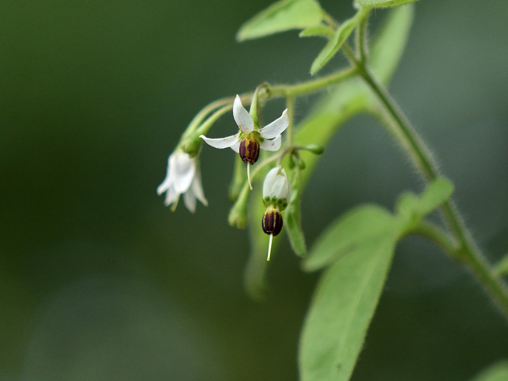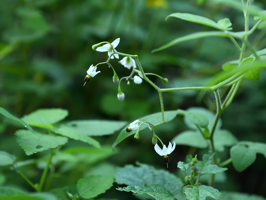 茎は蔓状 枝の先で花柄を分岐して花を咲かす 白い花は深く5裂 強く反転する