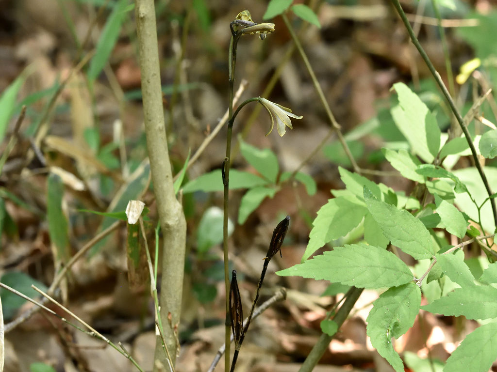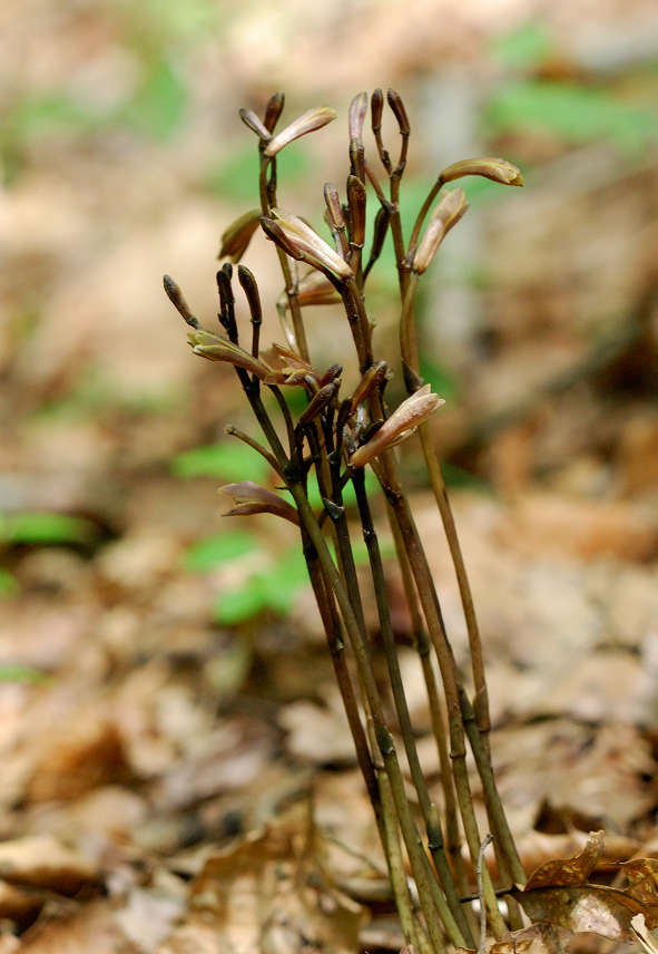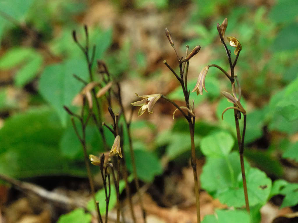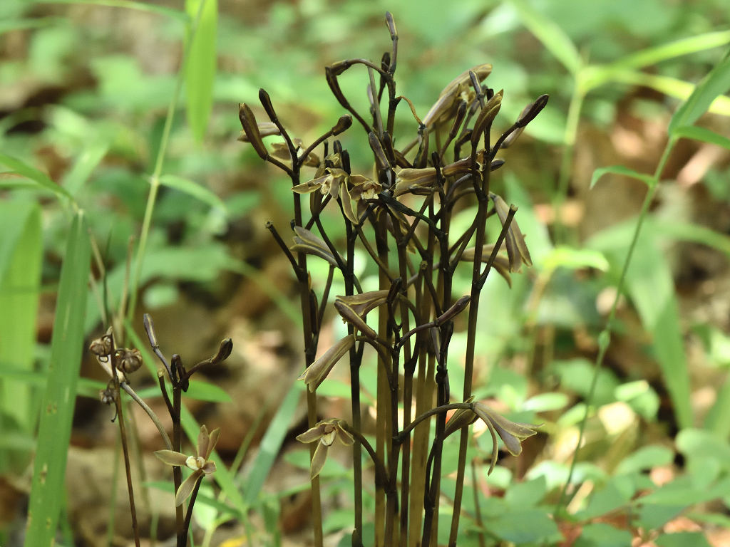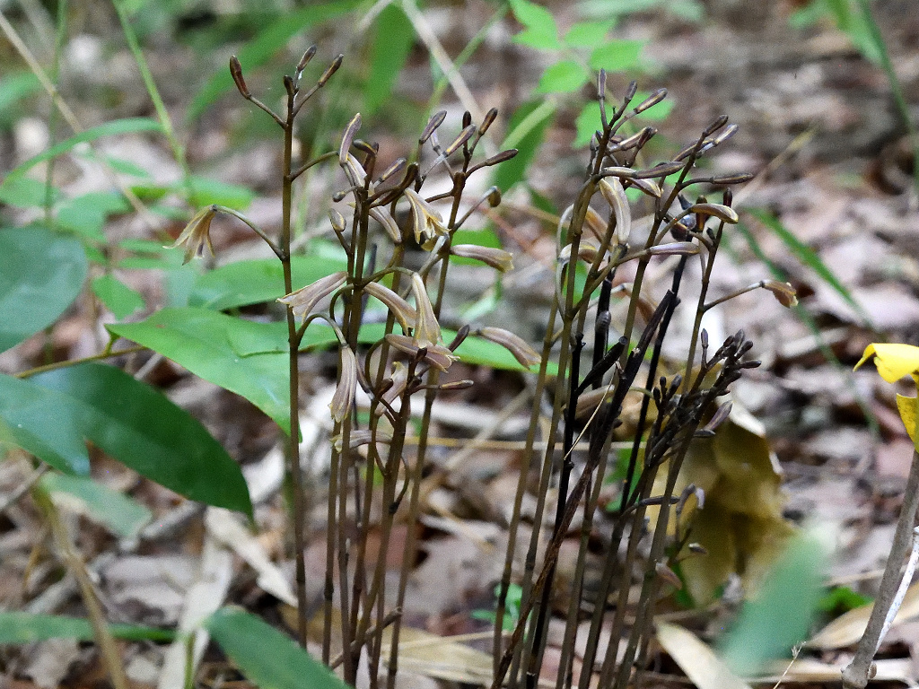 名前のごとく、葉の付かないラン 葉がないため、光合成が出来なく腐った落葉が栄養分となる