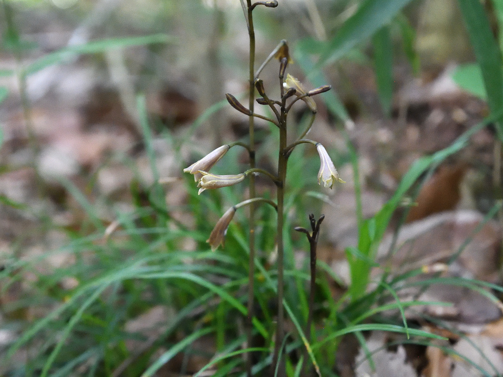 全体的に 薄い褐色のような色合 花はやや下向きで、余り開かづ、わずかに半開した状態で終わることが多い