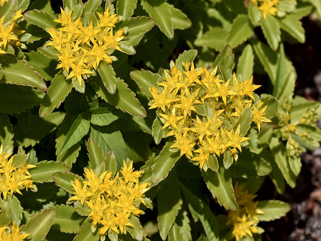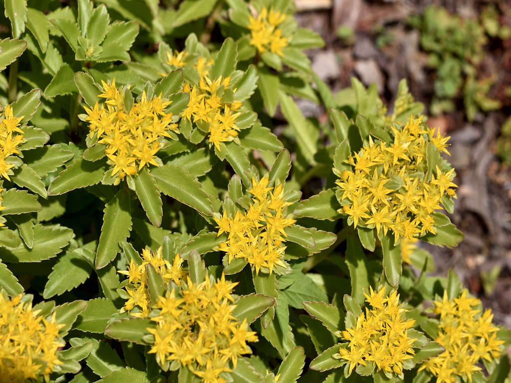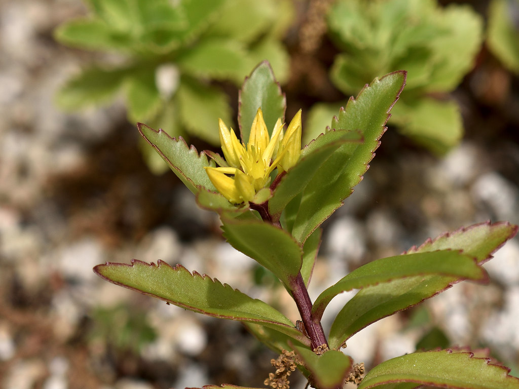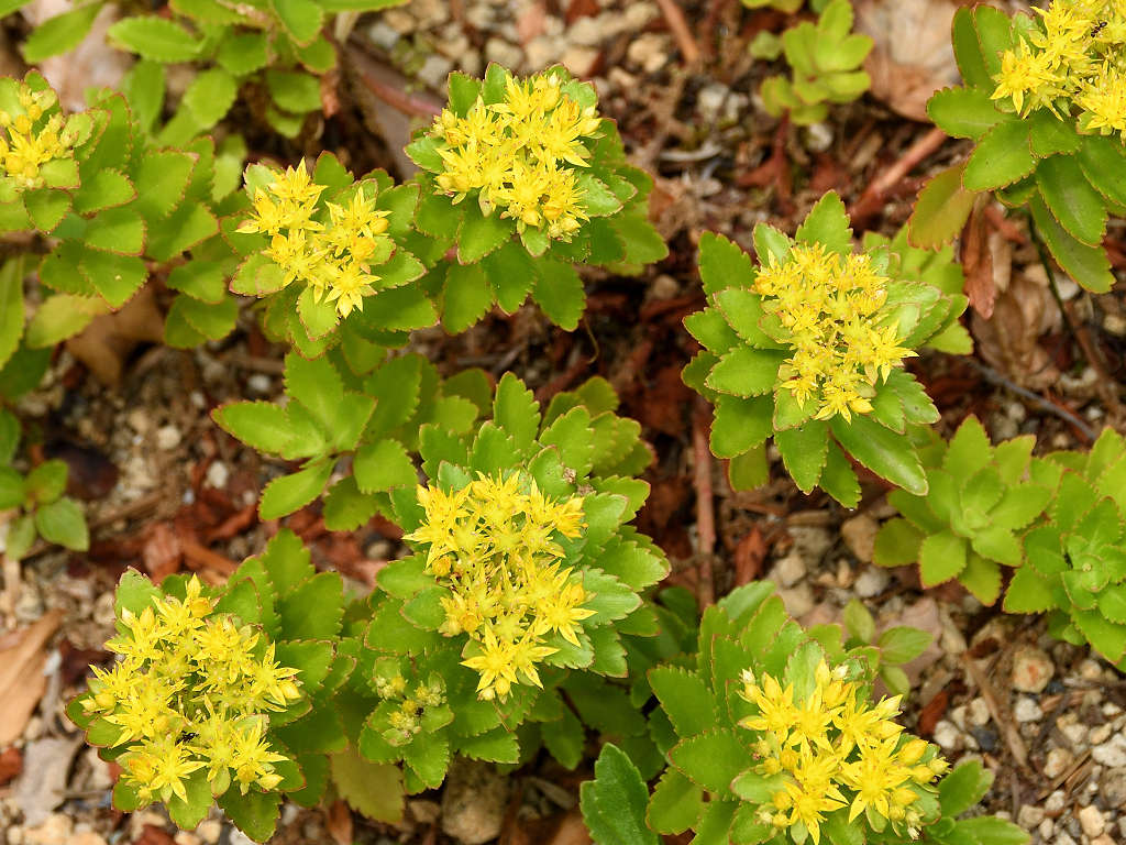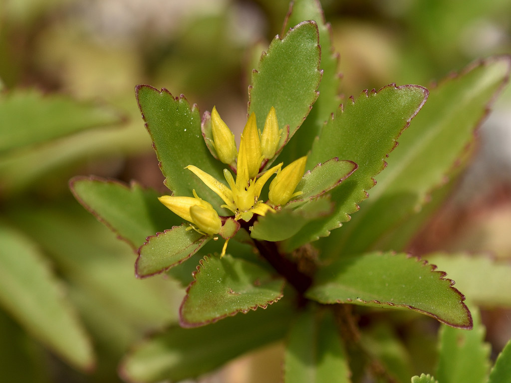 キリンソウの基本種 ホソバキリンソウでは、葉の2/3ぐらいまで鋸歯がある キリンソウは、葉先の半分だけに鋸歯がある 和名のキリンソウは、一説に麒麟草の意味