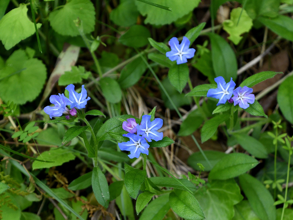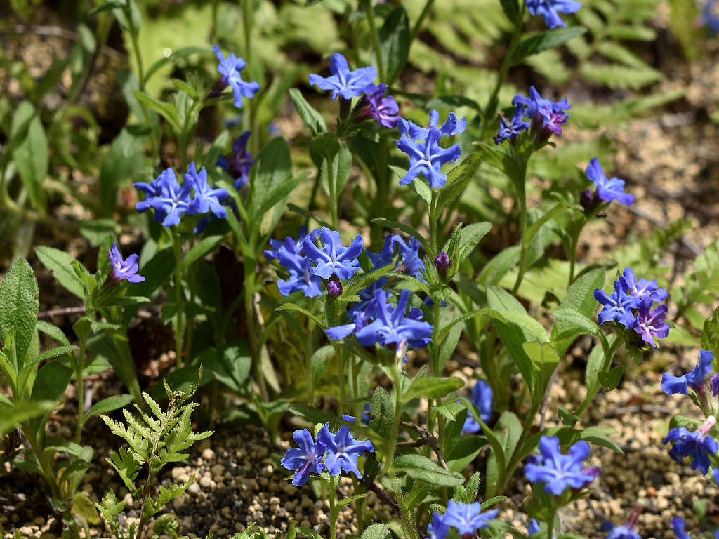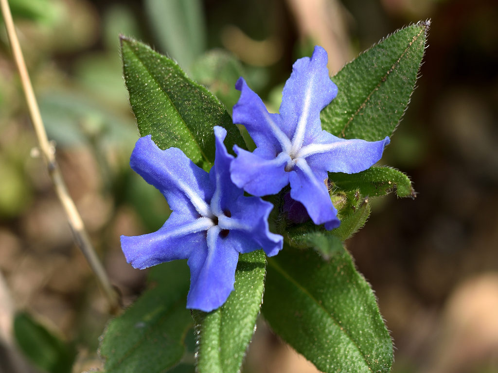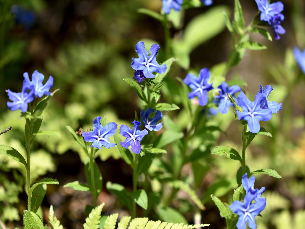 5つに広がった青色の花 基幹部はつながり「アサガオ」と同じ形 花の中央に「大」の字の白い筋が入る