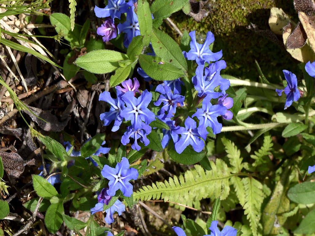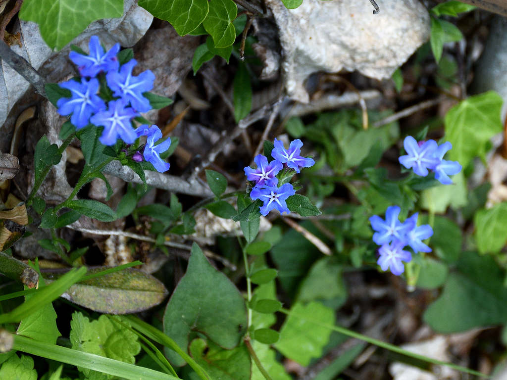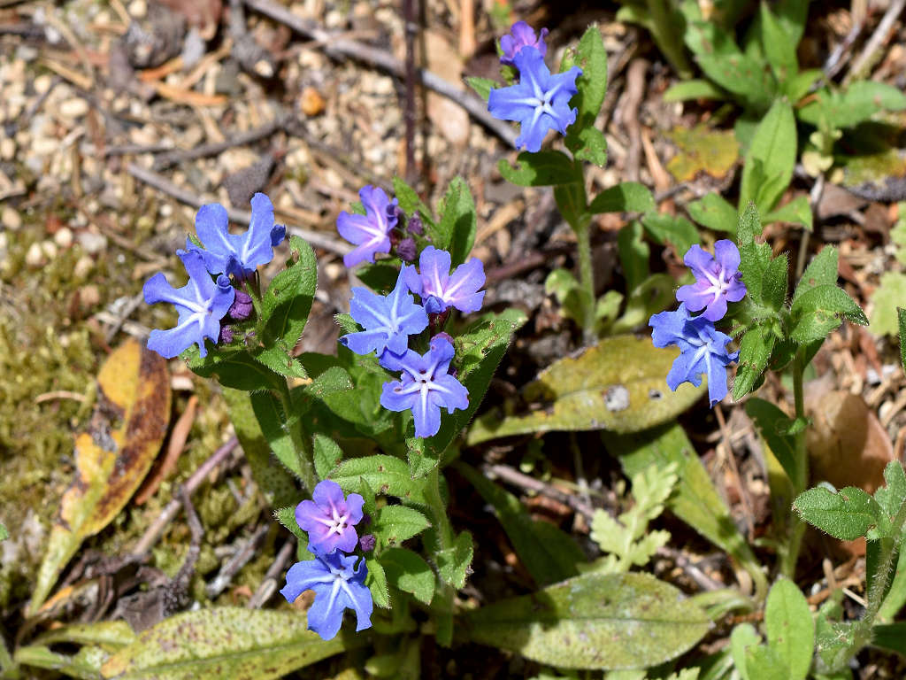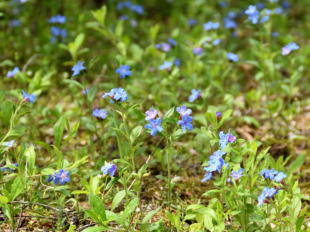 5つに広がった青色の花 基幹部はつながり「アサガオ」と同じ形 花の中央に「大」の字の白い筋が入る
