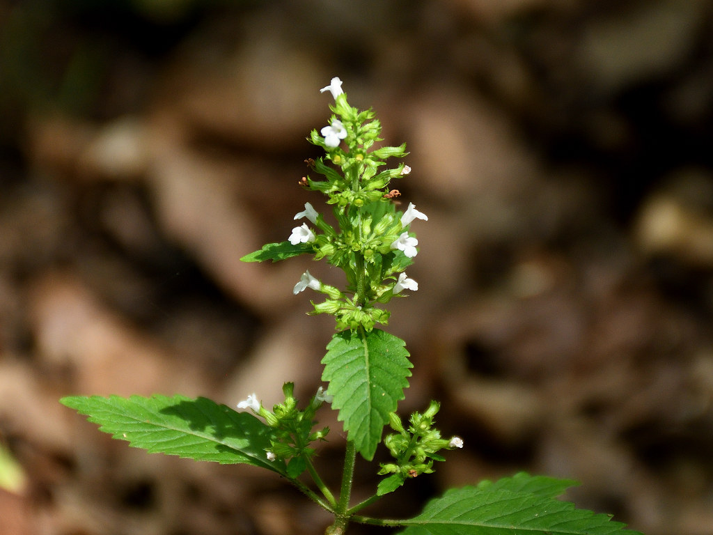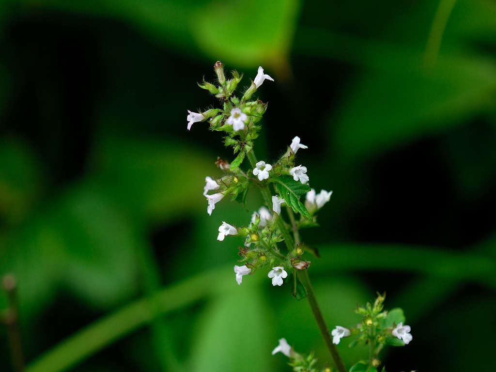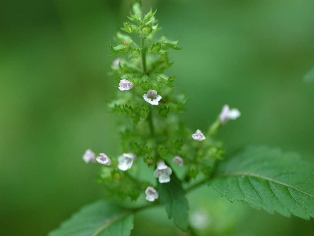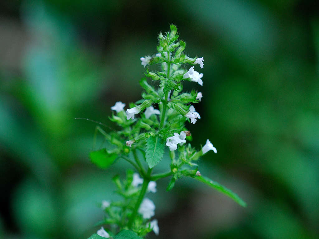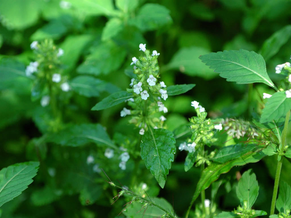 草丈20-60センチ 円筒状の塔型に花穂を立て、5mmほどの小さな淡紅紫色の唇形花を輪生状に多くつけます。