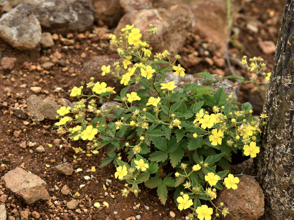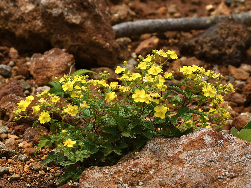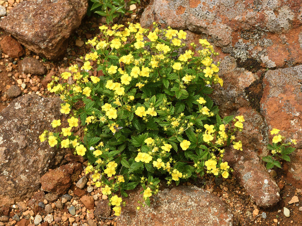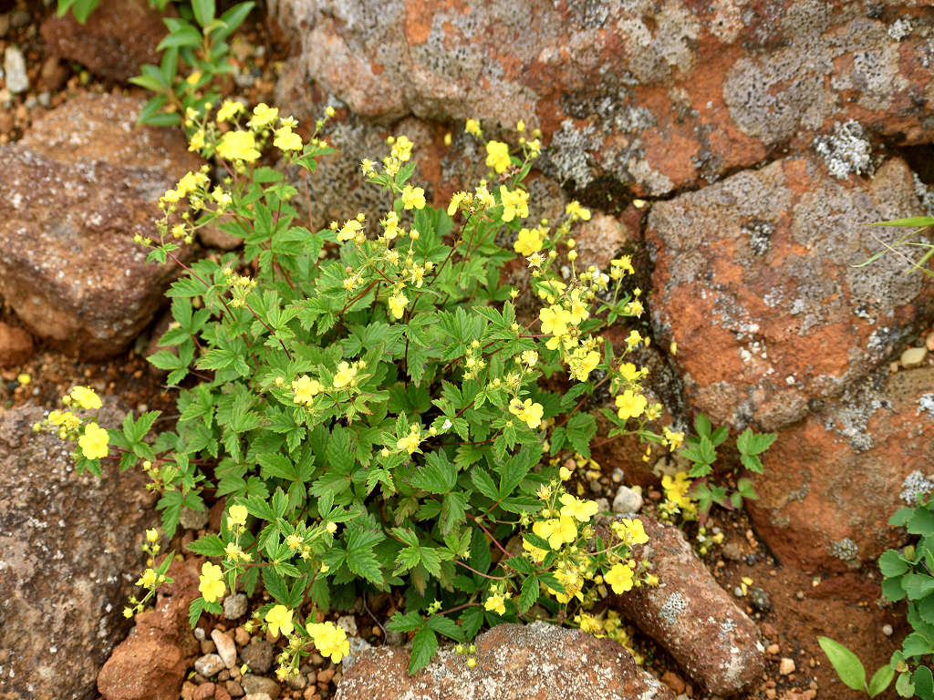 岩場に生育し、花が梅の花に似て黄色いことから「イワキンバイ