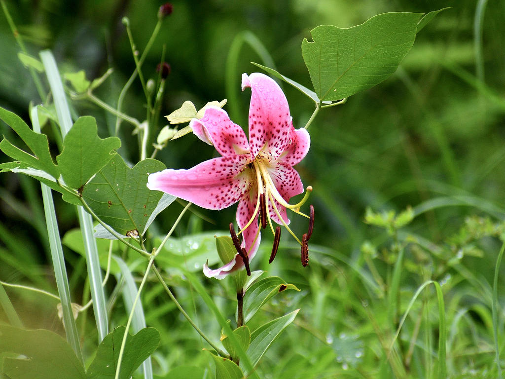 花びらに「鹿の子絞り」に似た赤色の斑点や小さな突起があるため