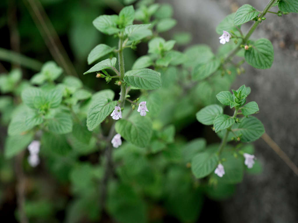 葉はミントの香りがする 花径5ミリくらいの白や淡い紫色をした小さな花をつける