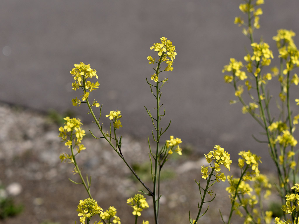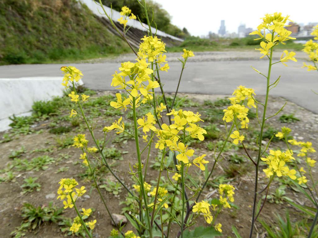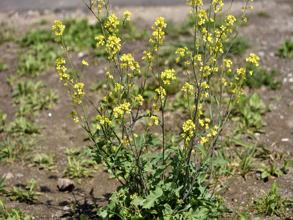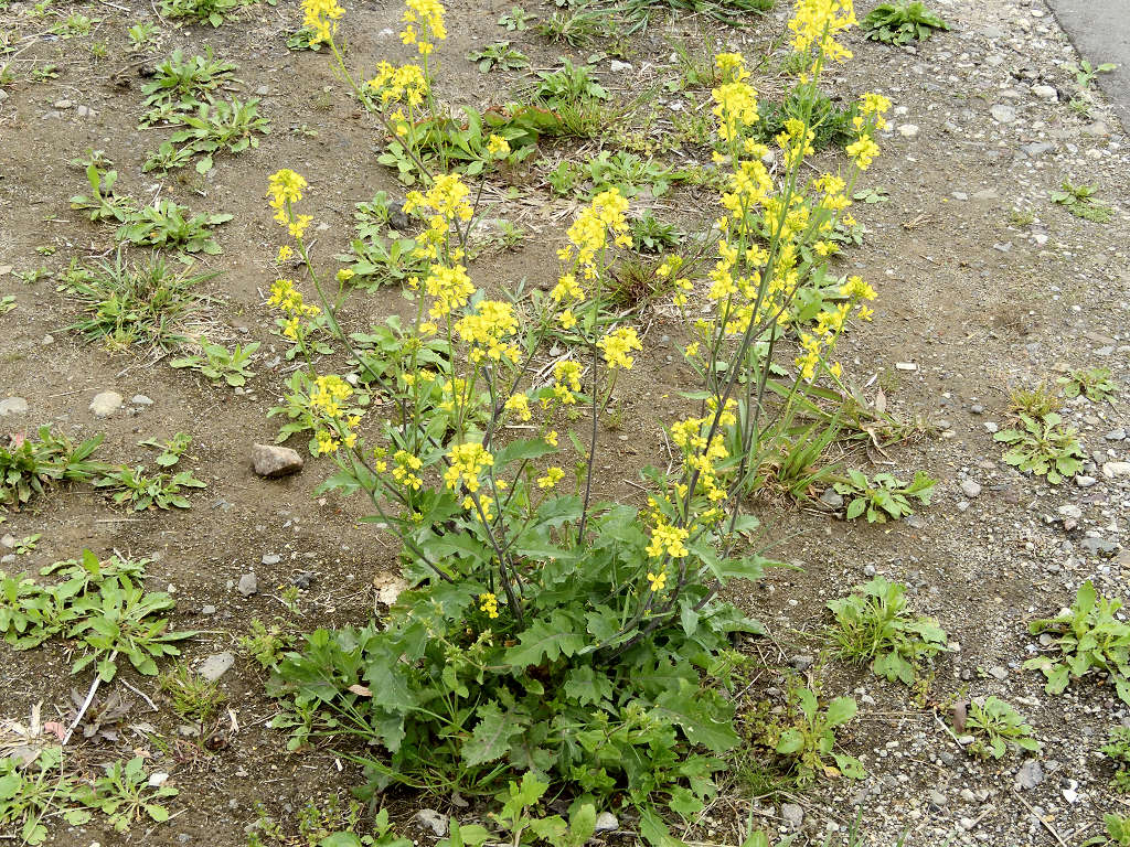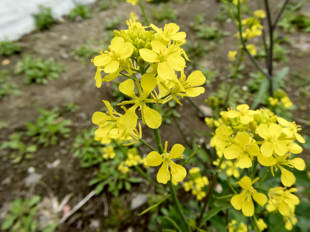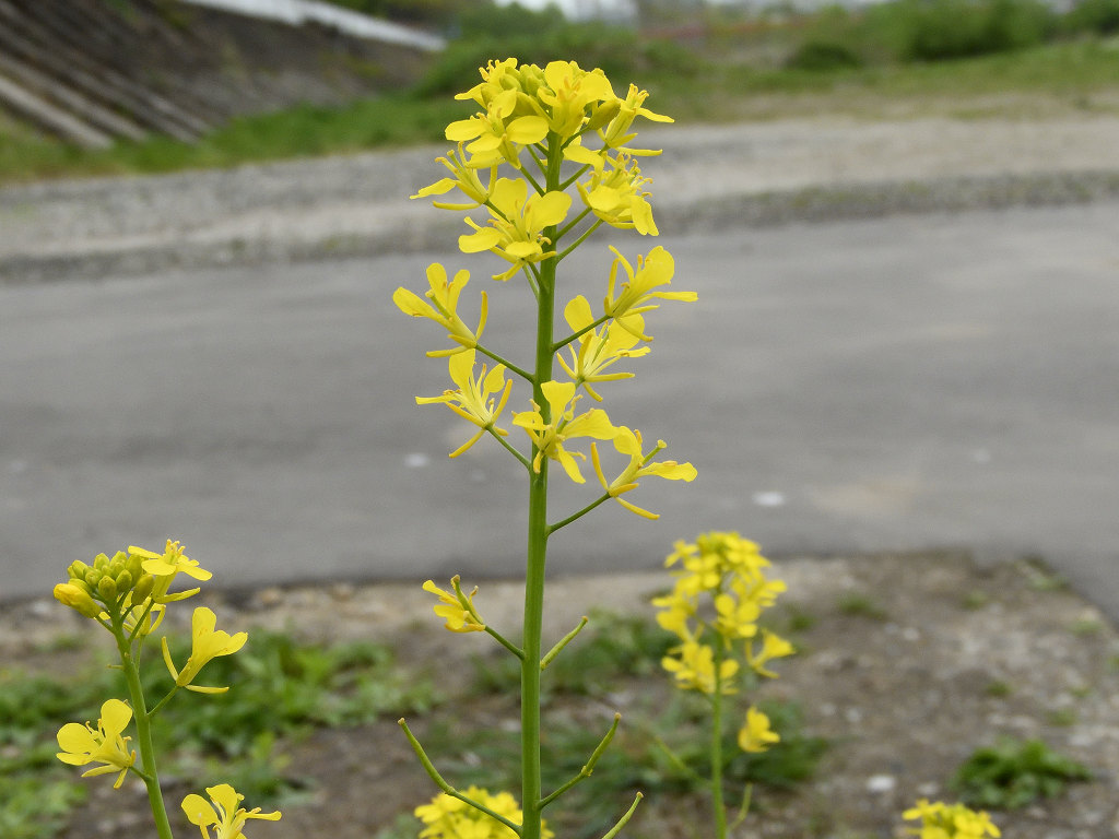 花は黄色の十字形 萼片は開花時には斜め上に向けて立つ