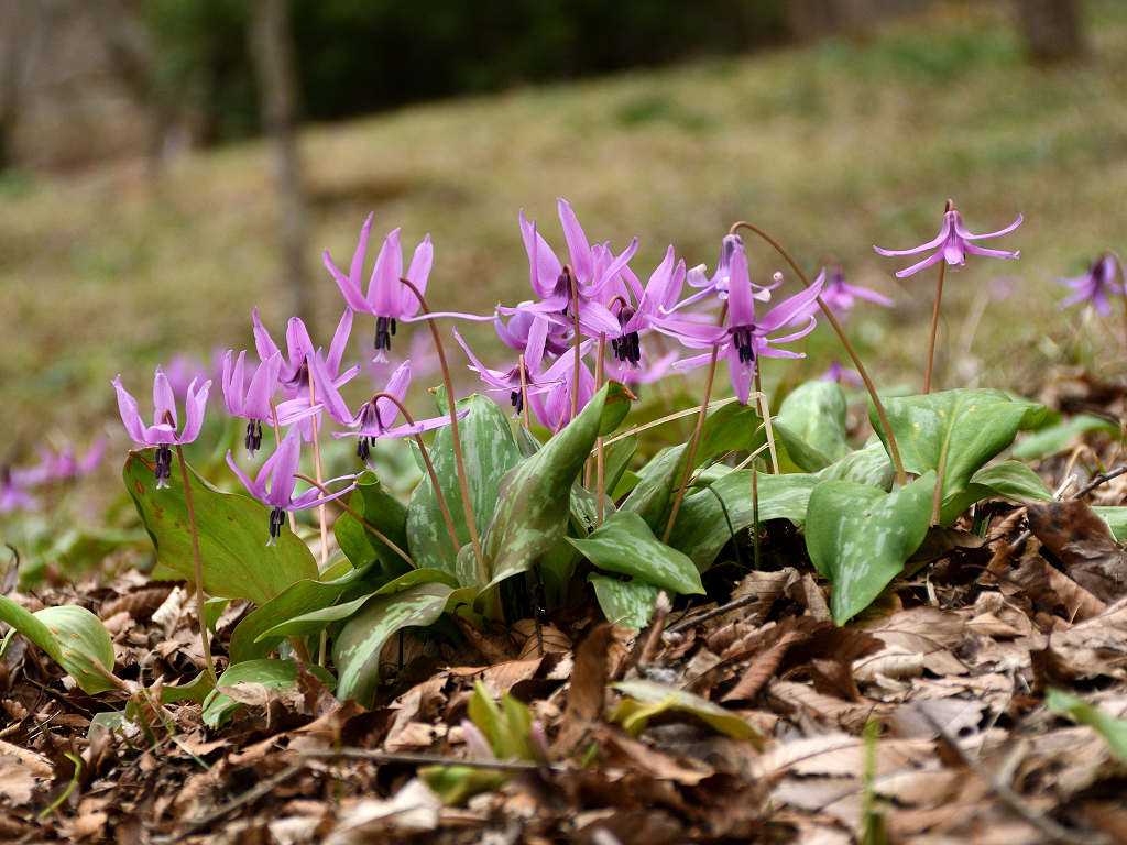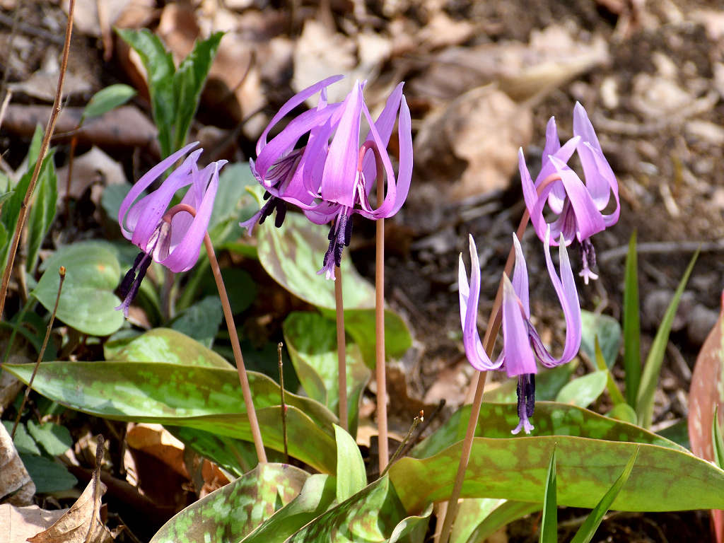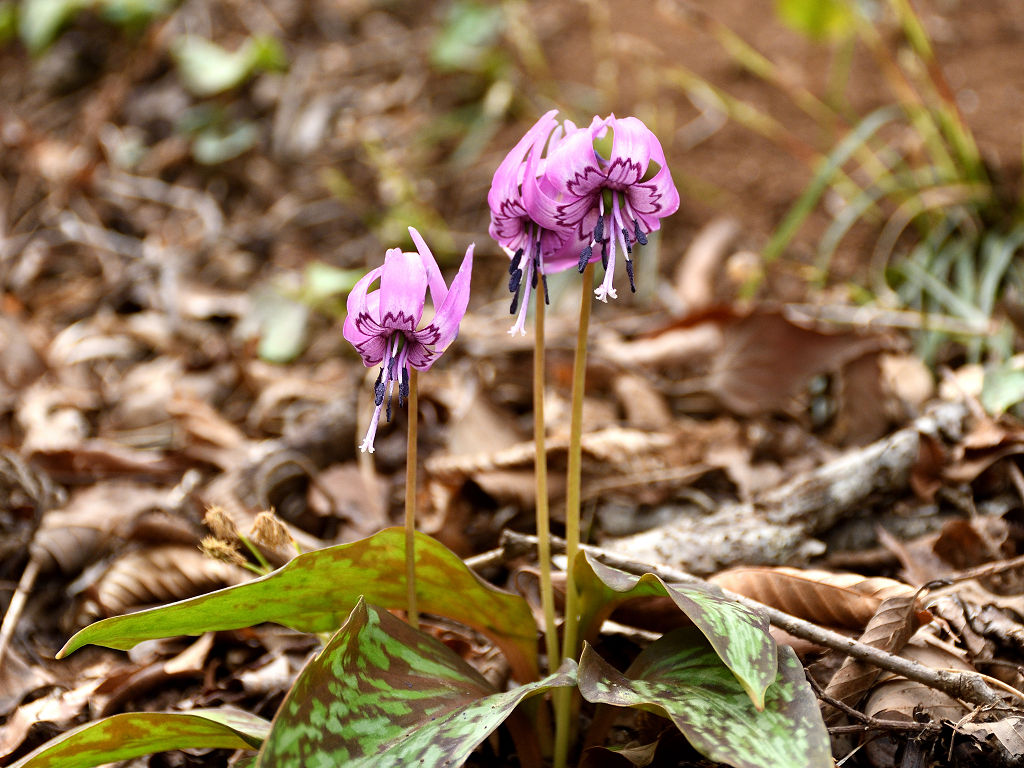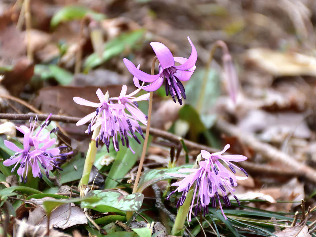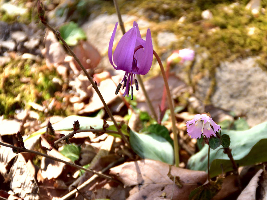 淡紅紫色の花が下向きに咲く 花が開くと花弁のが反転する(日が当たっている時) 早春の代表的な野草