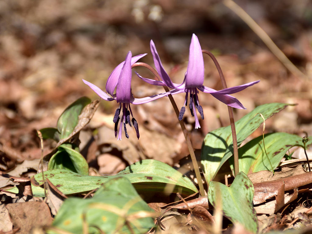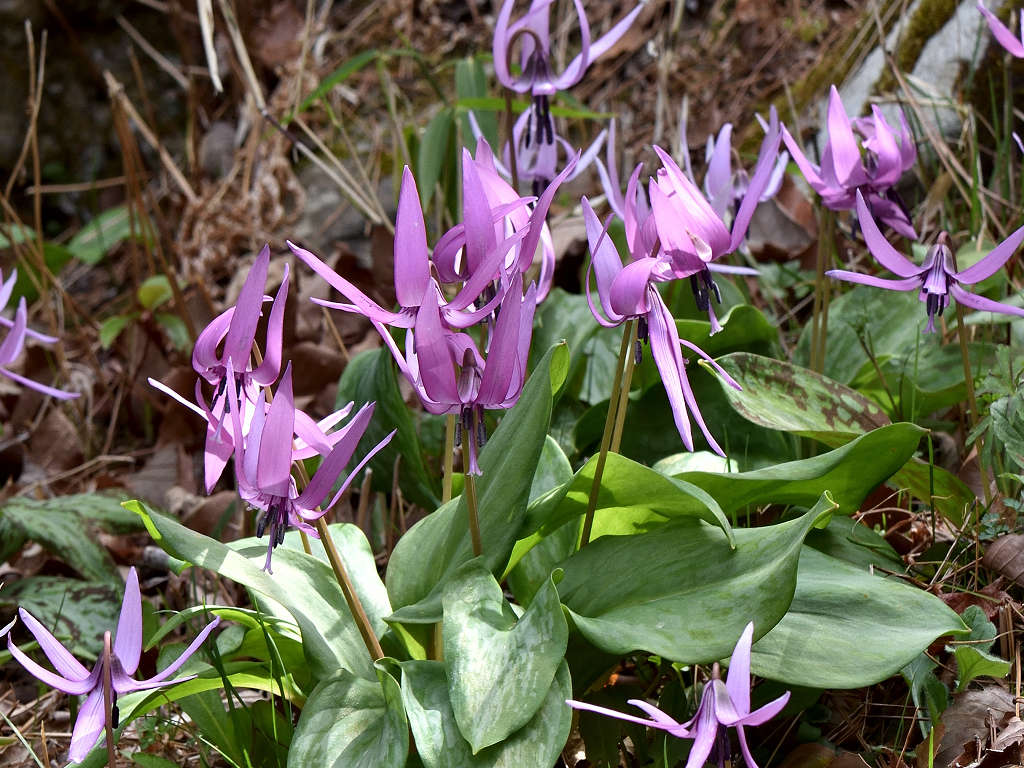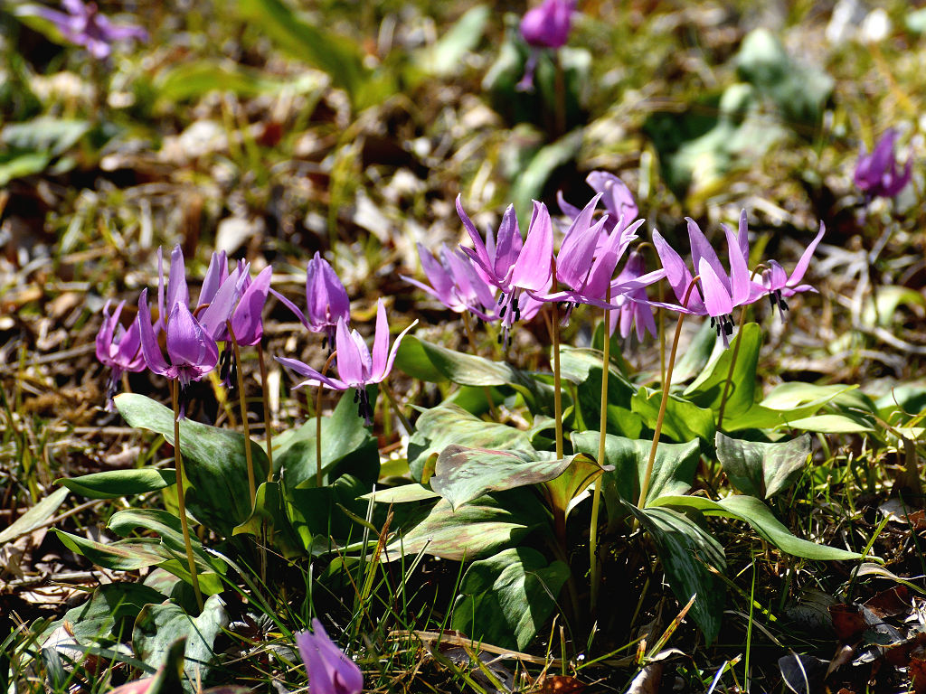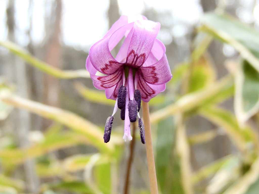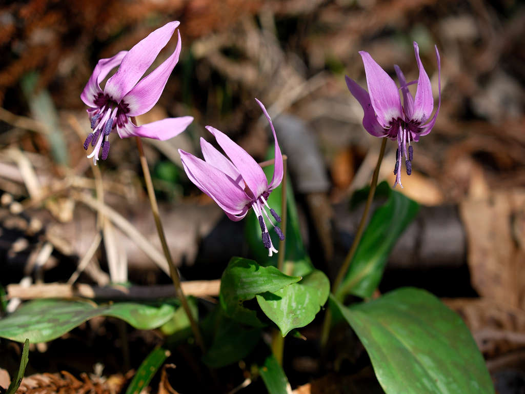 淡紅紫色の花が下向きに咲く 花が開くと花弁のが反転する(日が当たっている時) 早春の代表的な野草