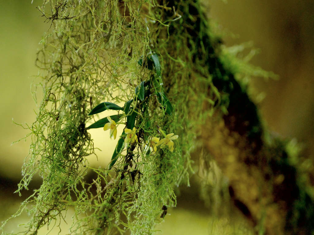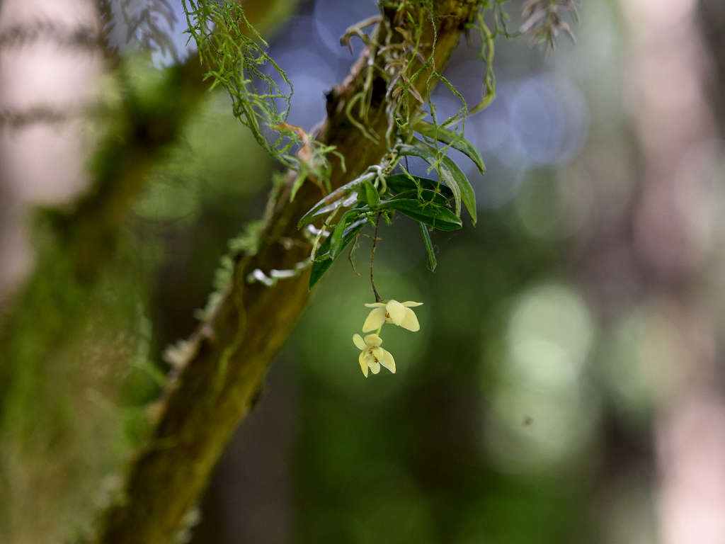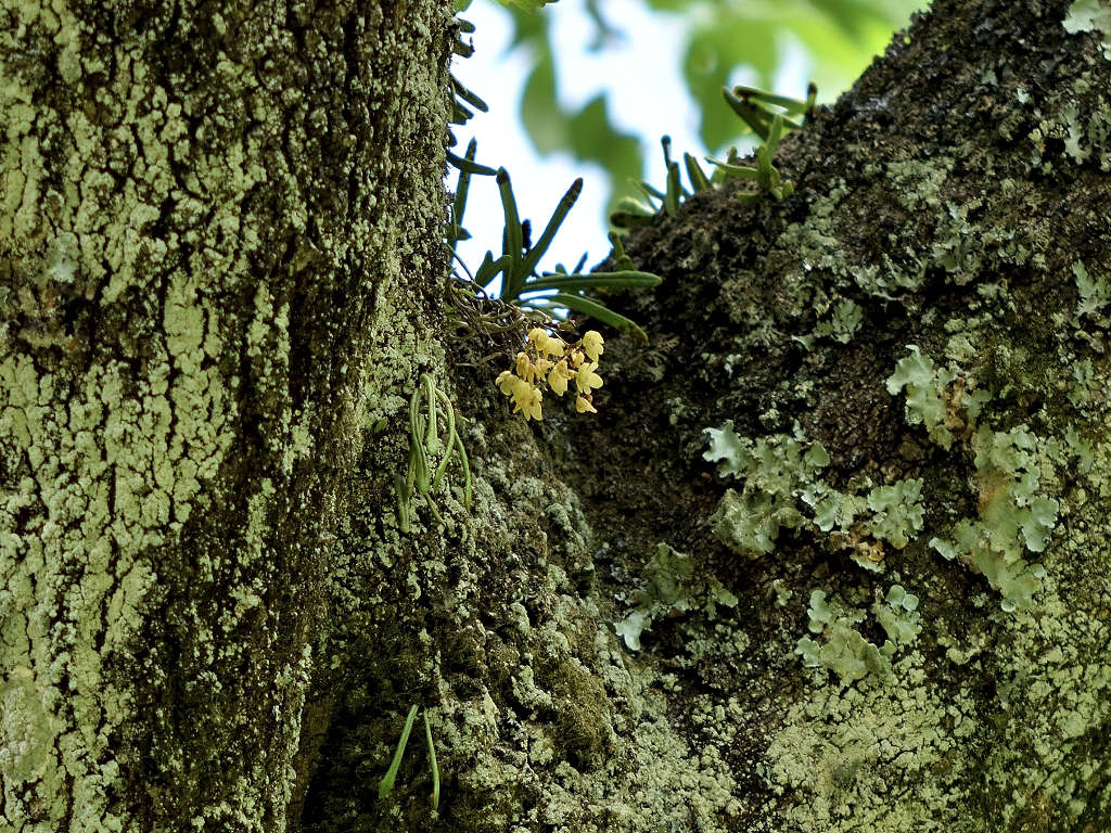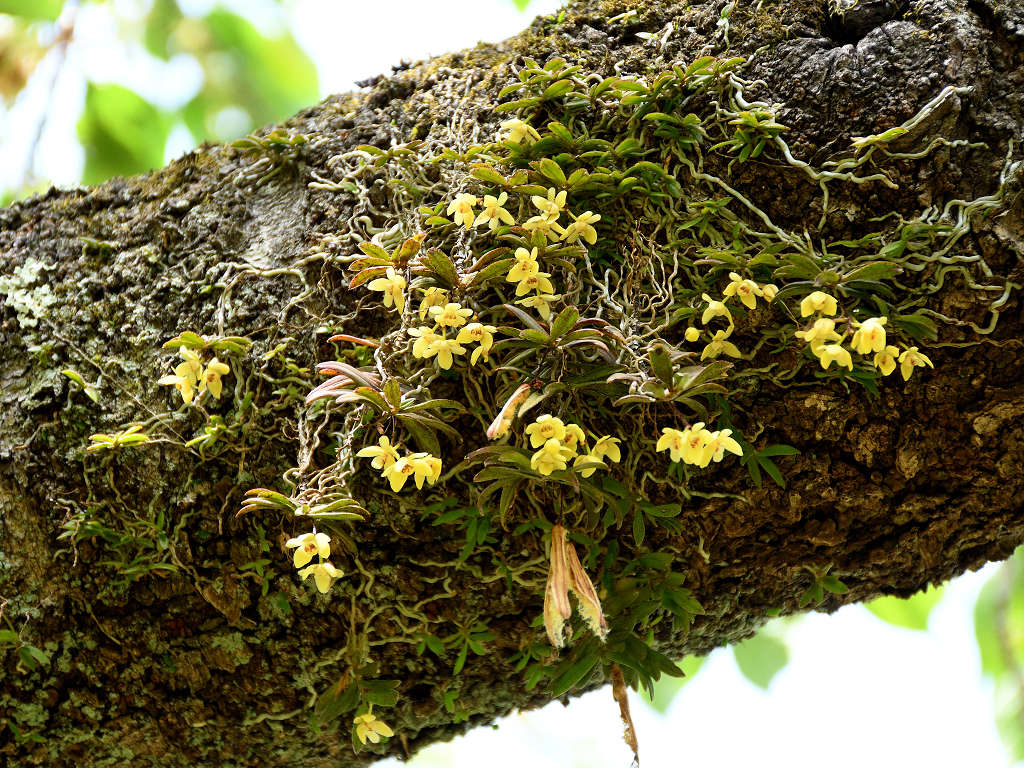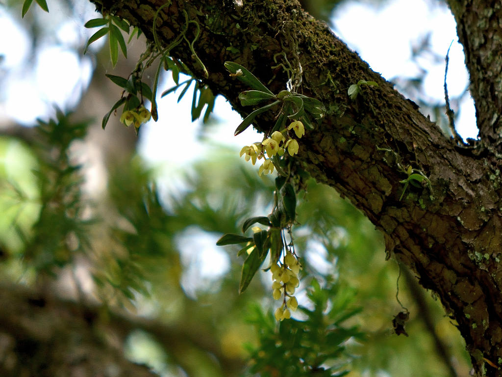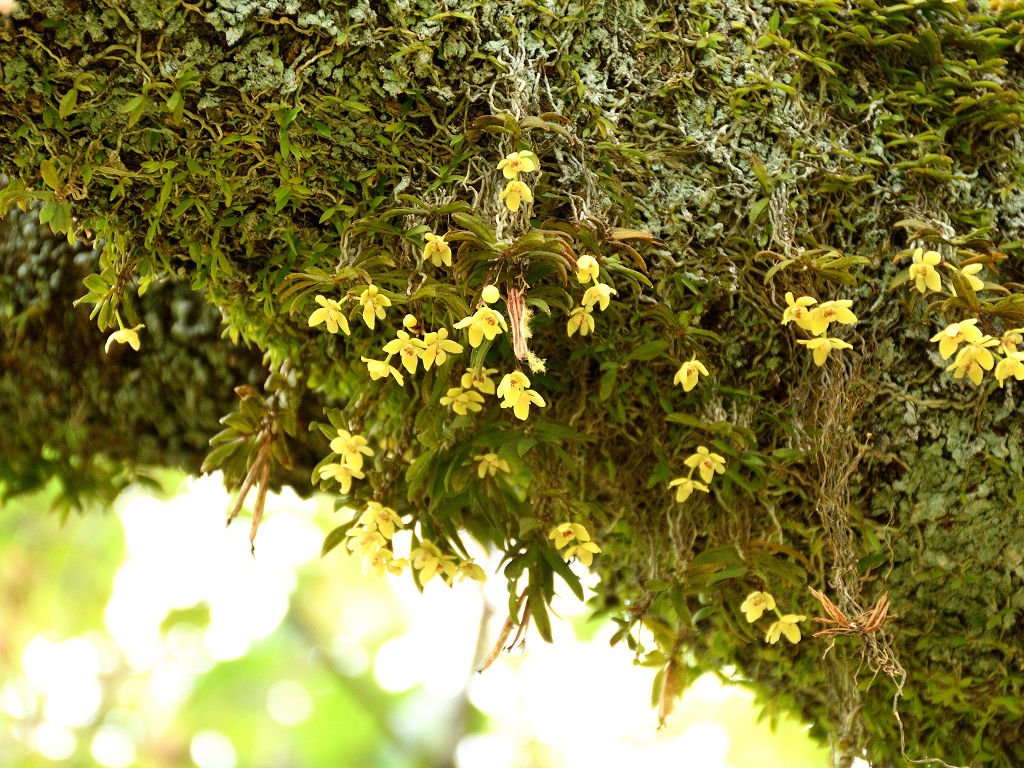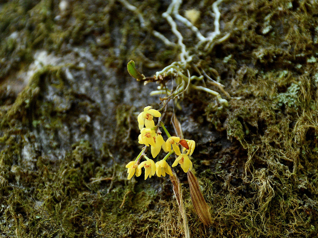 苔むしたような木の幹や、沢沿いの木に着生する
