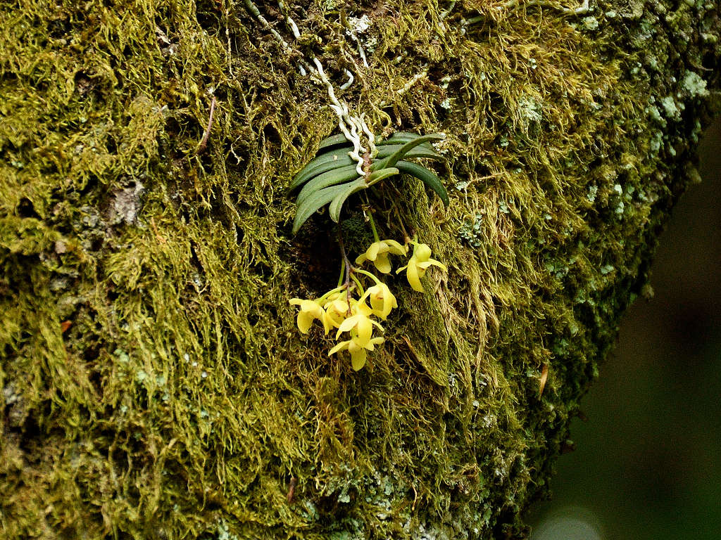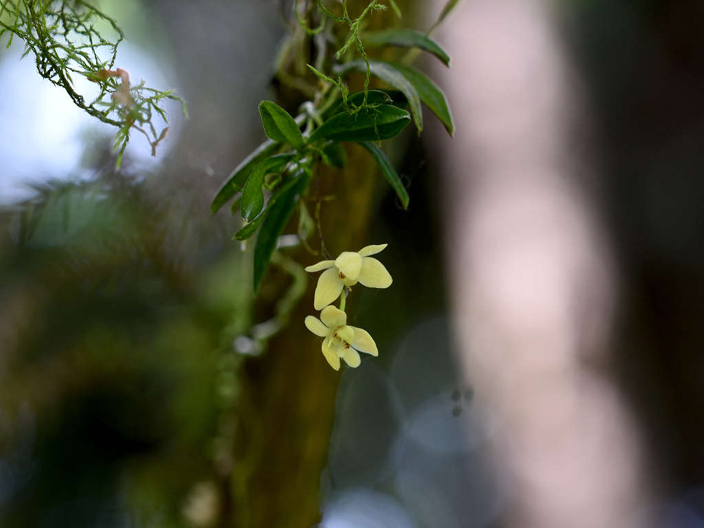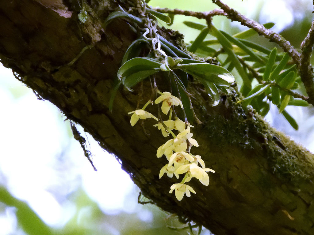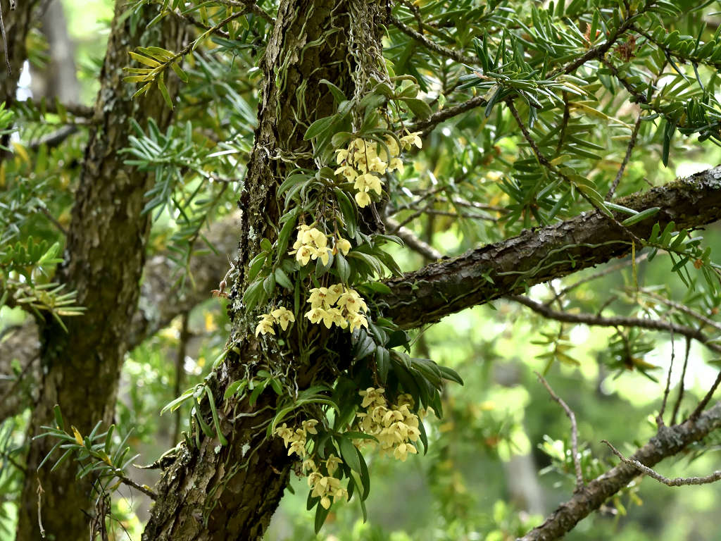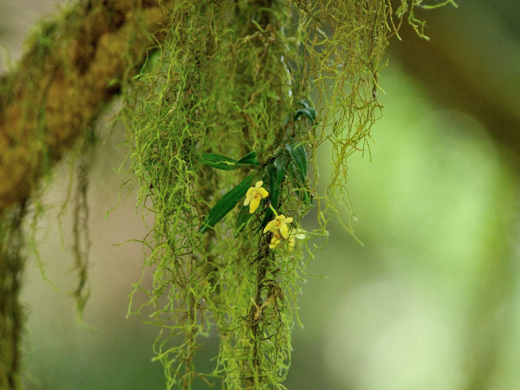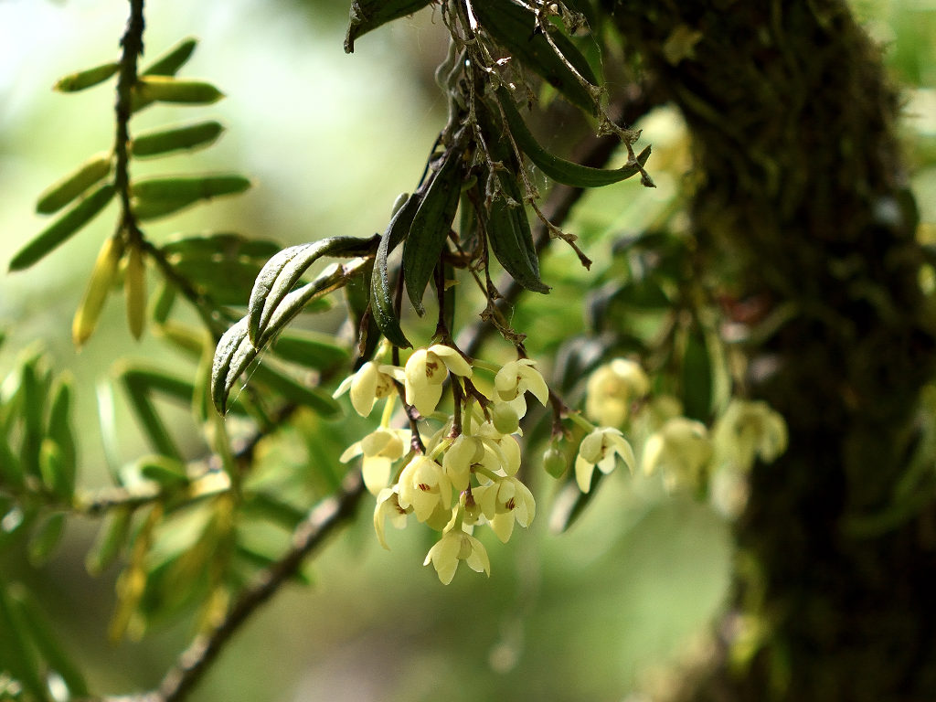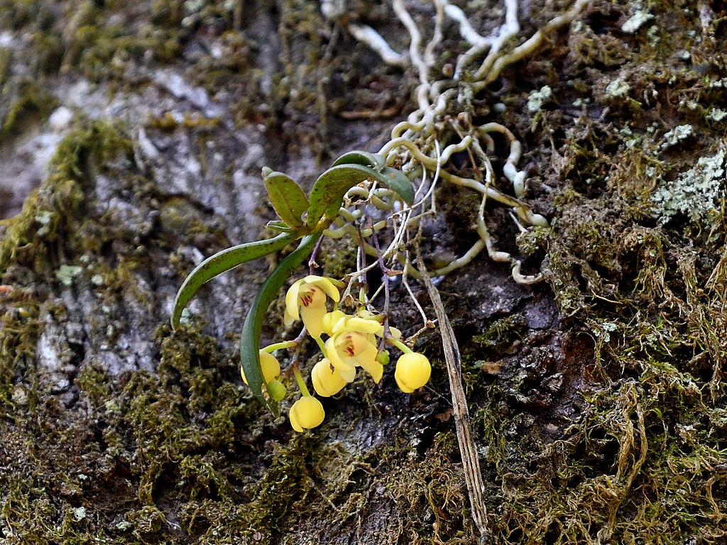 苔むしたような木の幹や、沢沿いの木に着生する