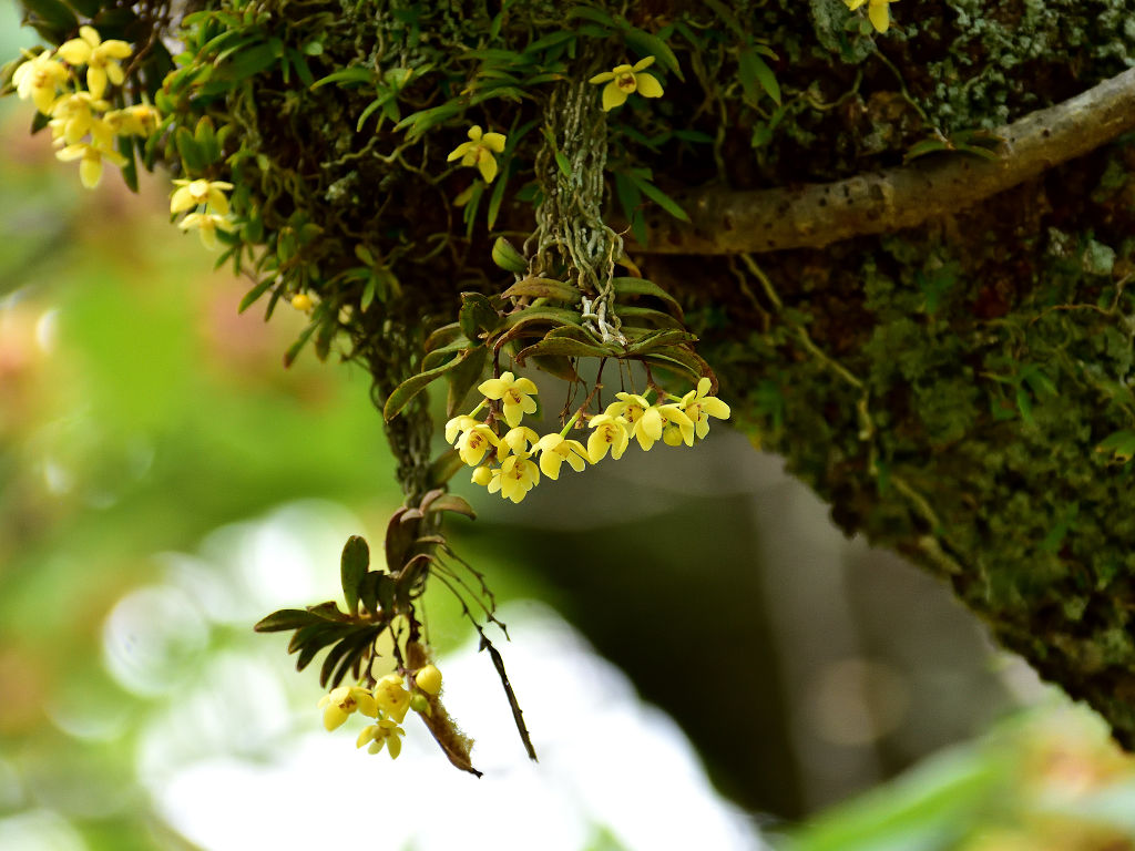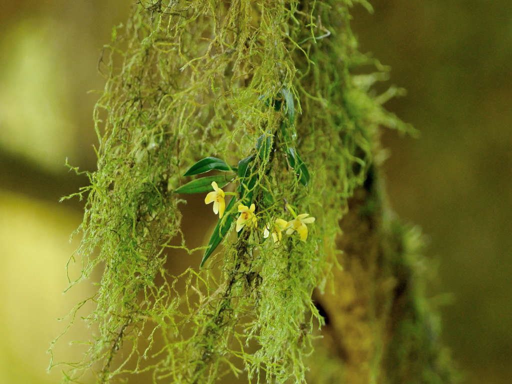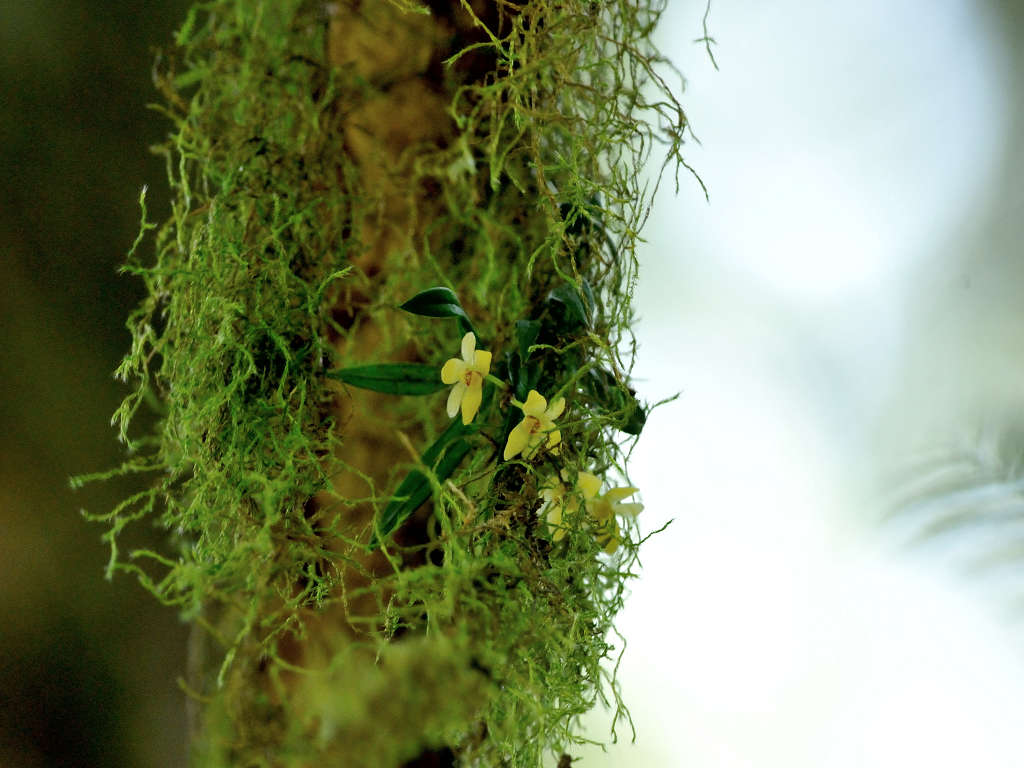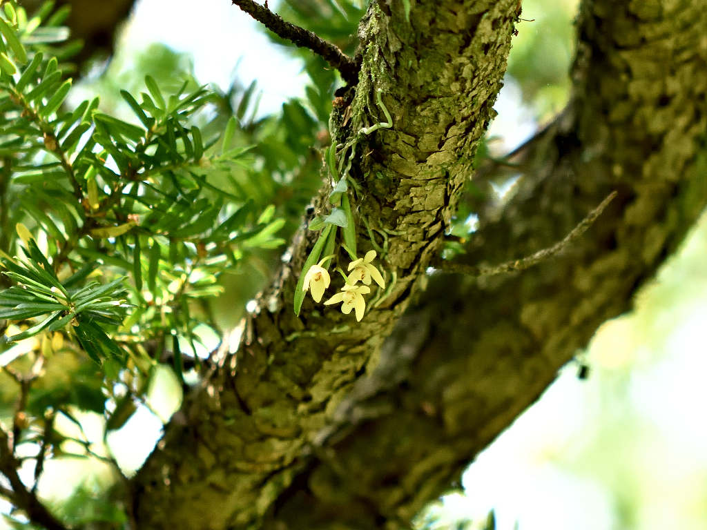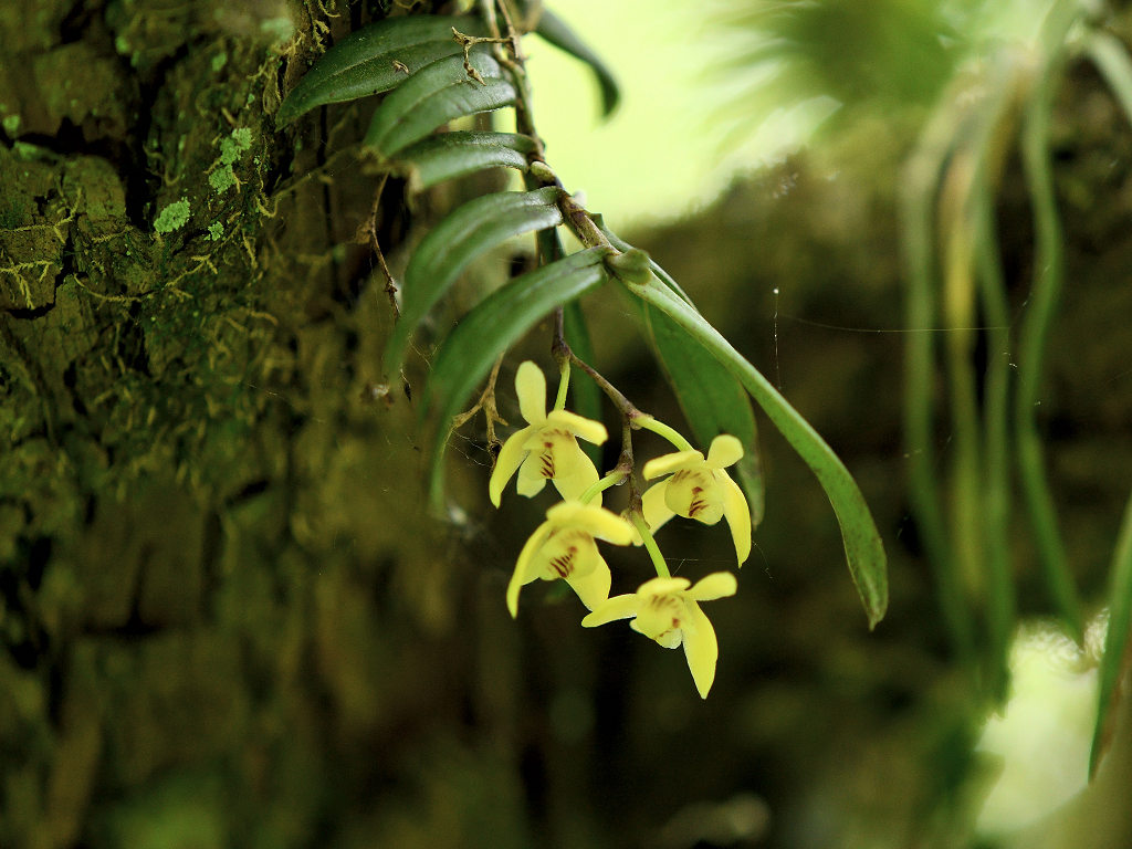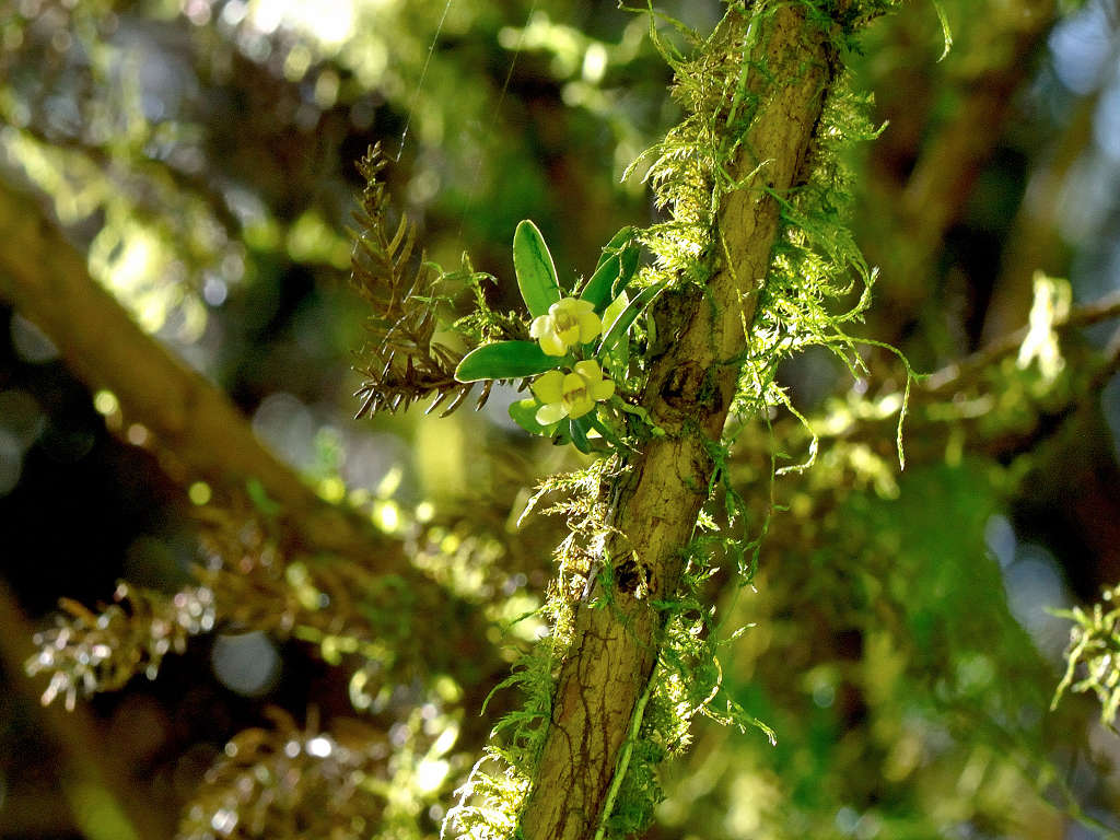 苔むしたような木の幹や、沢沿いの木に着生する