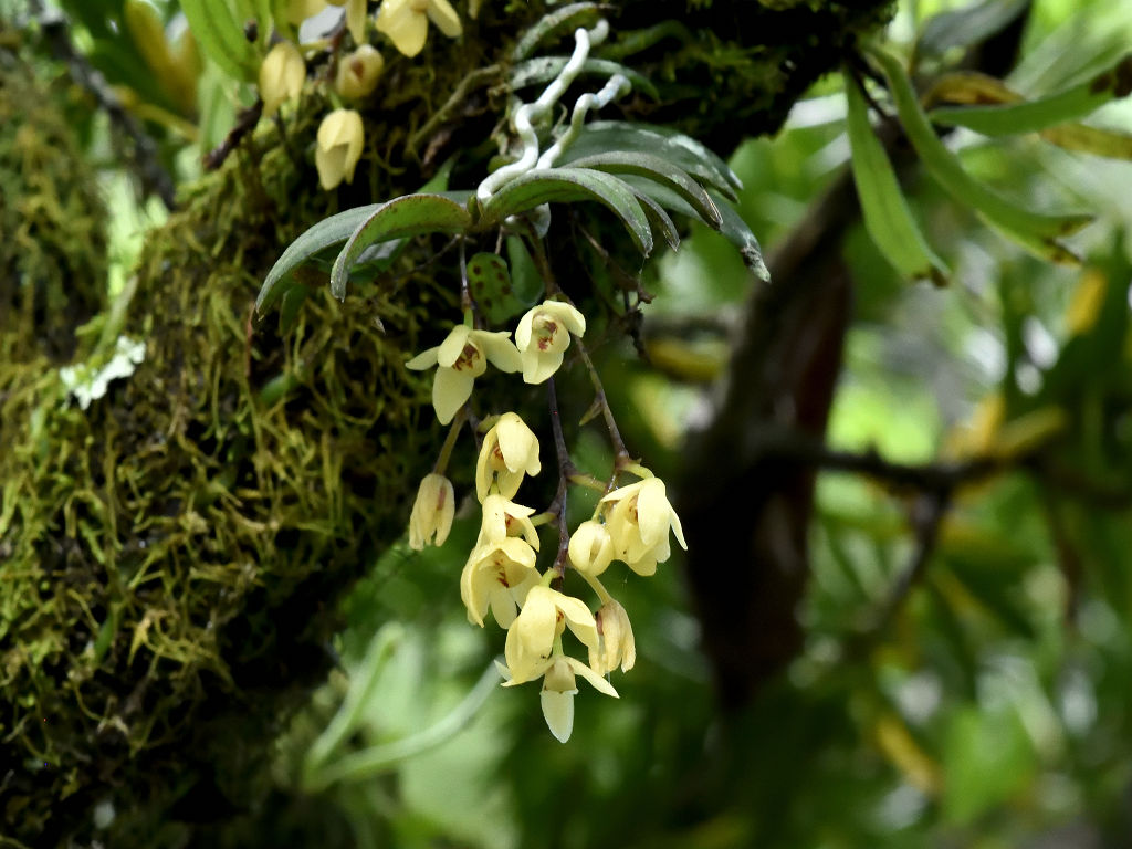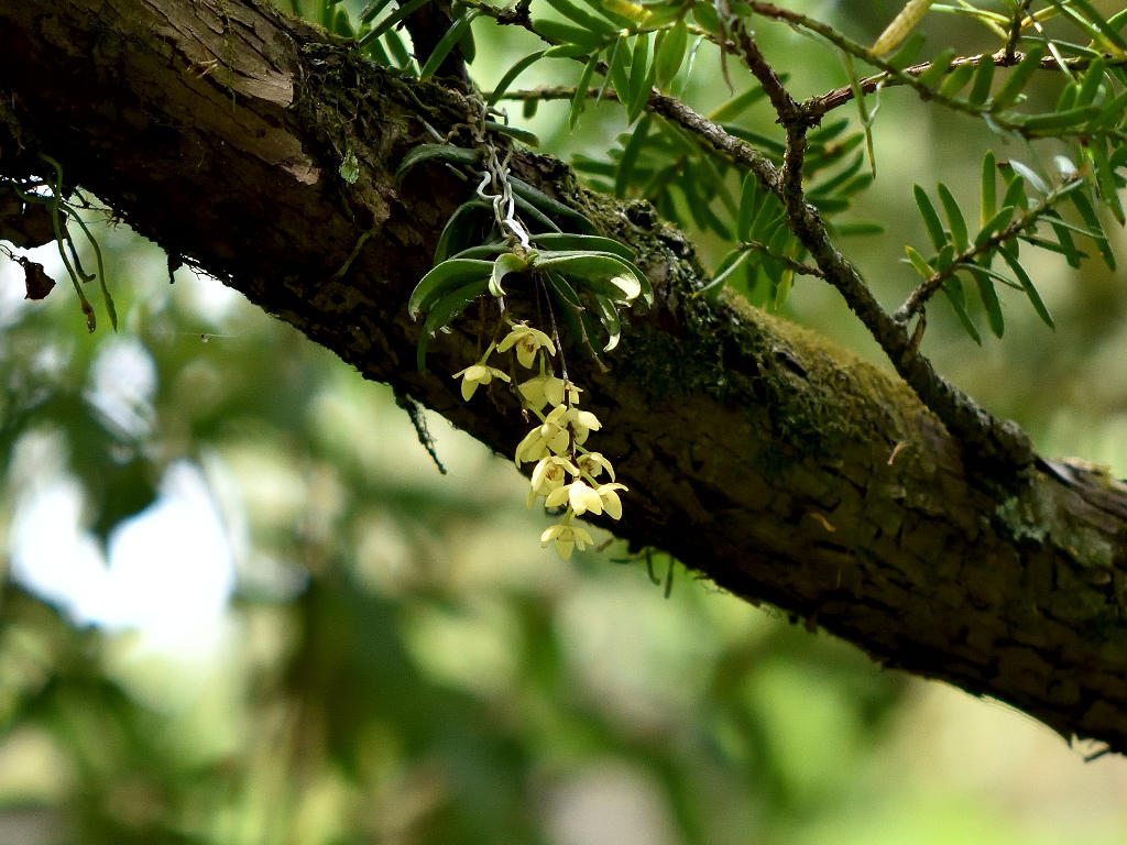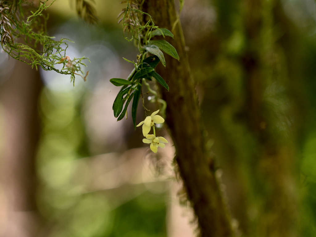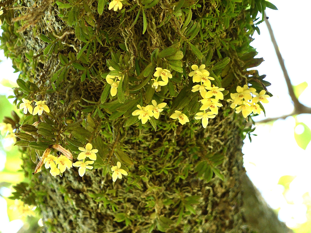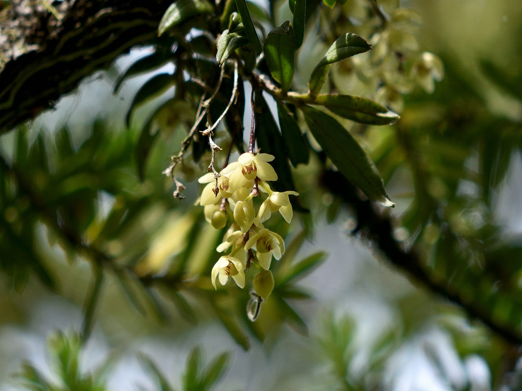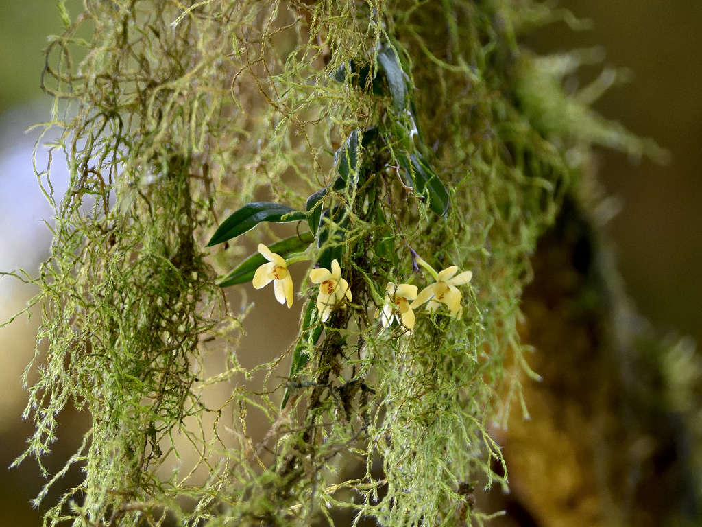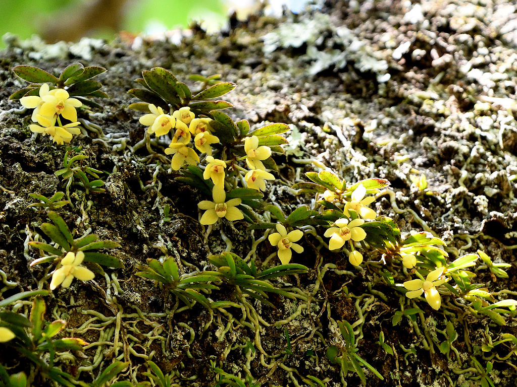 苔むしたような木の幹や、沢沿いの木に着生する