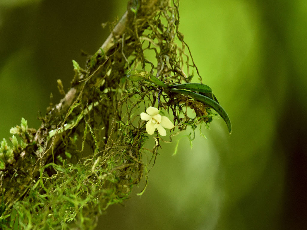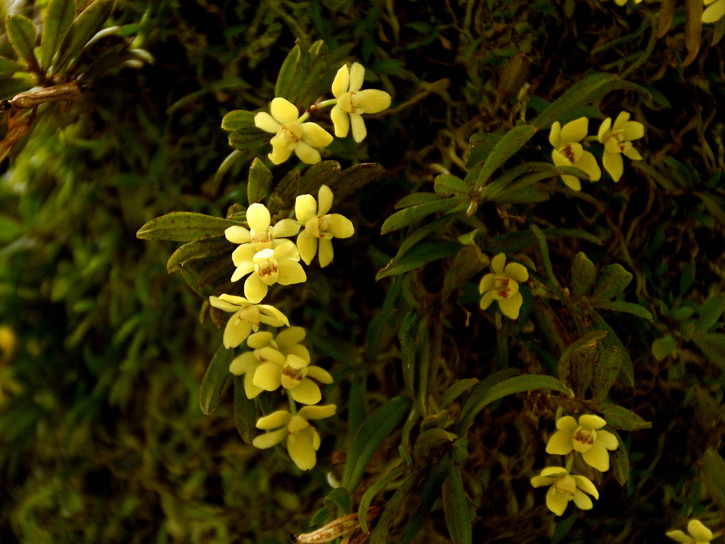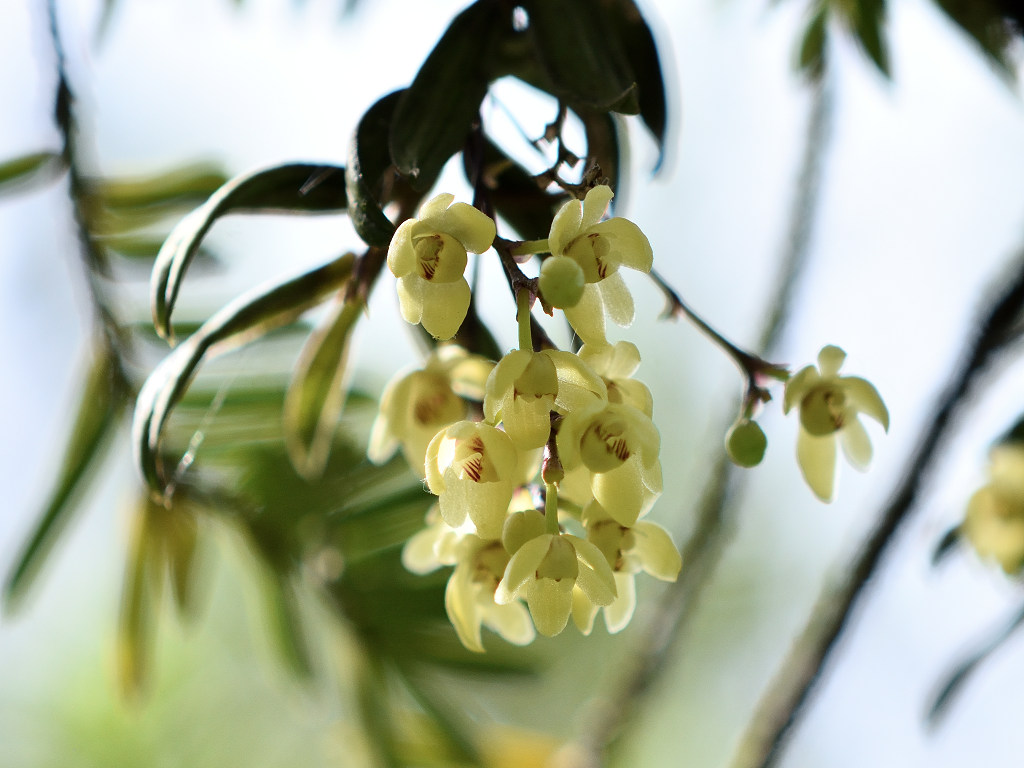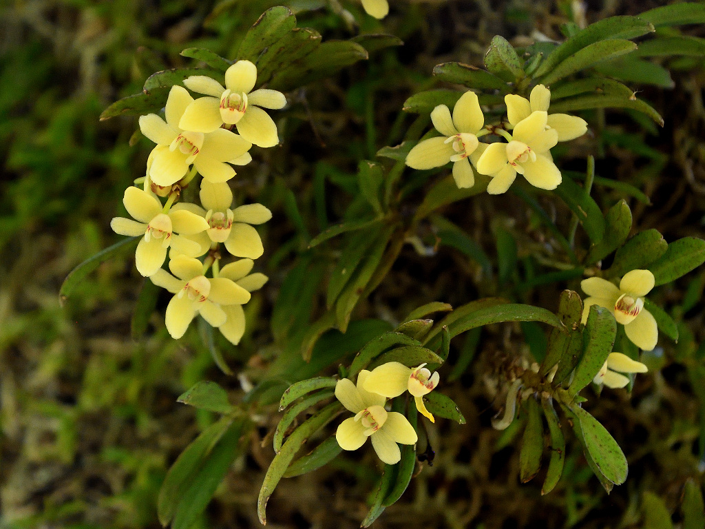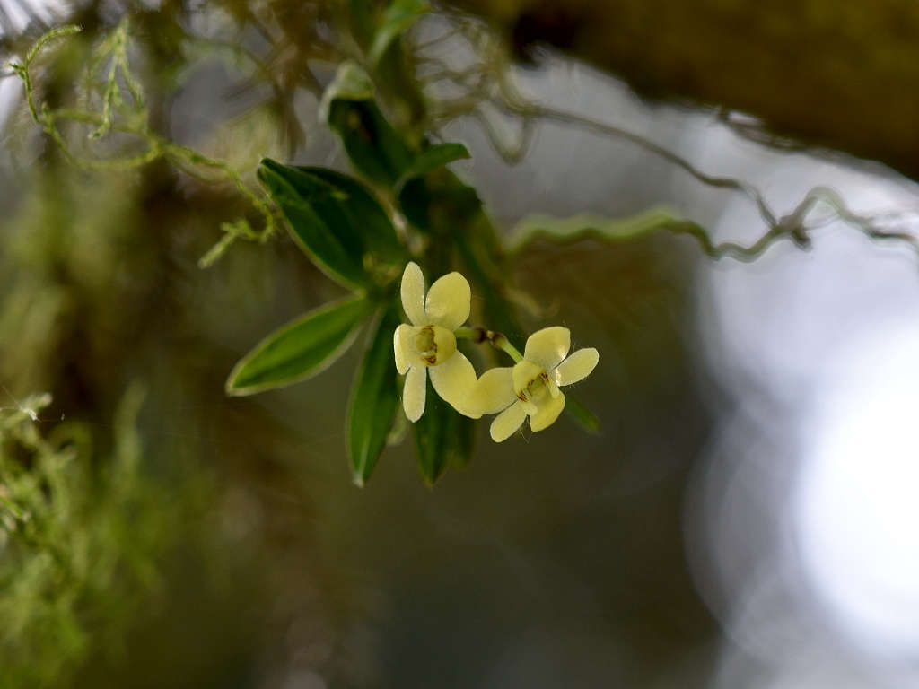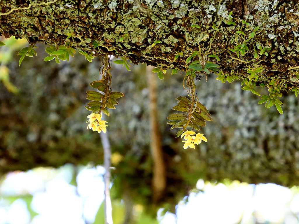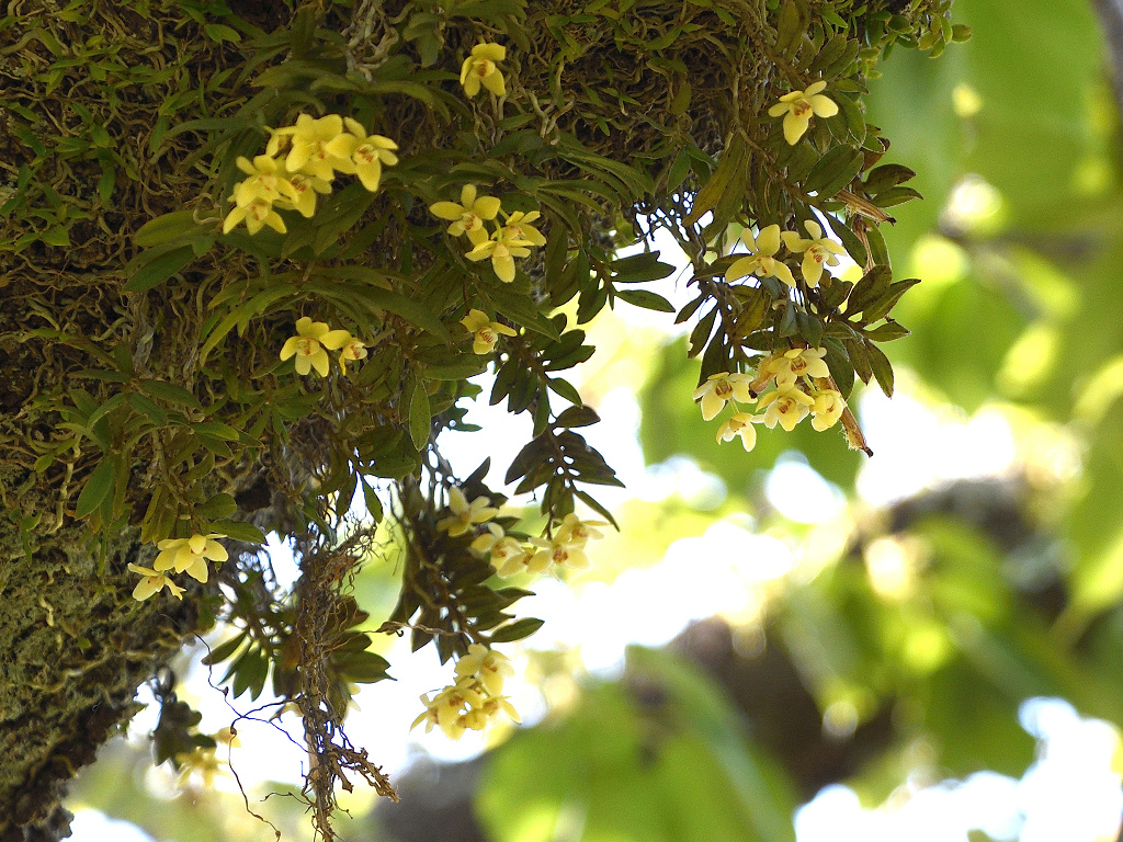 苔むしたような木の幹や、沢沿いの木に着生する