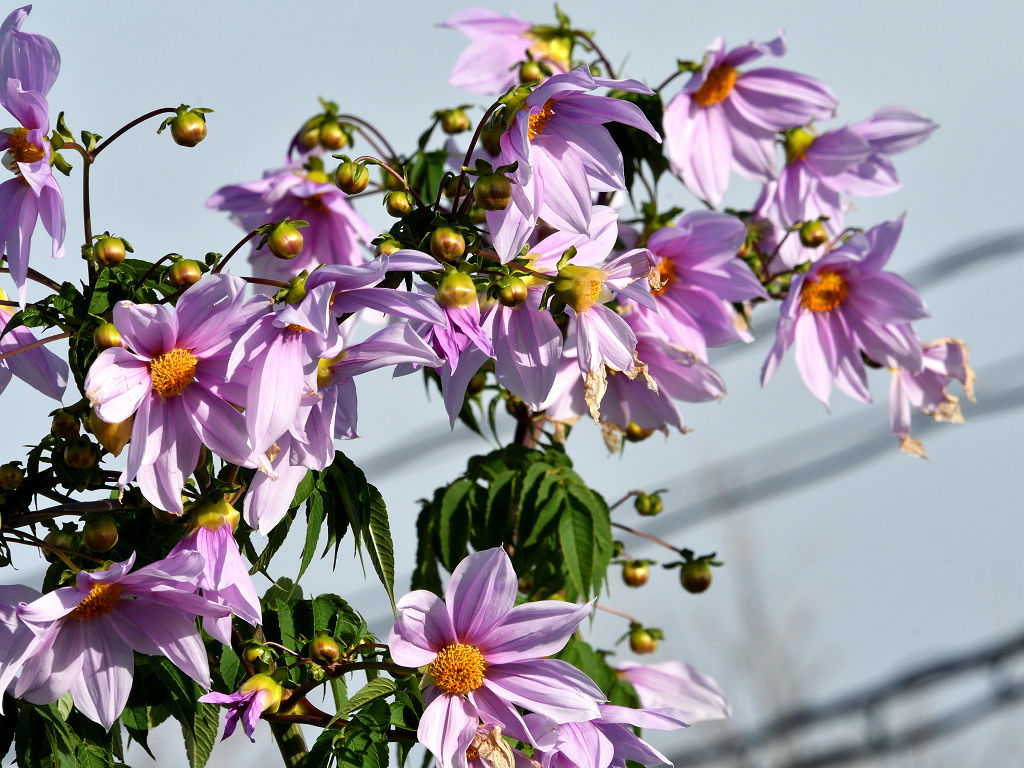 ダリアの仲間で、形が木のように背が高くなる事から(高さ1,5−3m)