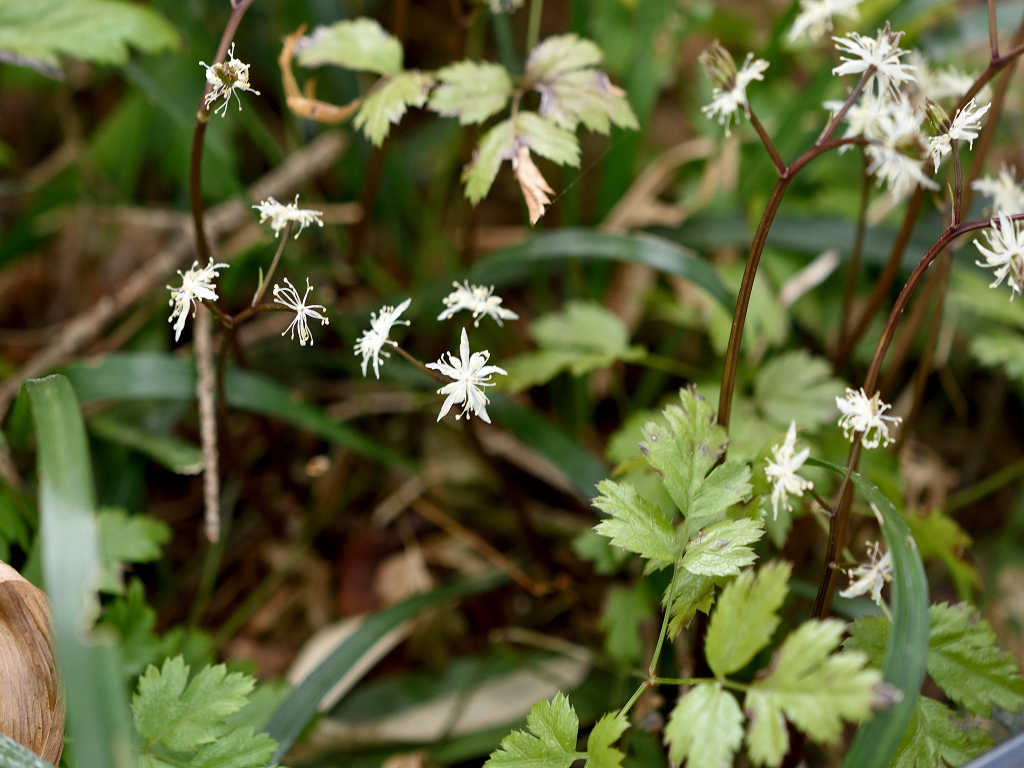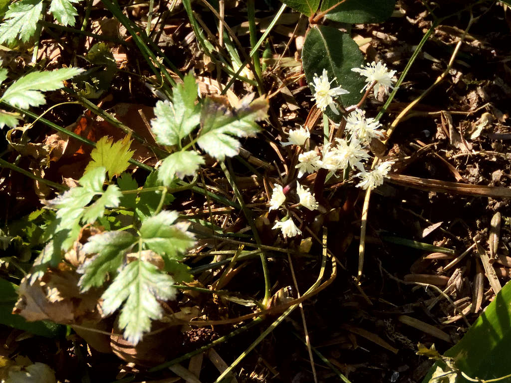 雄花 雌花 両性花がある 白い花弁状の物がガク その内側に小さな花弁がある