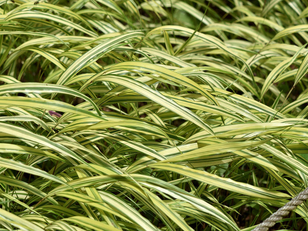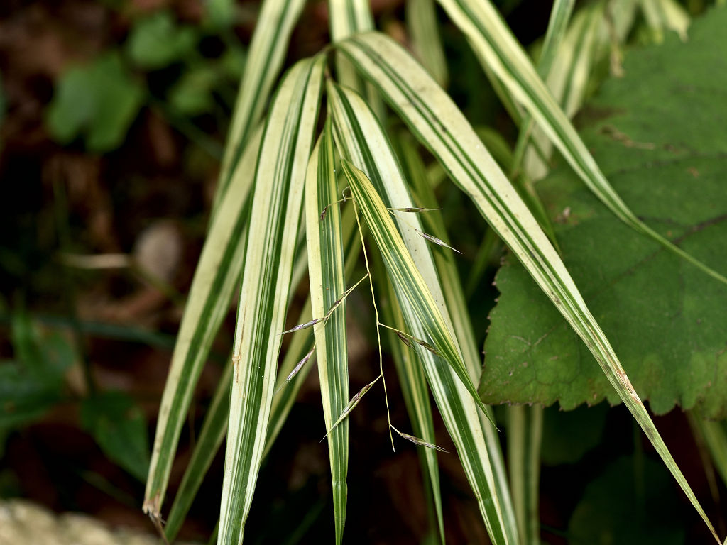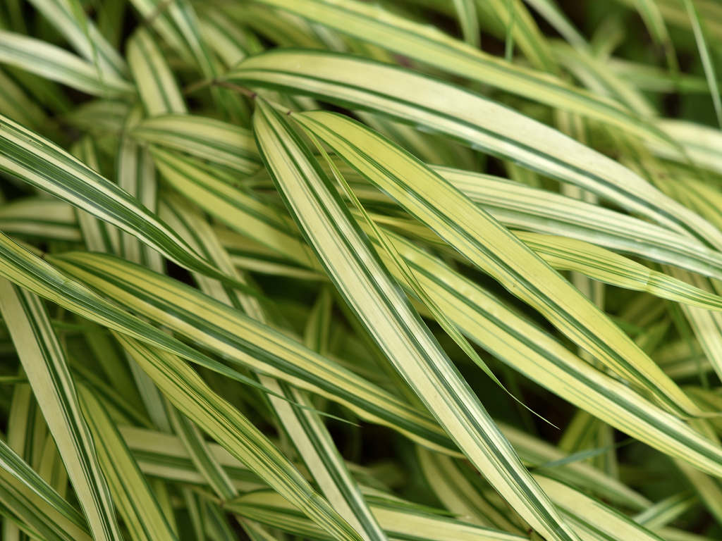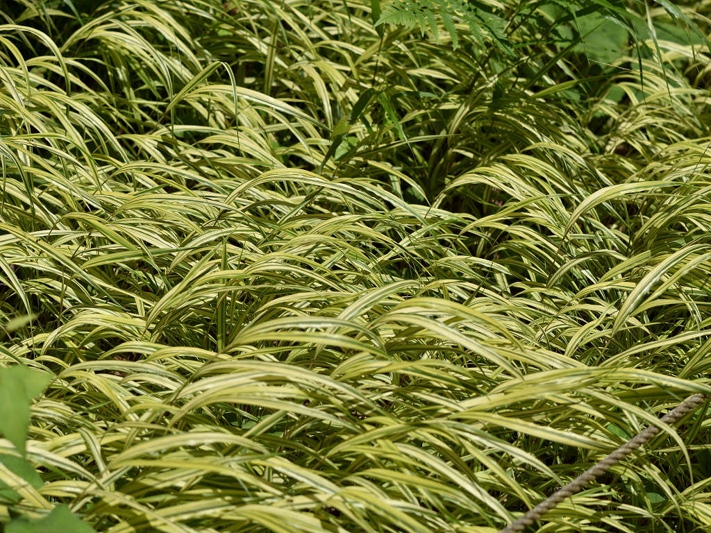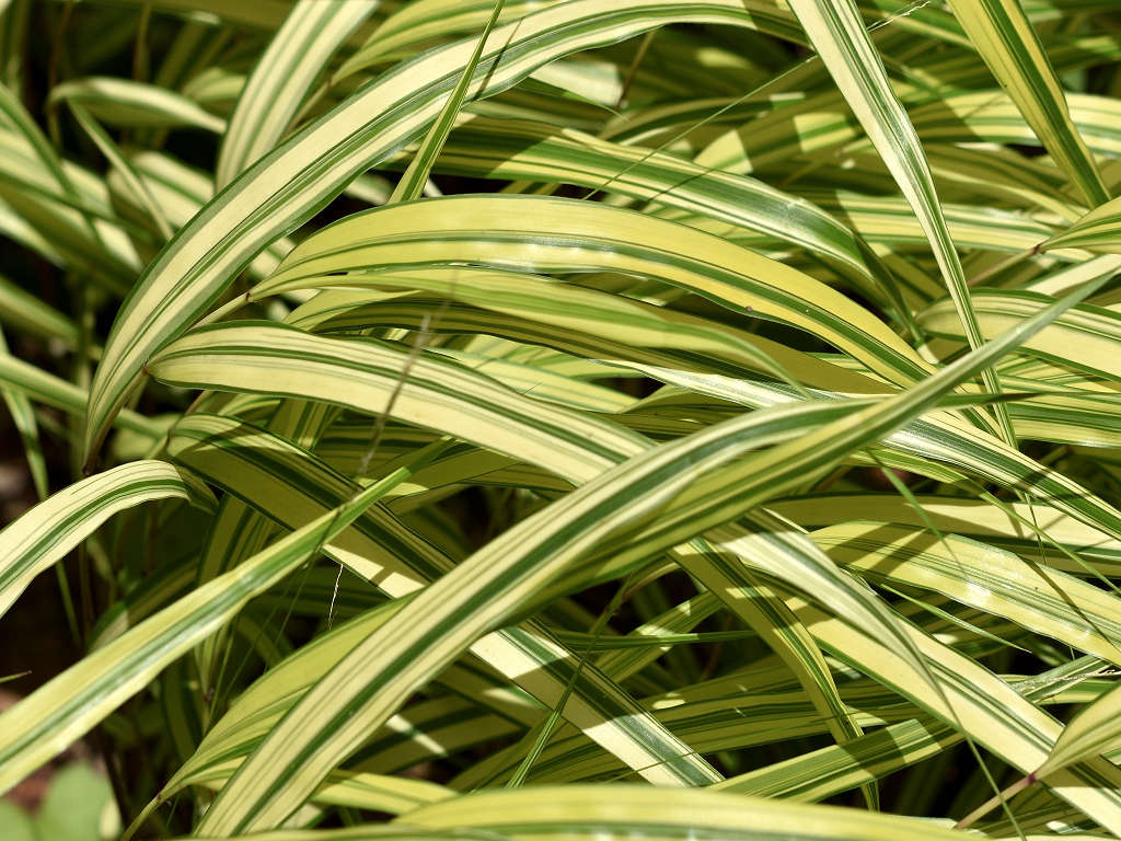 黄色い葉に緑色の筋が入る斑入りが特徴