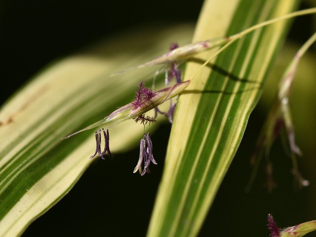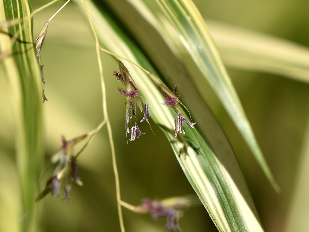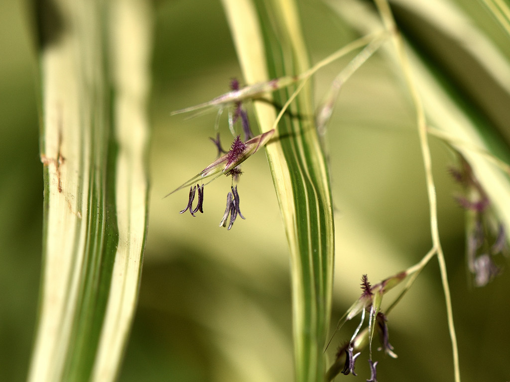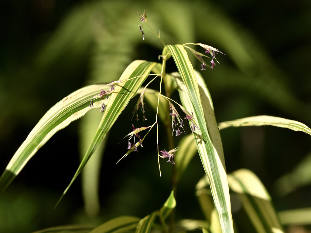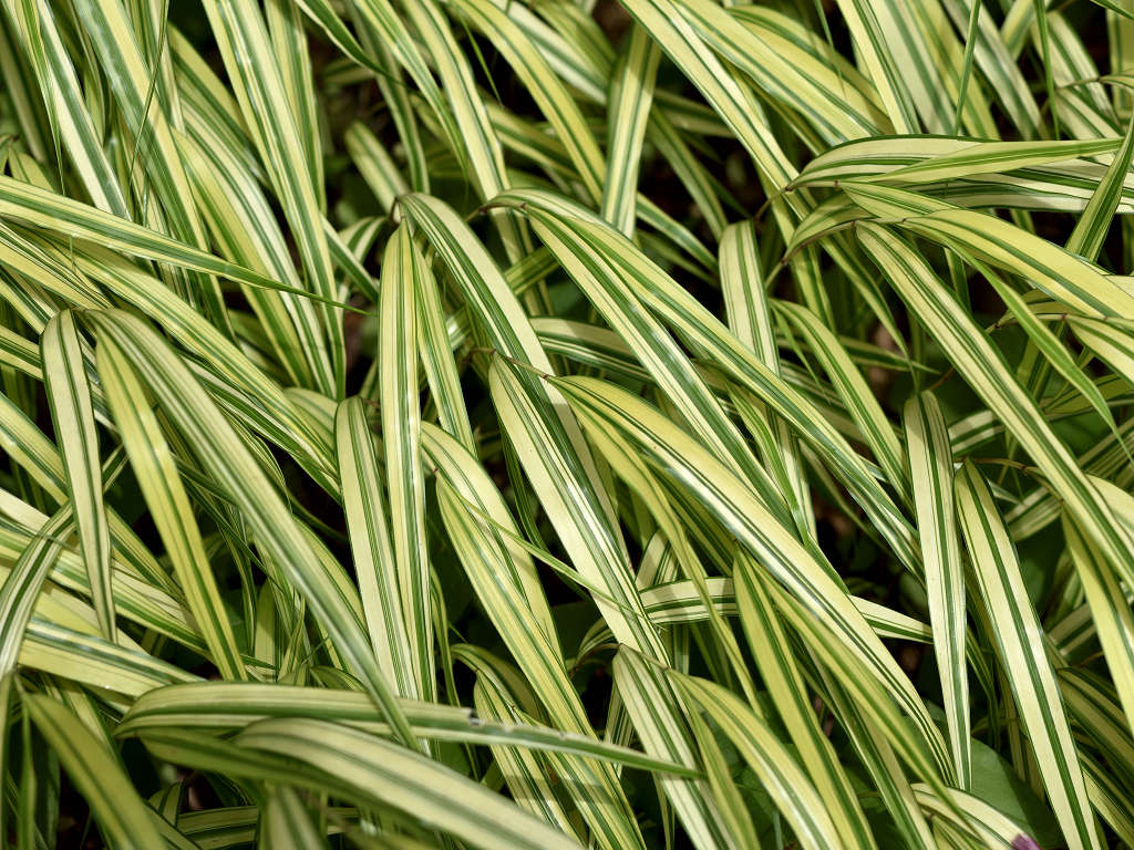 黄色い葉に緑色の筋が入る斑入りが特徴