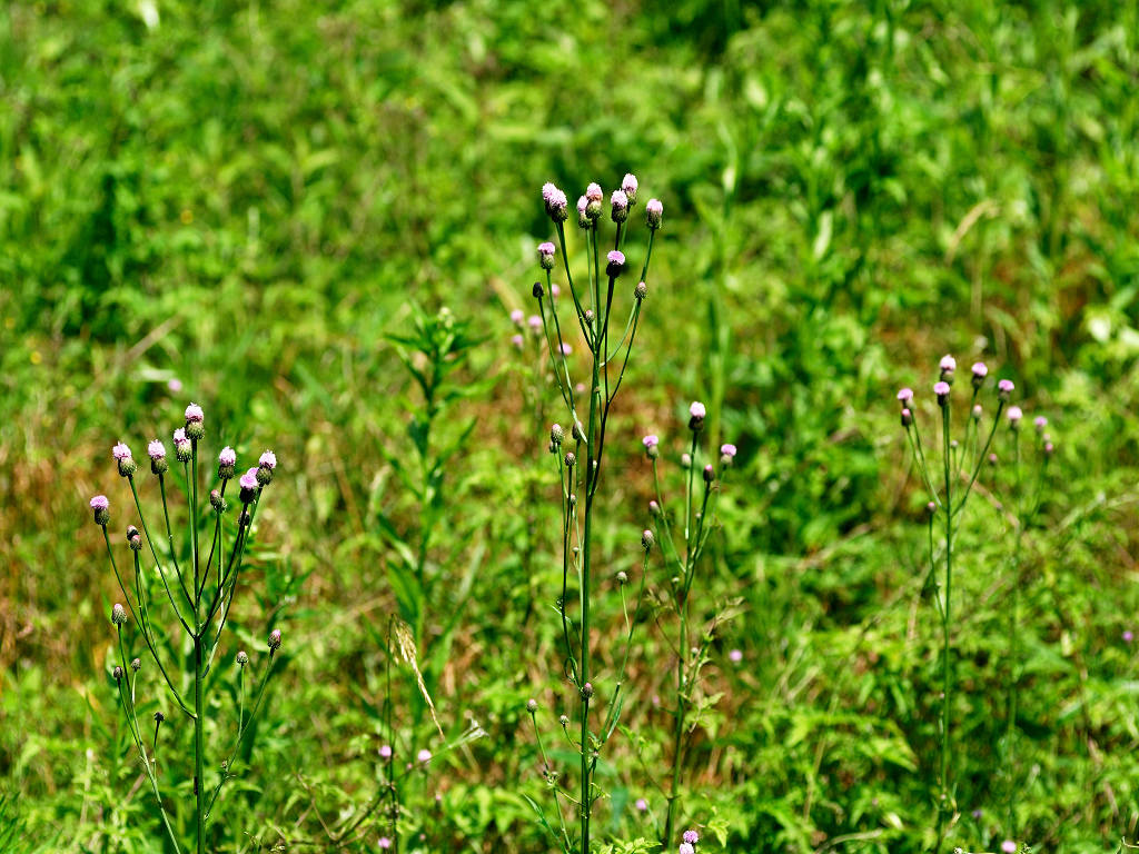花はアザミに似ている 葉は細かく羽状に切り込んでいる