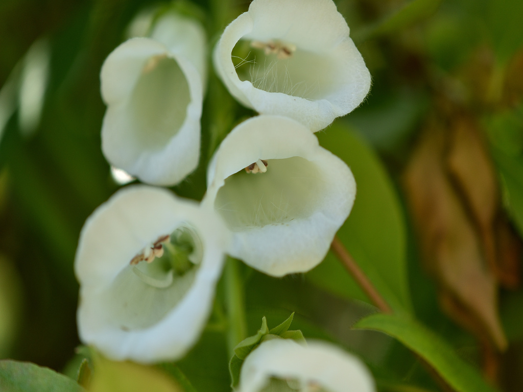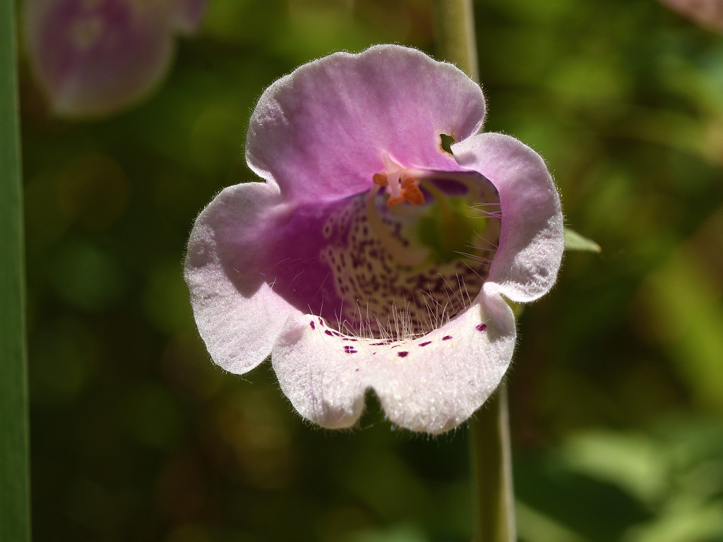 花は筒状で、外側は紫紅色(白花もある)、内側には白く縁取られた濃色の斑点がある